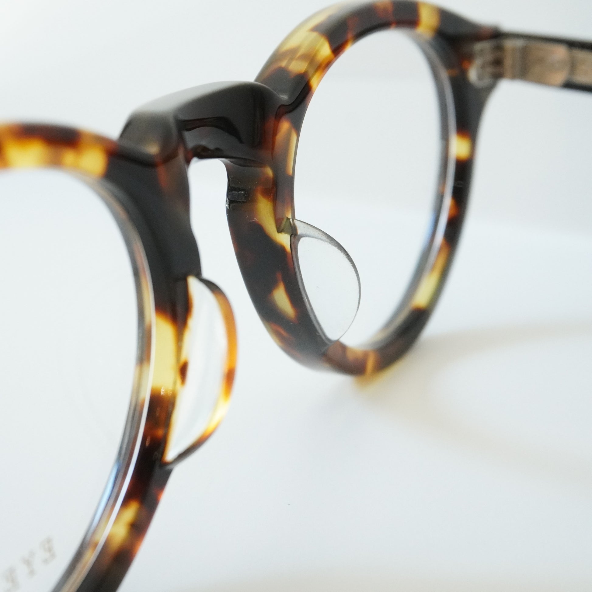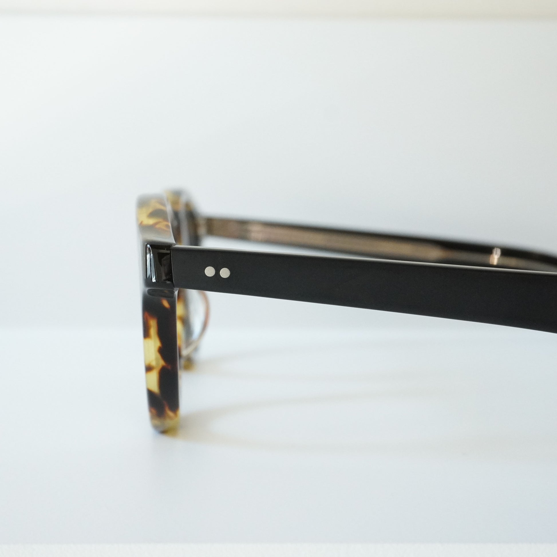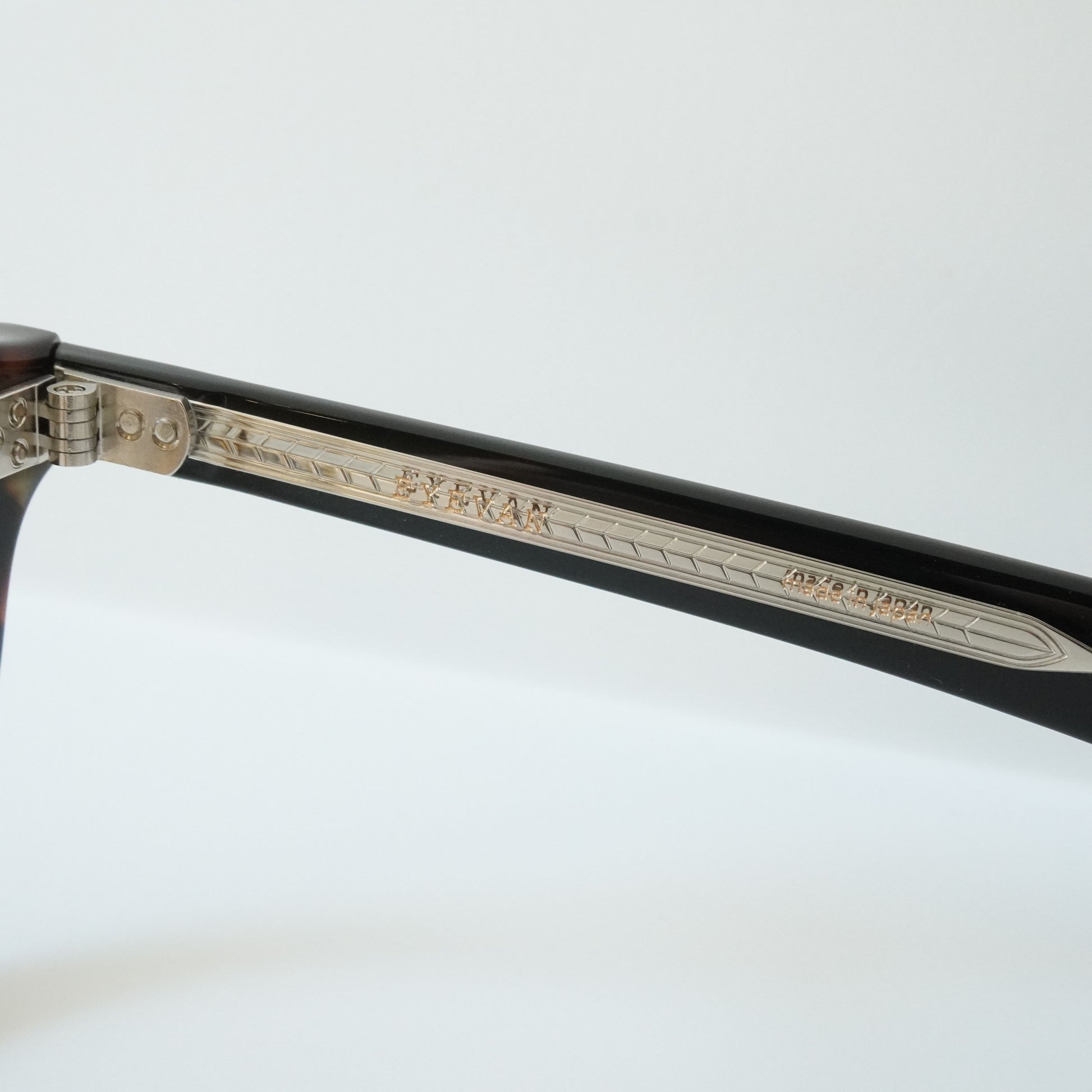 This new model in the French vintage series features a thick, edgy front and extremely wide temples. The front has been redesigned by gradually adding thickness to the round panto frame, known as a masterpiece among French vintage frames from the 1960s, and the temples have a unique feel of vintage frames made without a core before the 1940s. The manufacturing method uses a unique riveting technique with hinges, and this model takes EYEVAN's idea of French vintage a step further as the next vintage.