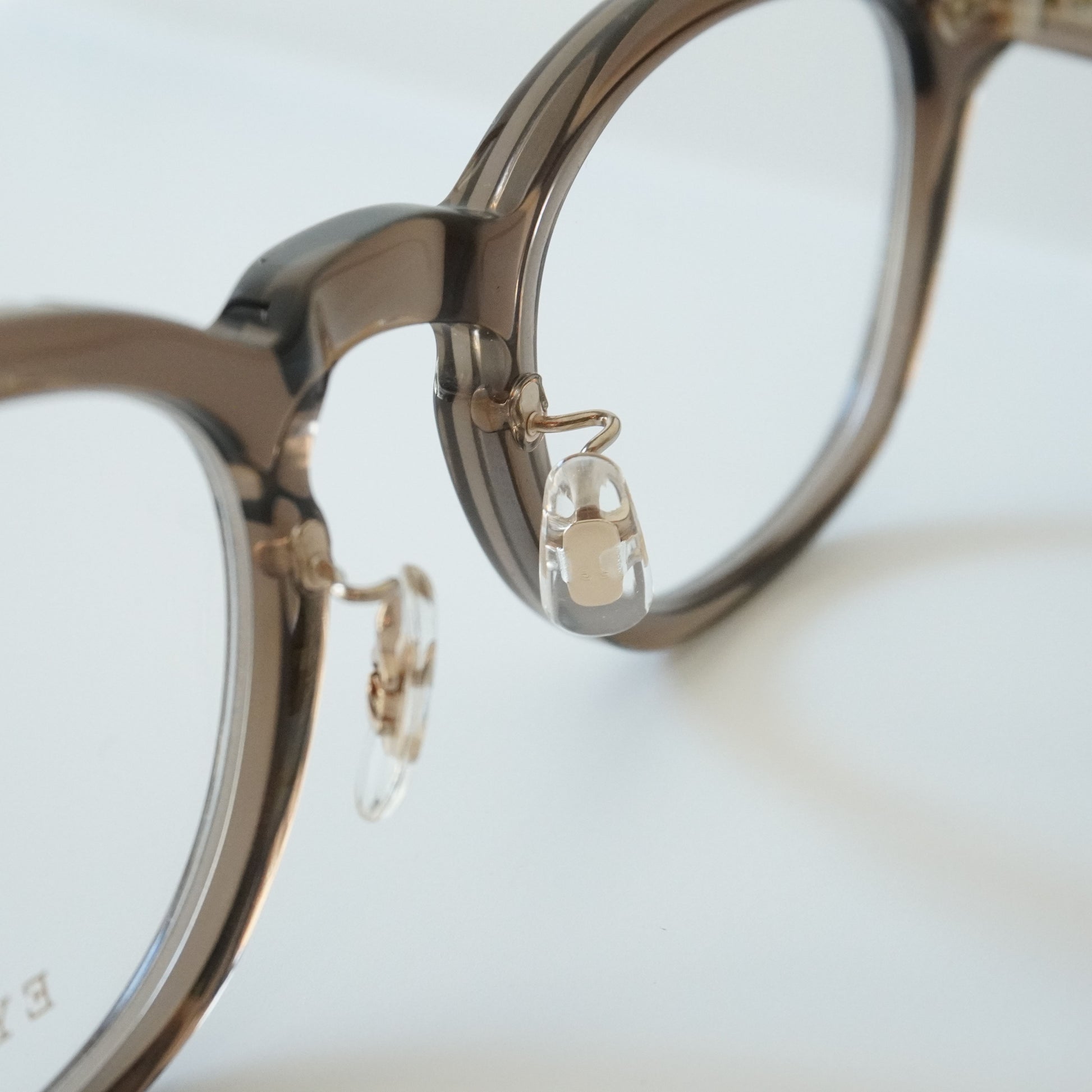 The COMFORTABLE PAD MODEL "Webb-CP" is a version of EYEVAN's iconic model "Webb" with a cling arm. "Webb" is a masterpiece of Wellington plastic frames that uses original rivet hinges and an original temple core with a pattern inspired by classic car parts engraved on the front and back. The cling arm pad provides a more comfortable fit. The pad color is a vintage style color that creates a luxurious look.