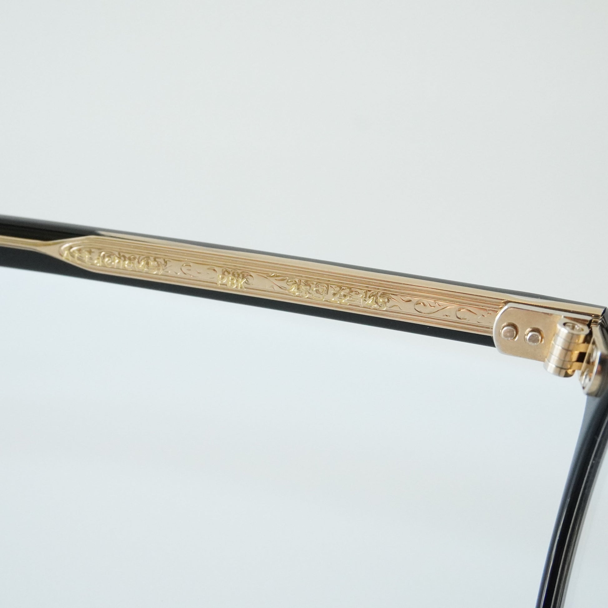 The slender crown panto-shaped frame was designed to fuse two different designs, American and French vintage from the 1950s. The hinges are beautiful with three-dimensional details, and are made using the traditional method of placing hinges by craftsmen, faithfully recreating vintage details down to the last detail.