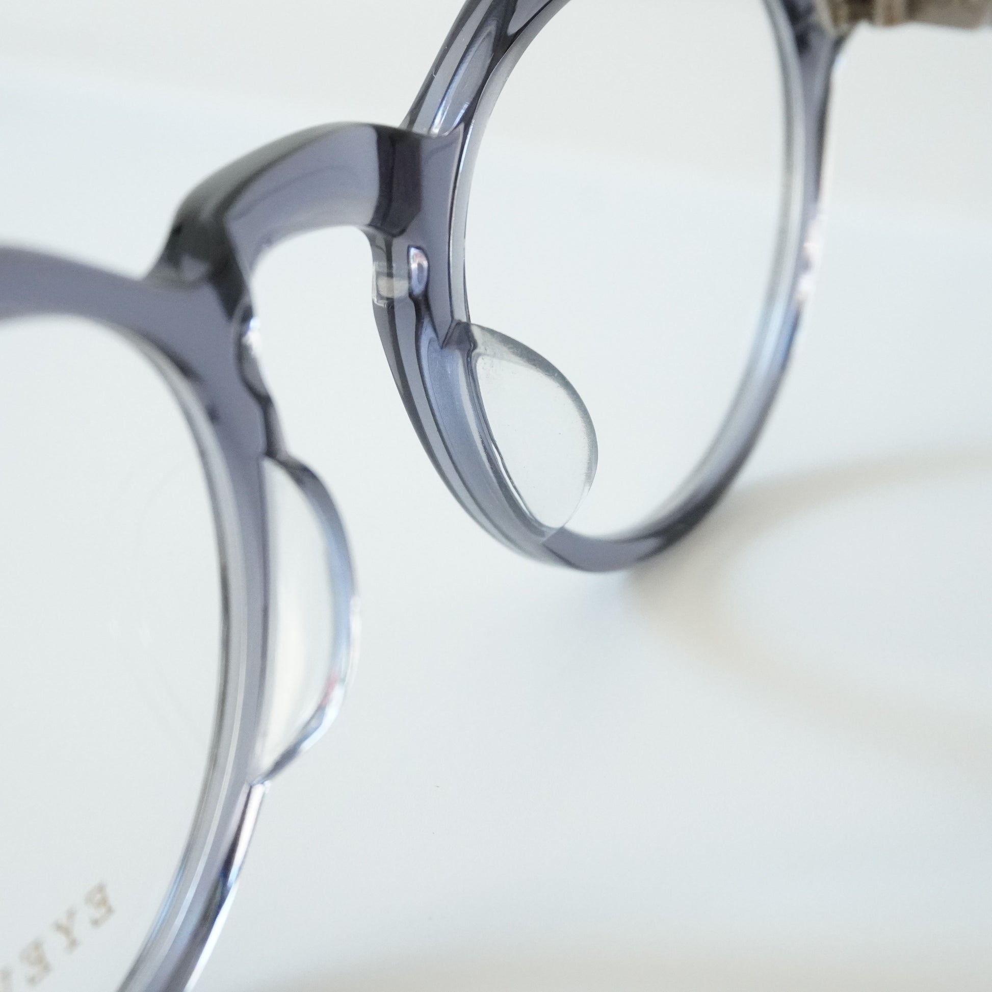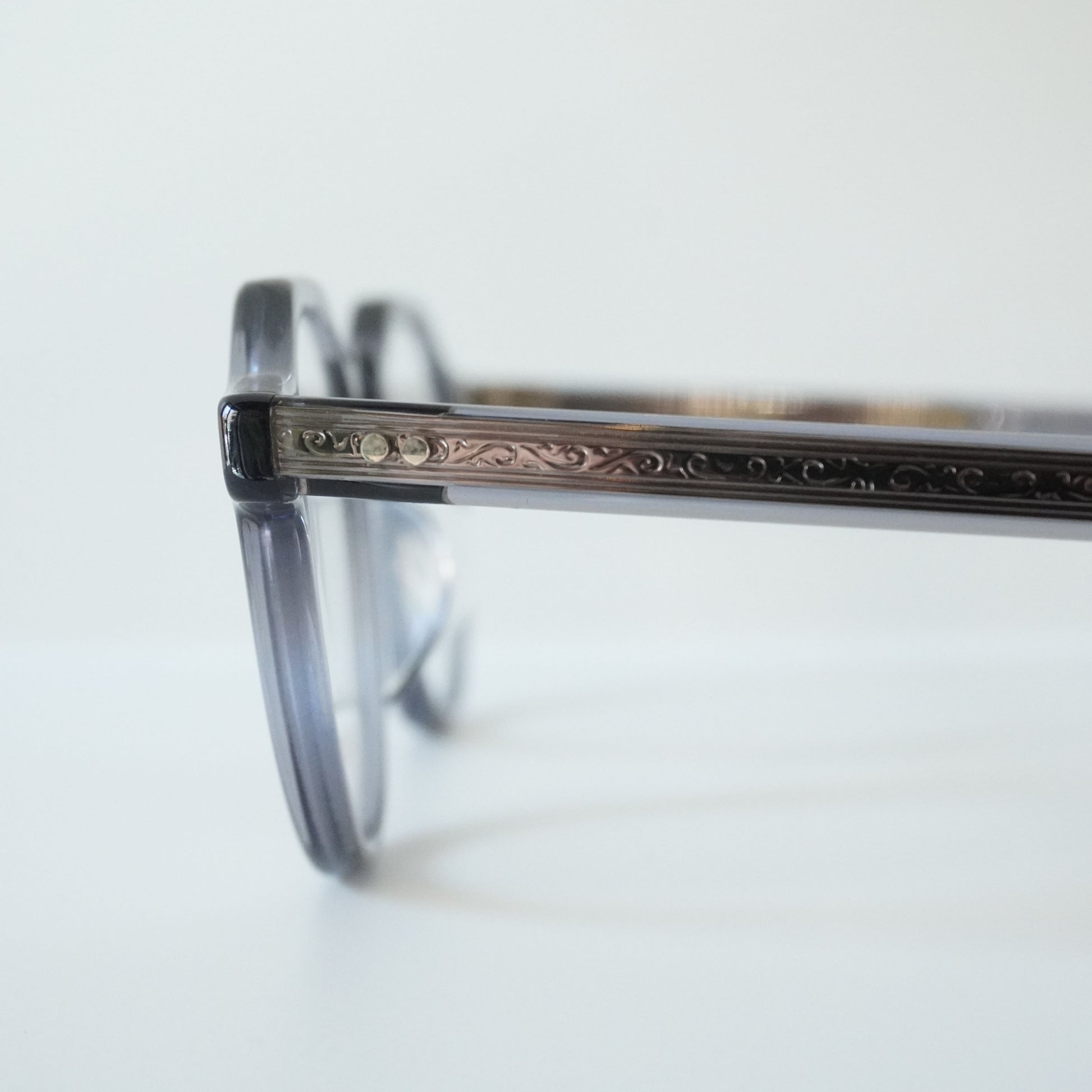 The slender crown panto-shaped frame was designed to fuse two different designs, American and French vintage from the 1950s. The hinges are beautiful with three-dimensional details, and are made using the traditional method of placing hinges by craftsmen, faithfully recreating vintage details down to the last detail.