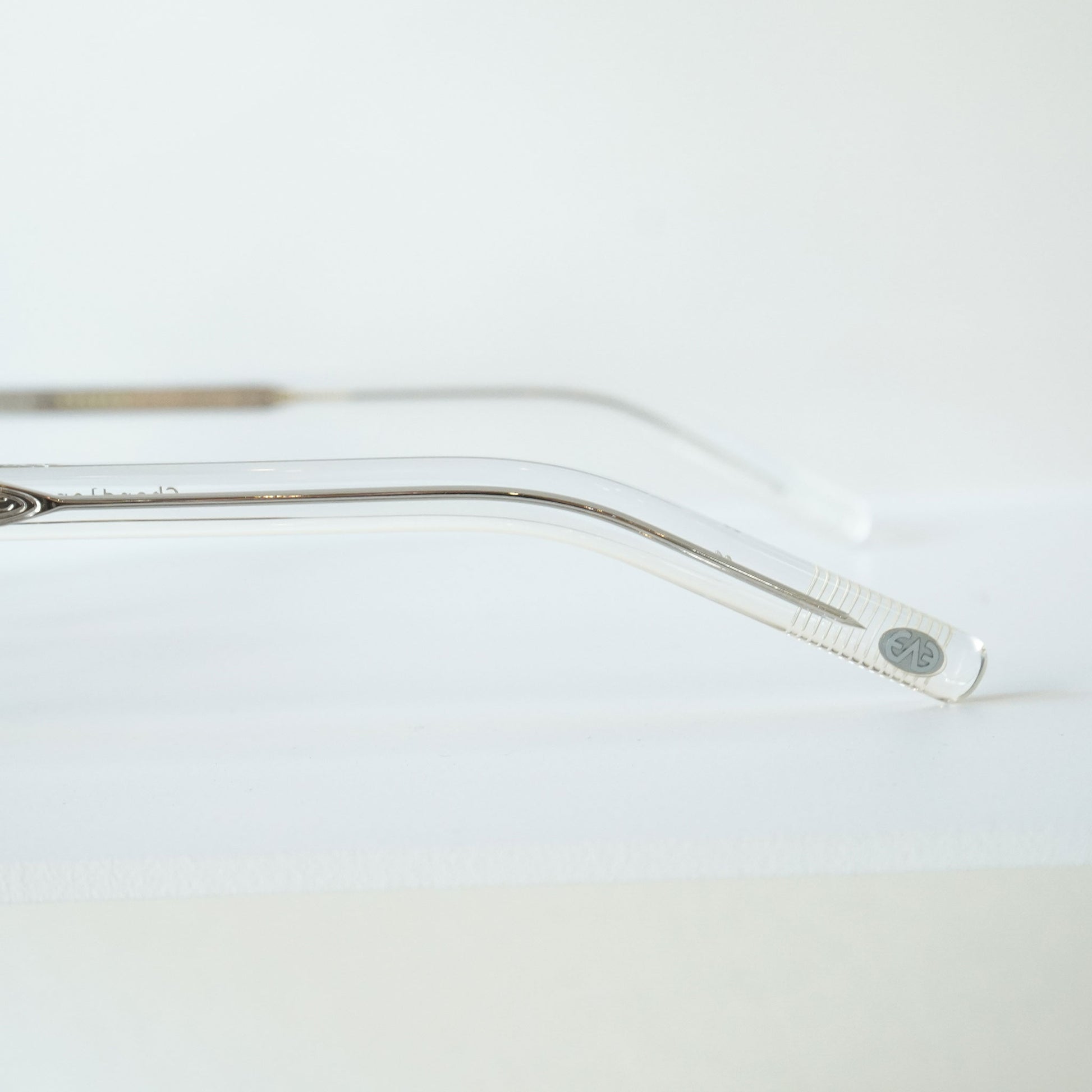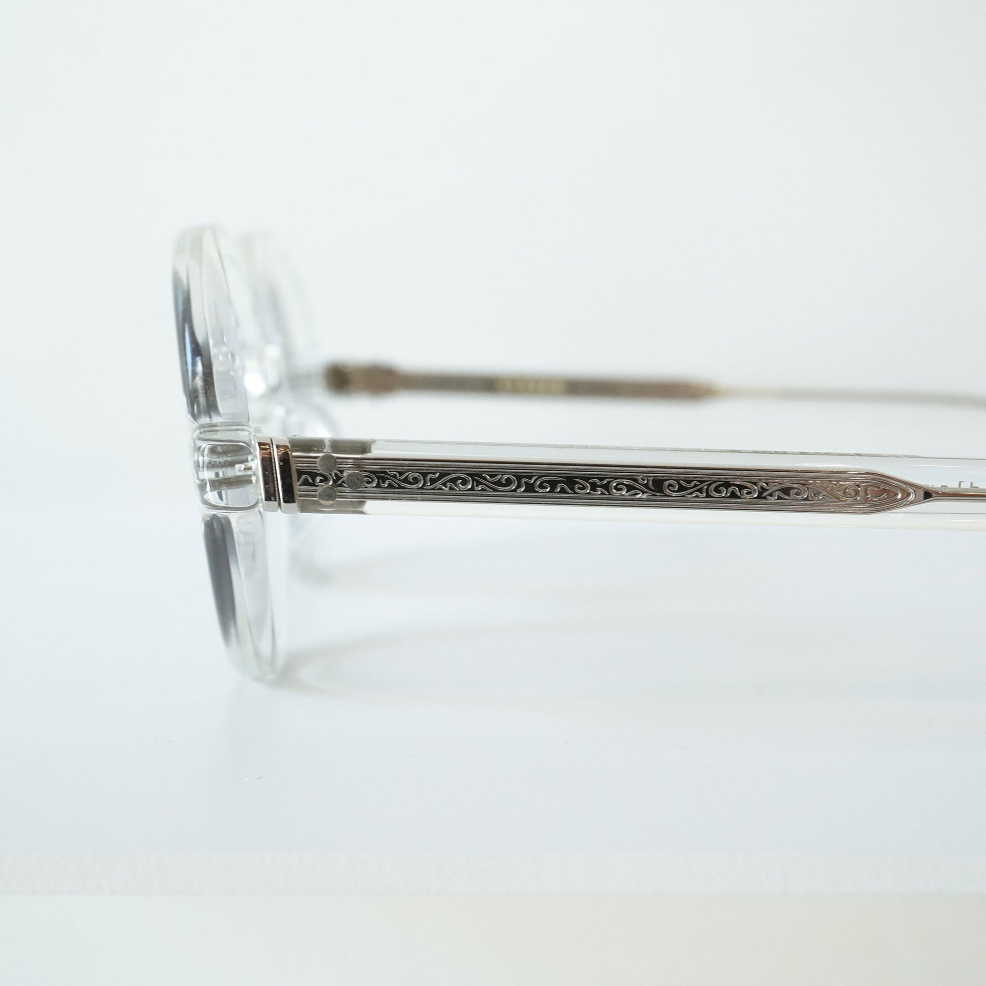 The temple joints have engravings (a technique of directly carving a metal plate) on the cross section that are only visible when the temples are folded. The temple cores are based on the motif of ceremonial vessel decorations. This model is particular about the details of EYEVAN original parts, such as the hinge base that is integrated with the decorations and the rivet details.