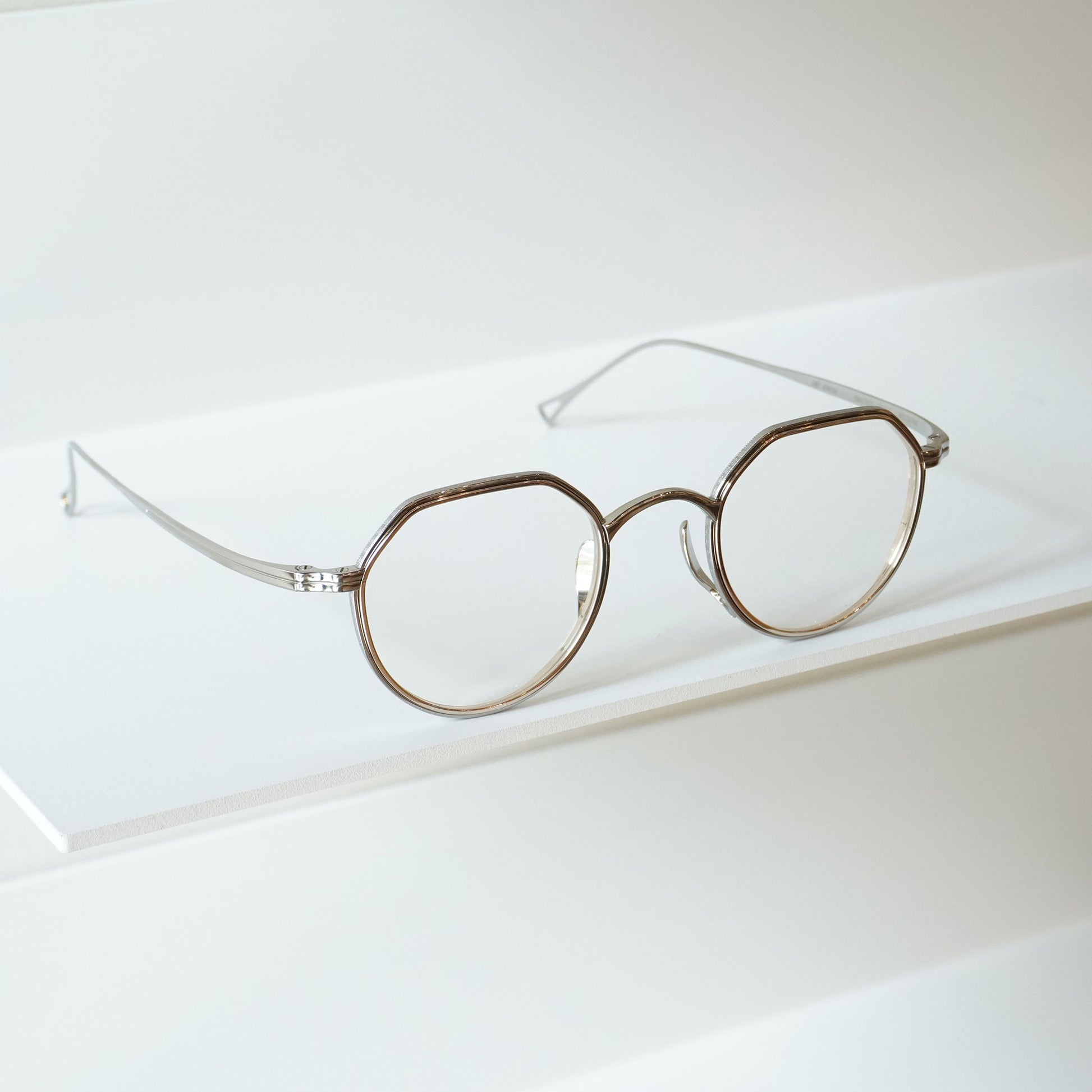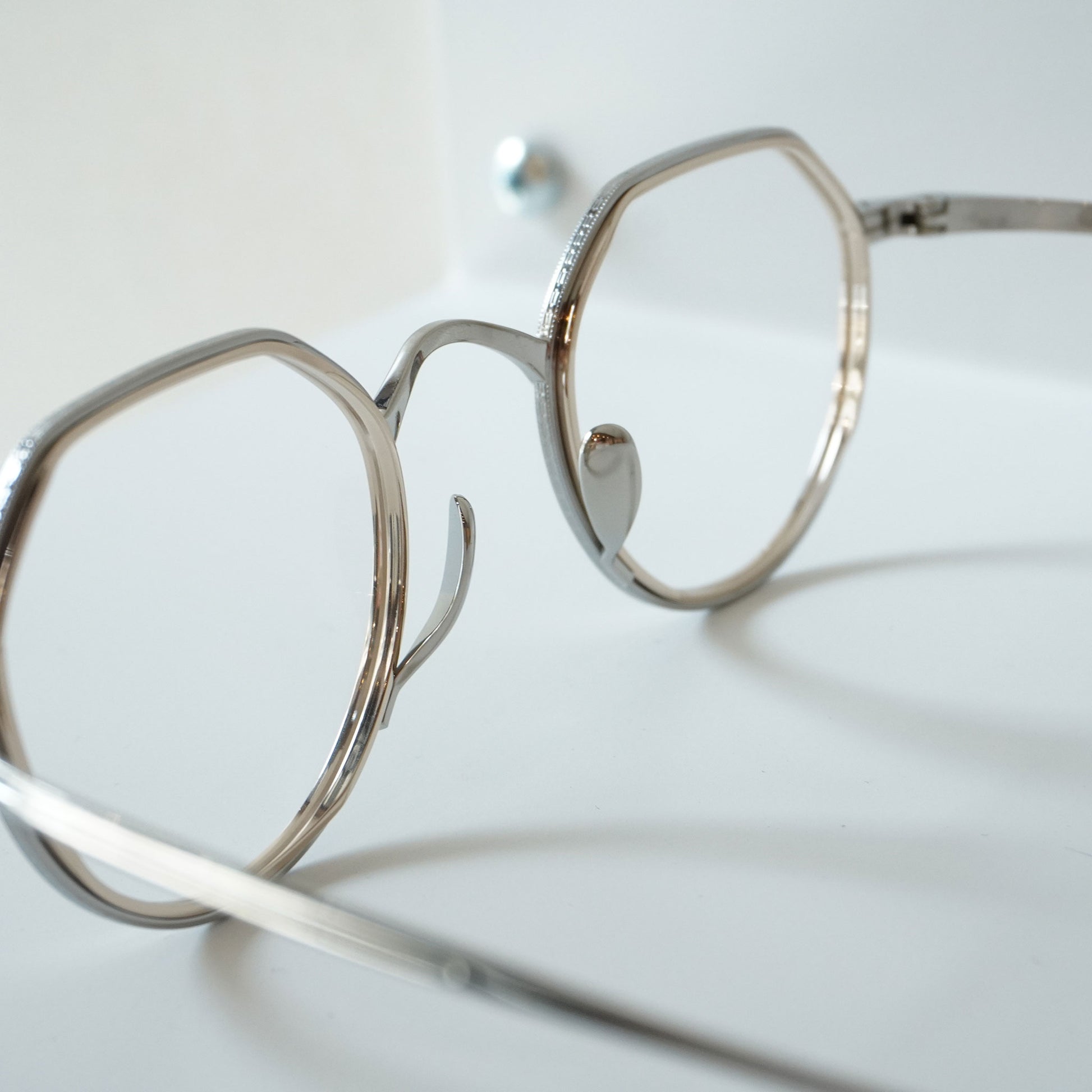 Metal frame. The inner metal is layered in two different colors, creating a timeless design that is not too simple. The nose pads are made of Kamemannen's unique pads that rise from the bottom, which are designed to be comfortable and beautiful.