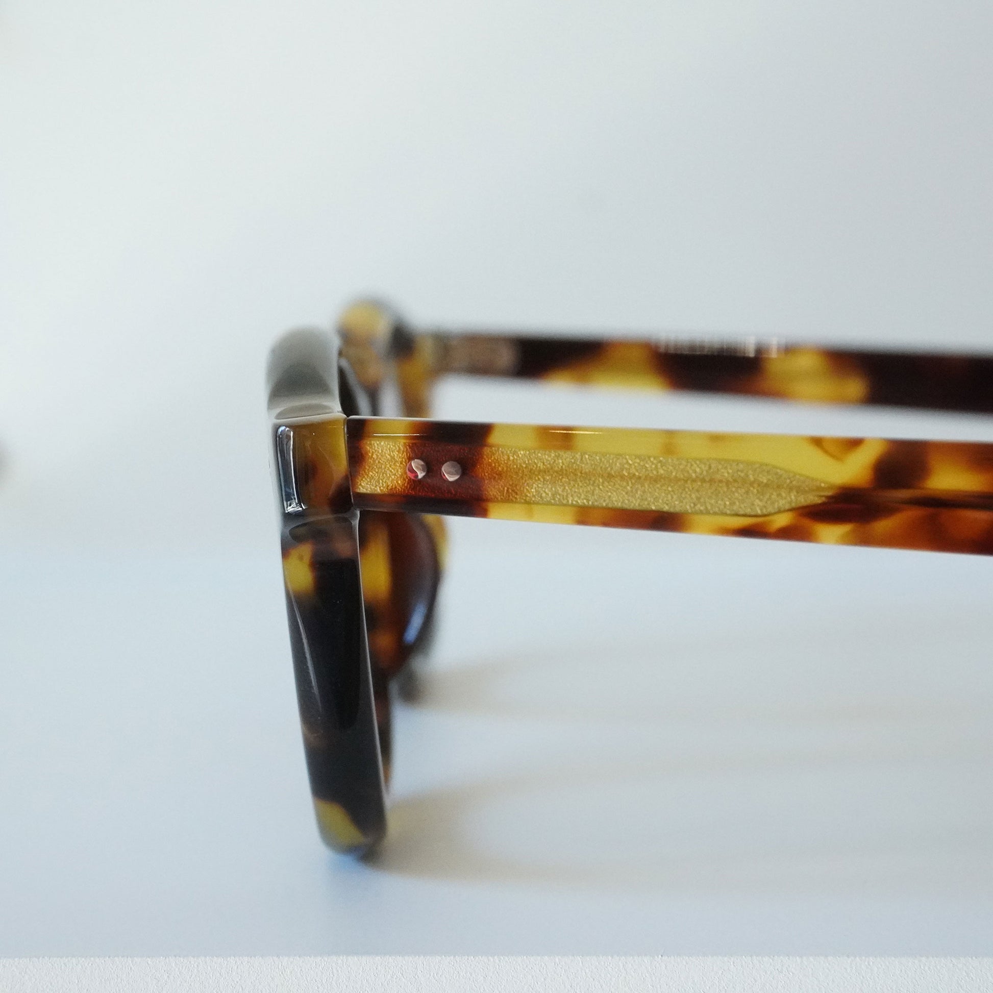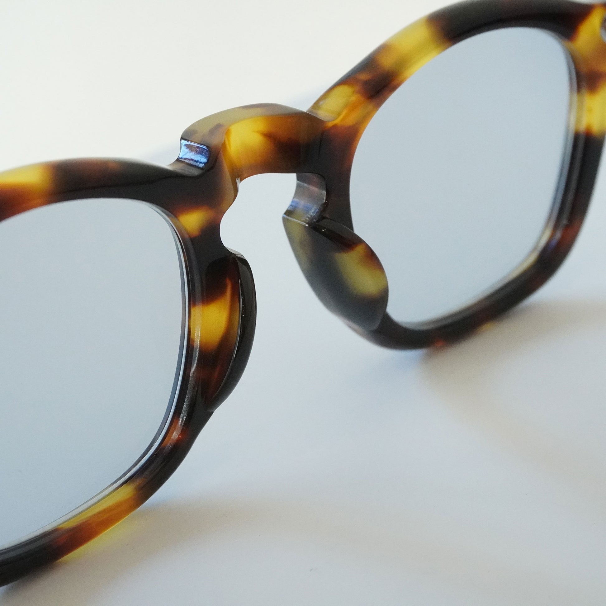 【レンズ】BLUE 濃度は約25%ほどの薄いカラーレンズです。ヴィンテージのガラスレンズを再現するためにフラットレンズになっています。