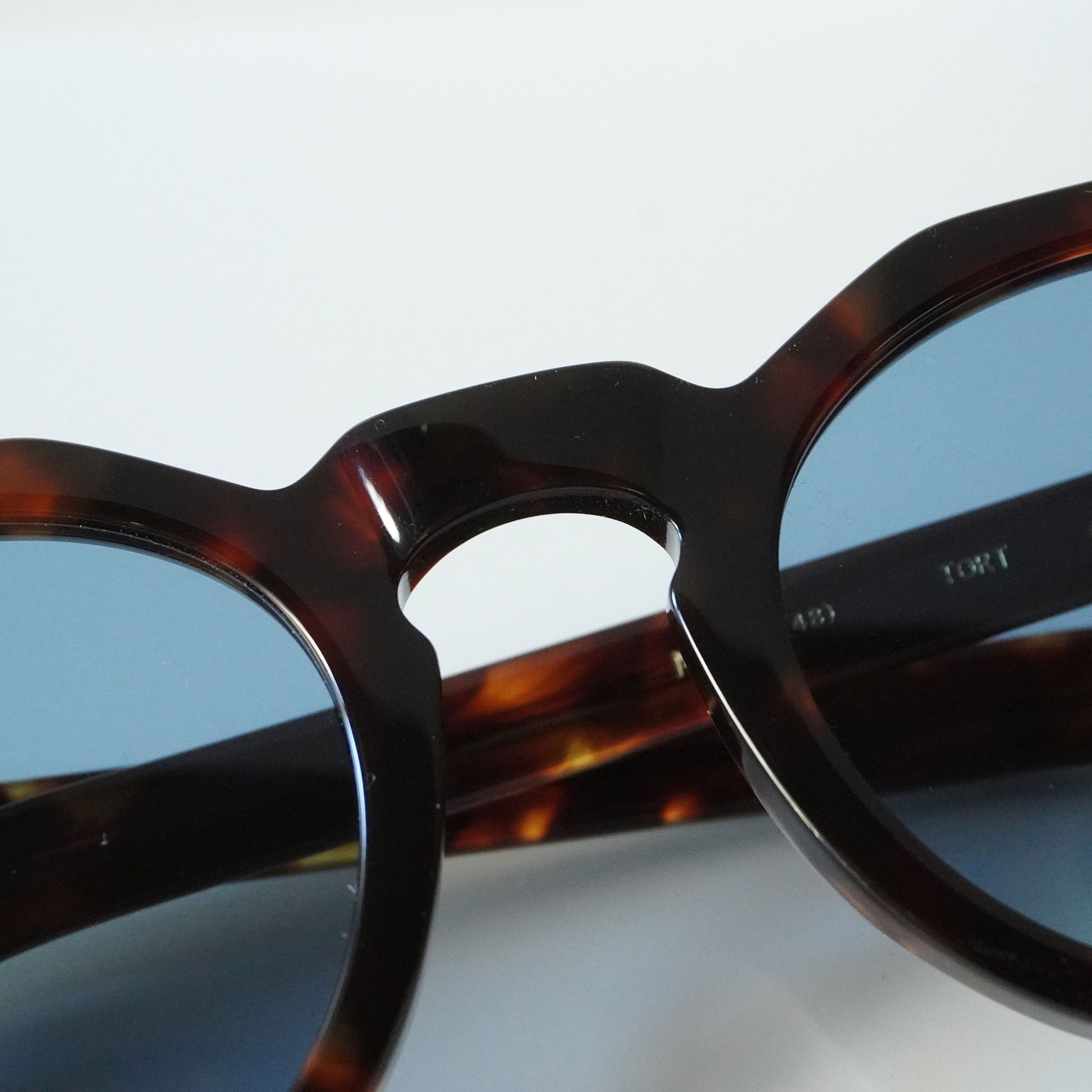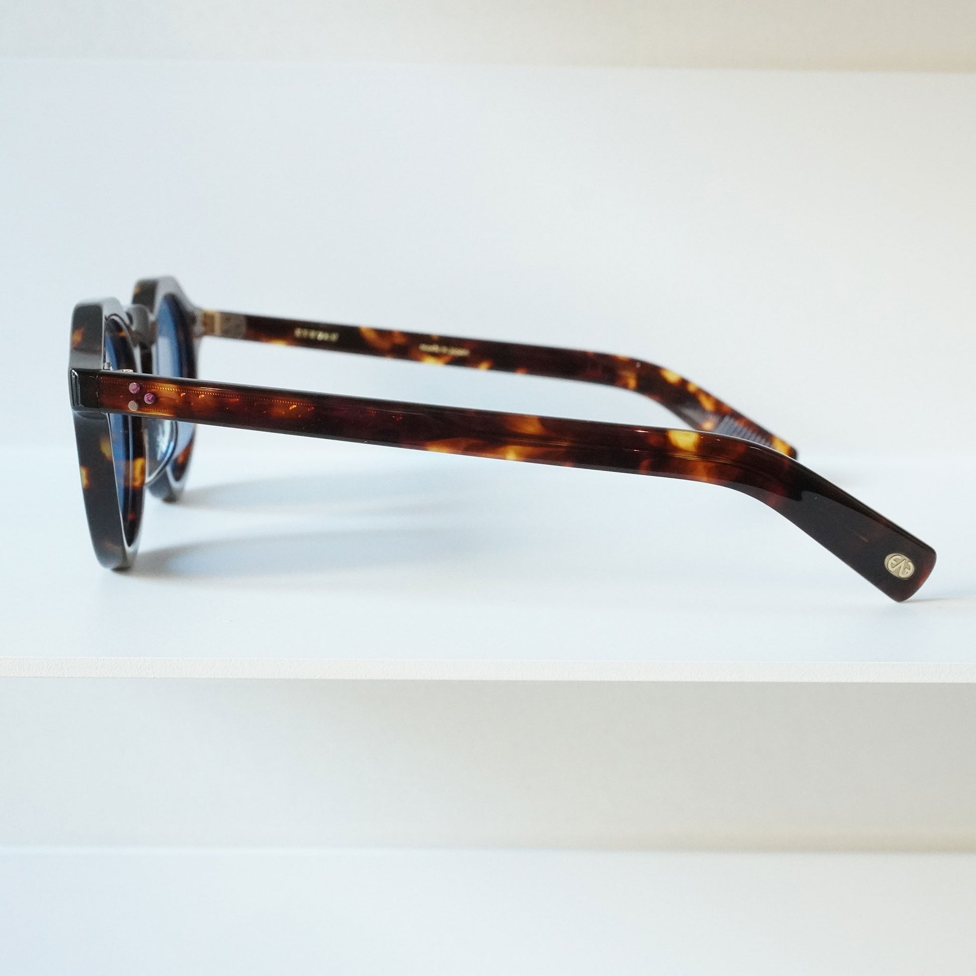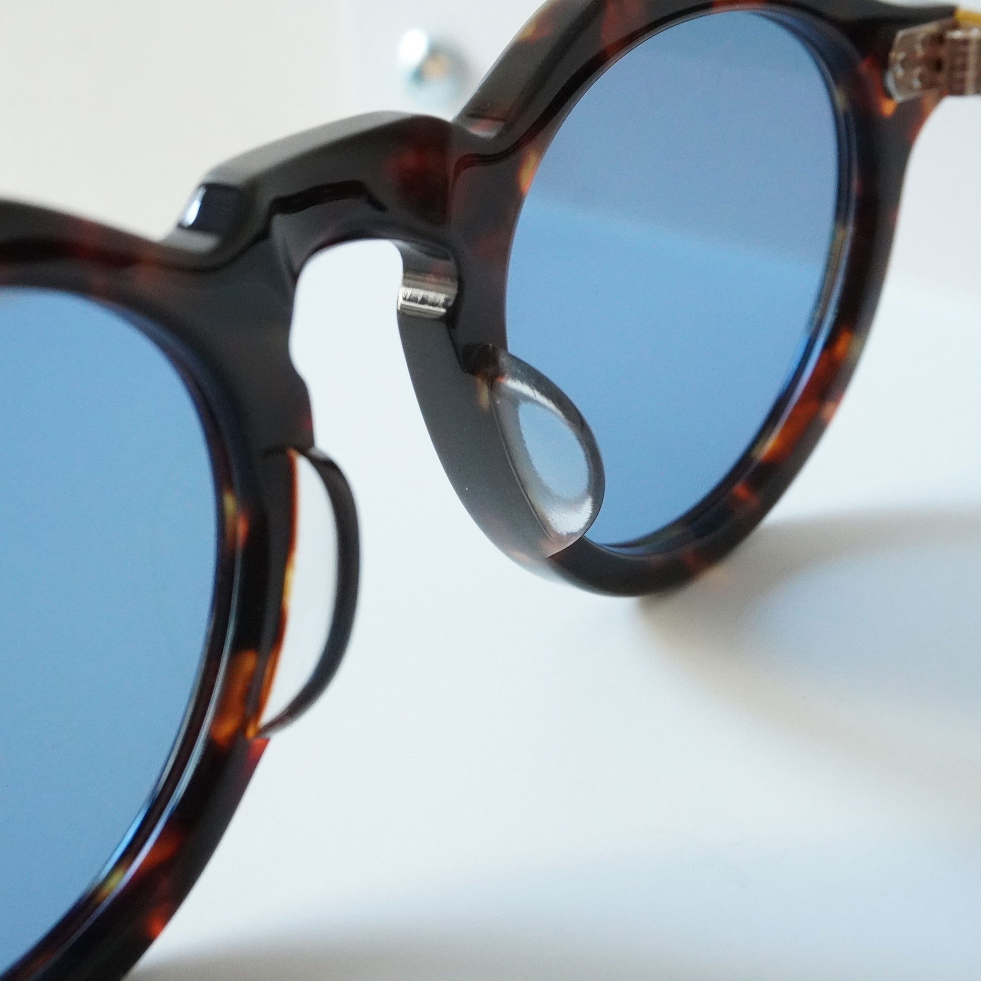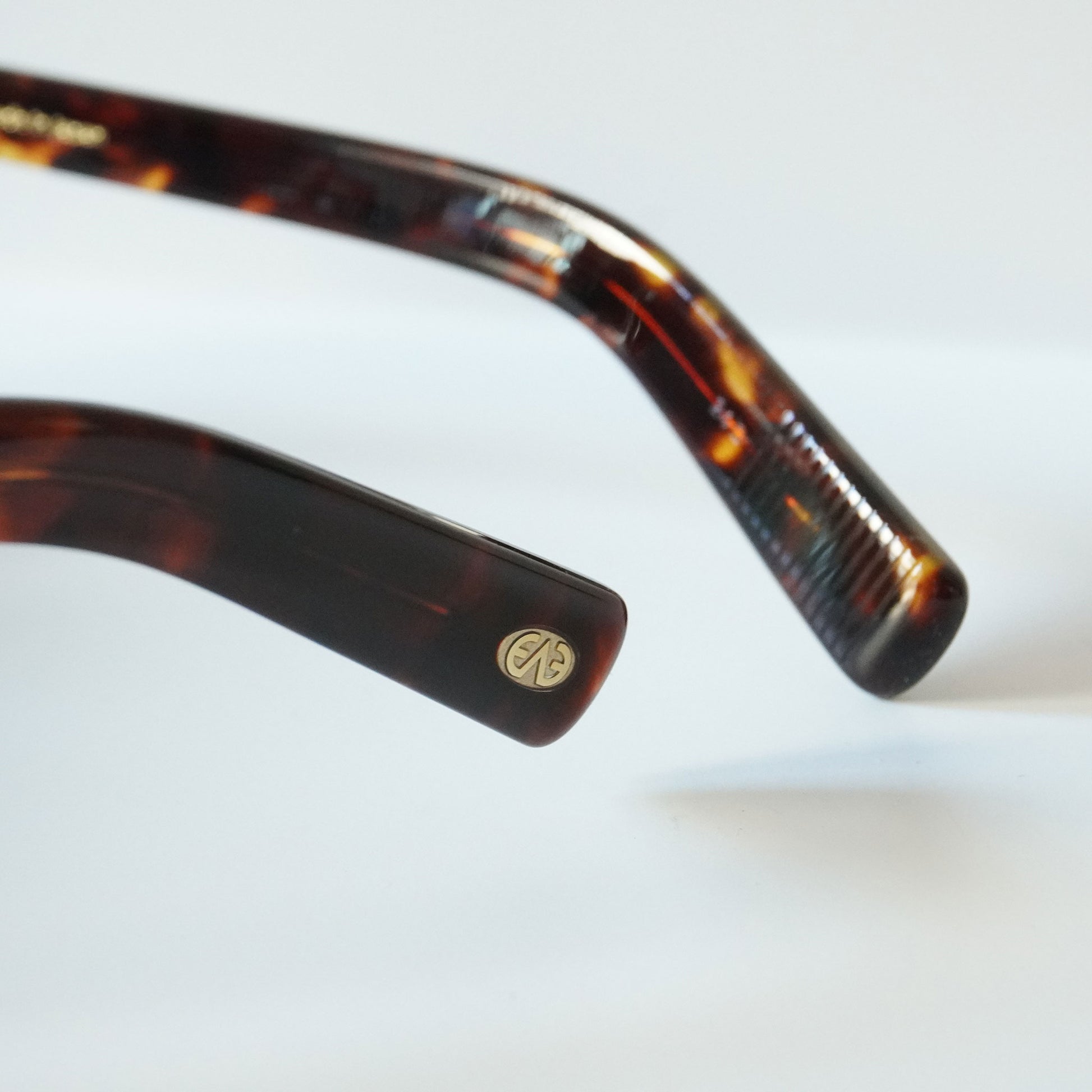 This model expresses E YEVAN's idea of French vintage with its thick front and extra wide temples. The front and temple hinges are original reproductions of the 60s design, and the manufacturing method is a riveting technique with a fixed hinge. We paid particular attention to the vintage details, such as making the pins of the rivets as invisible as possible.