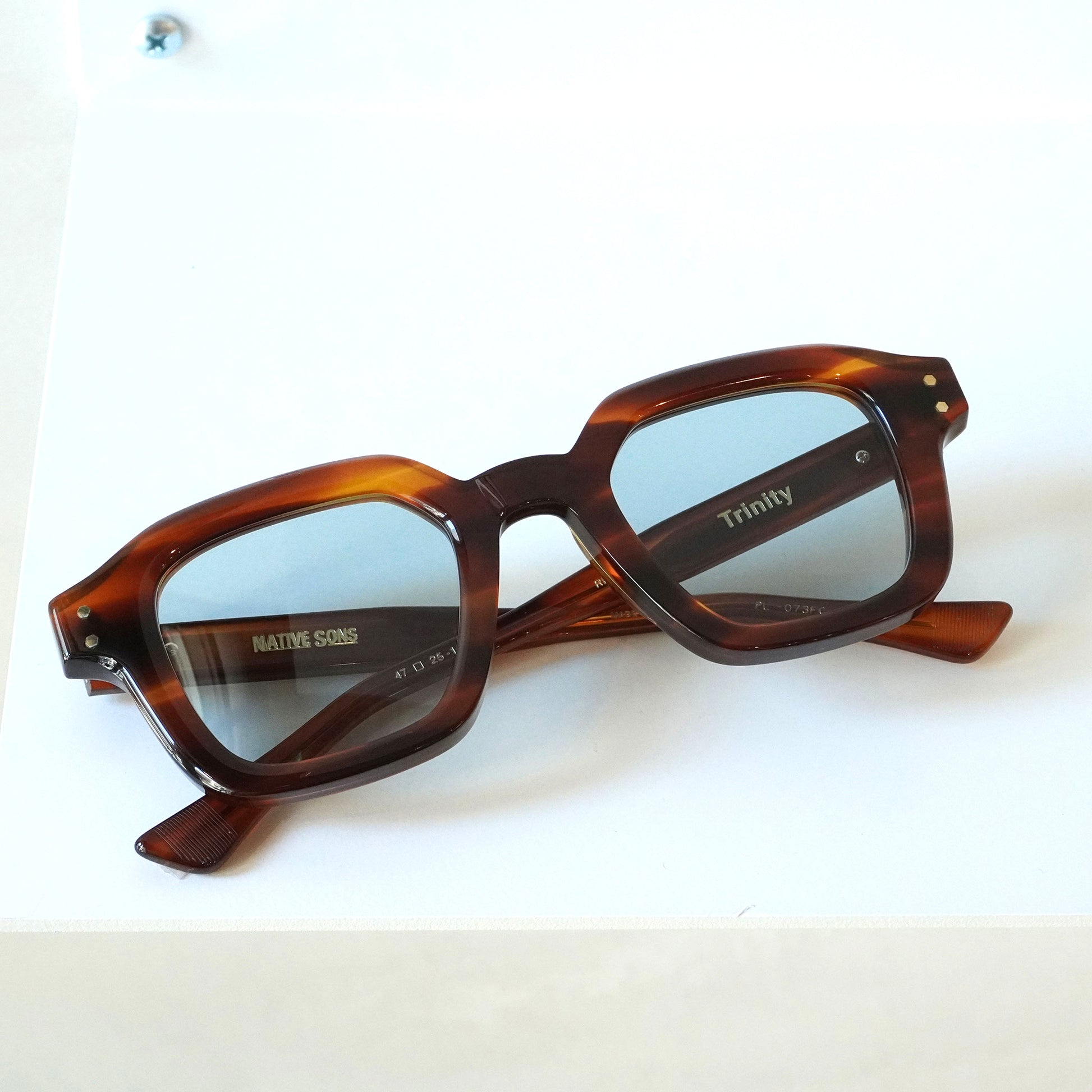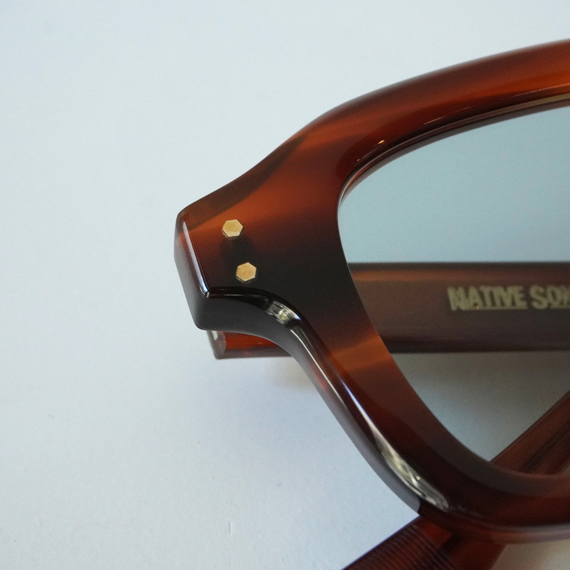 ネイティブサンズらしい存在感のあるスクエアモデル、約6mmある厚みが特徴的です。メガネでもサングラスでもご使用いただけます。