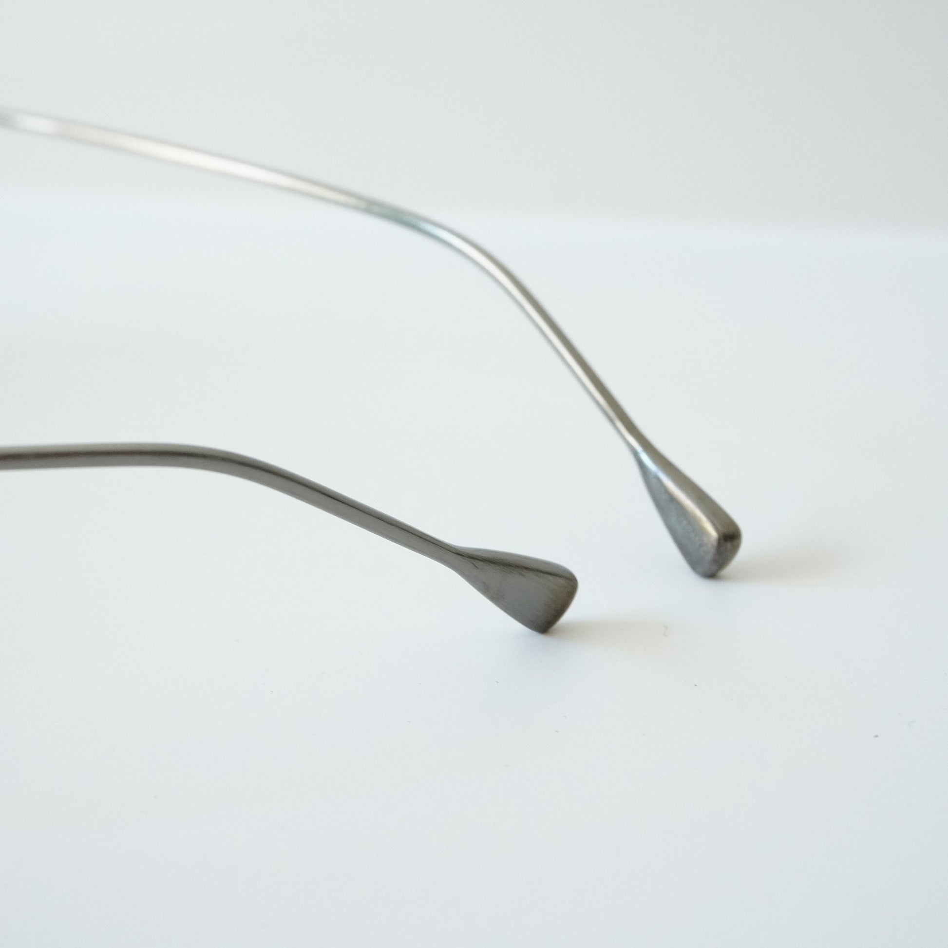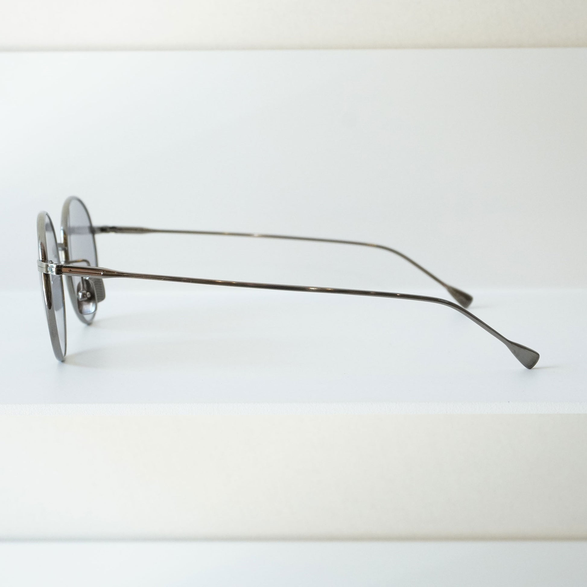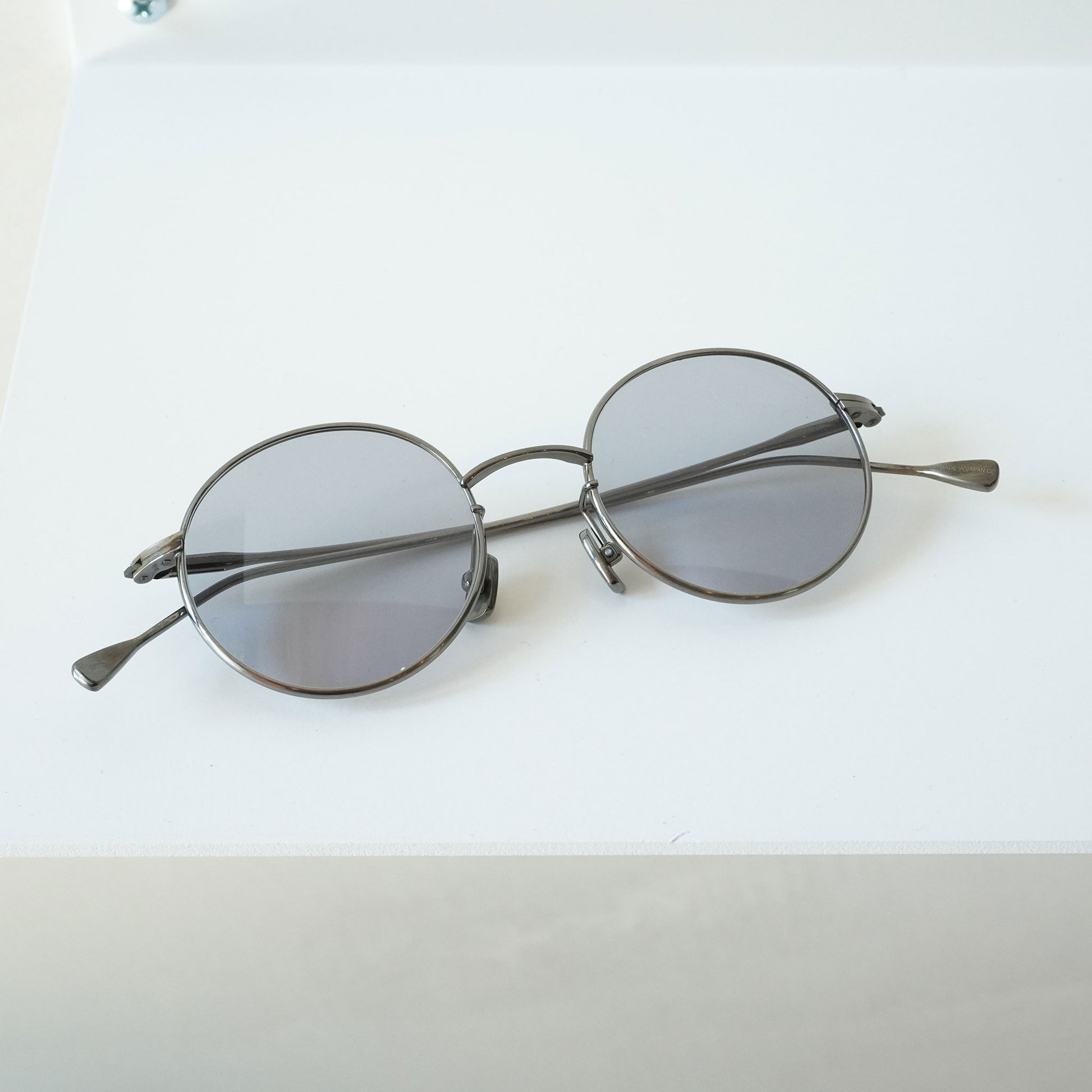 シンプルなラウンドメタルは掛けやすくて、使いやすいアイテム。オールチタンで製作されているので軽く掛け心地が良いです。薄めのカラーレンズを採用したサングラスタイプも人気です。