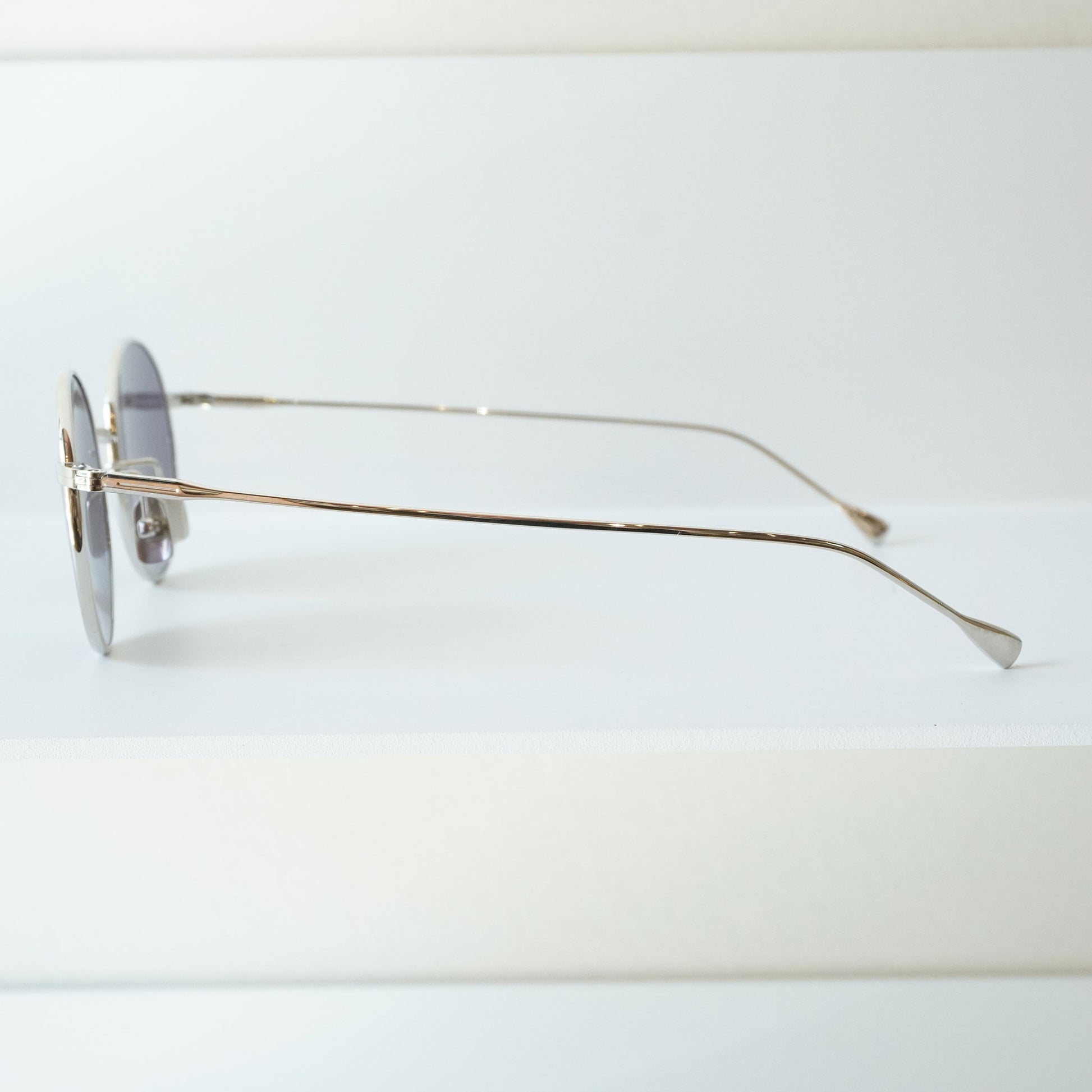 シンプルなラウンドメタルは掛けやすくて、使いやすいアイテム。オールチタンで製作されているので軽く掛け心地が良いです。薄めのカラーレンズを採用したサングラスタイプも人気です。