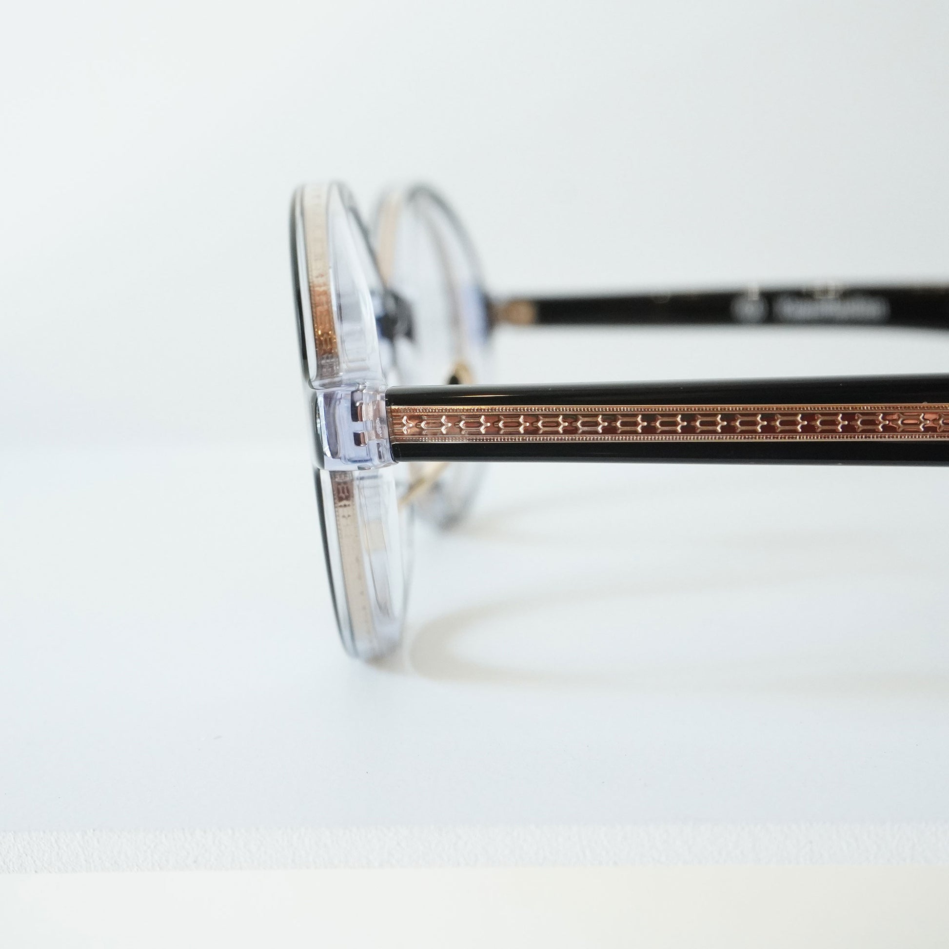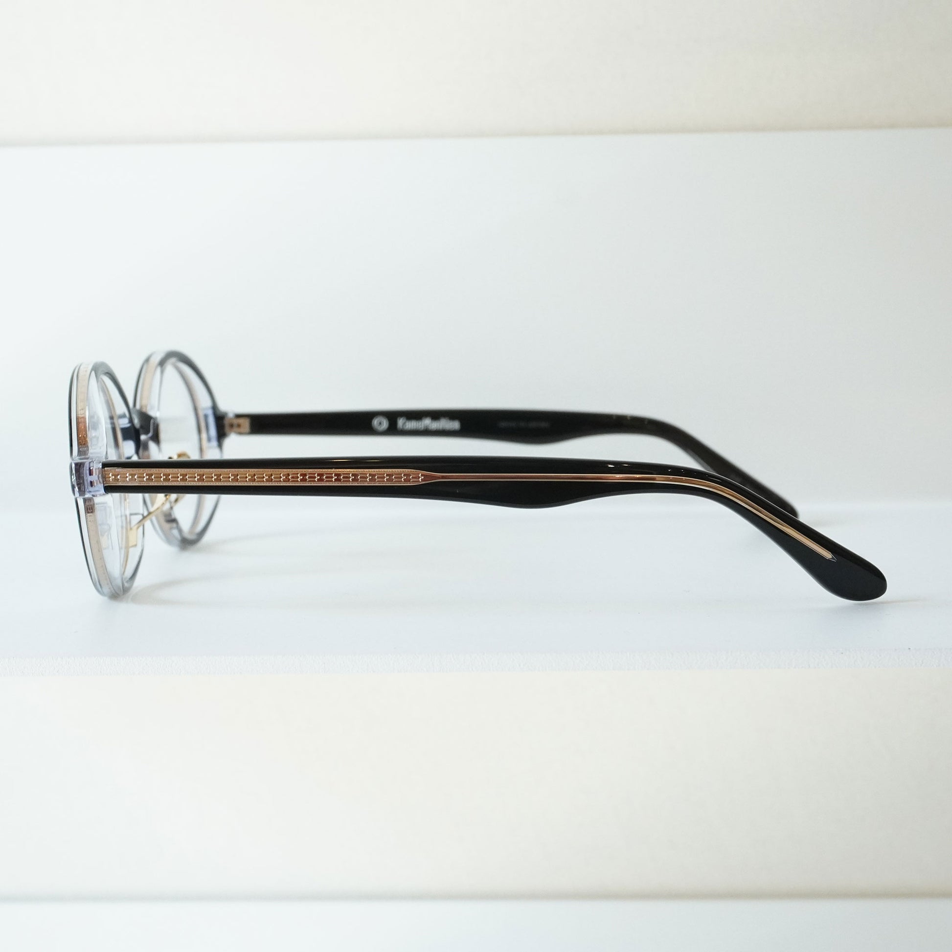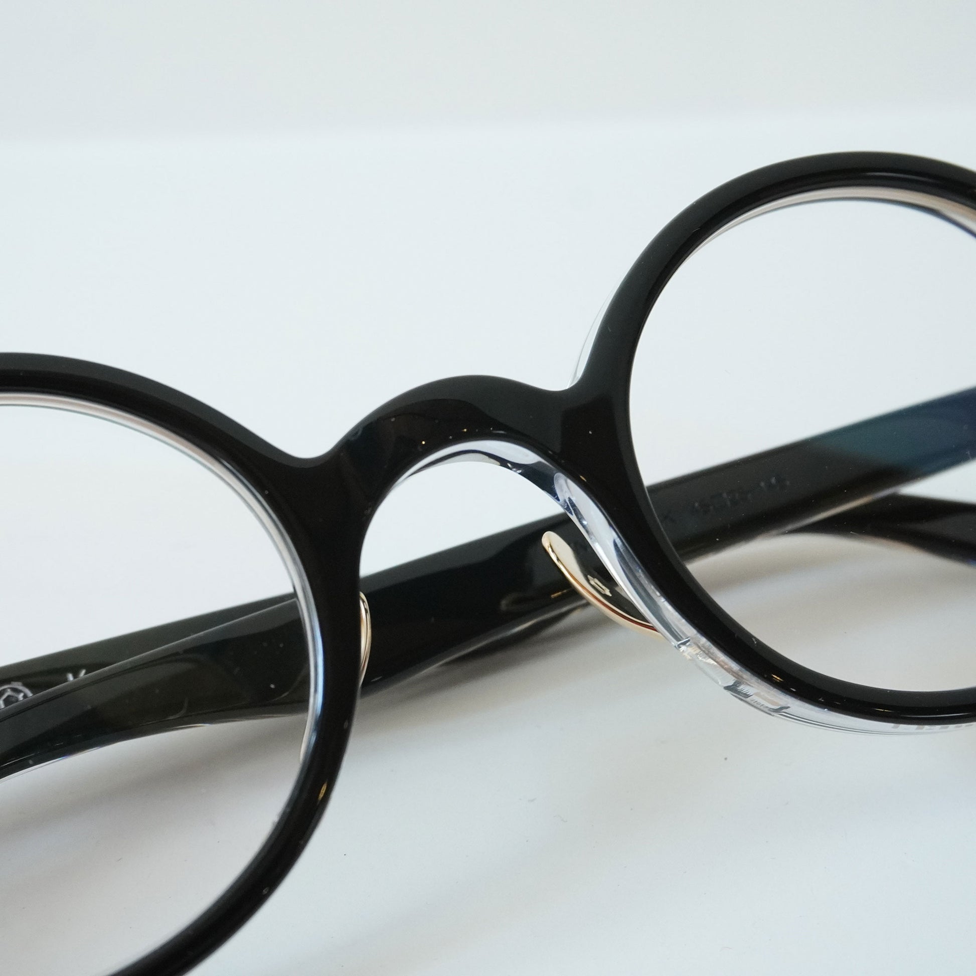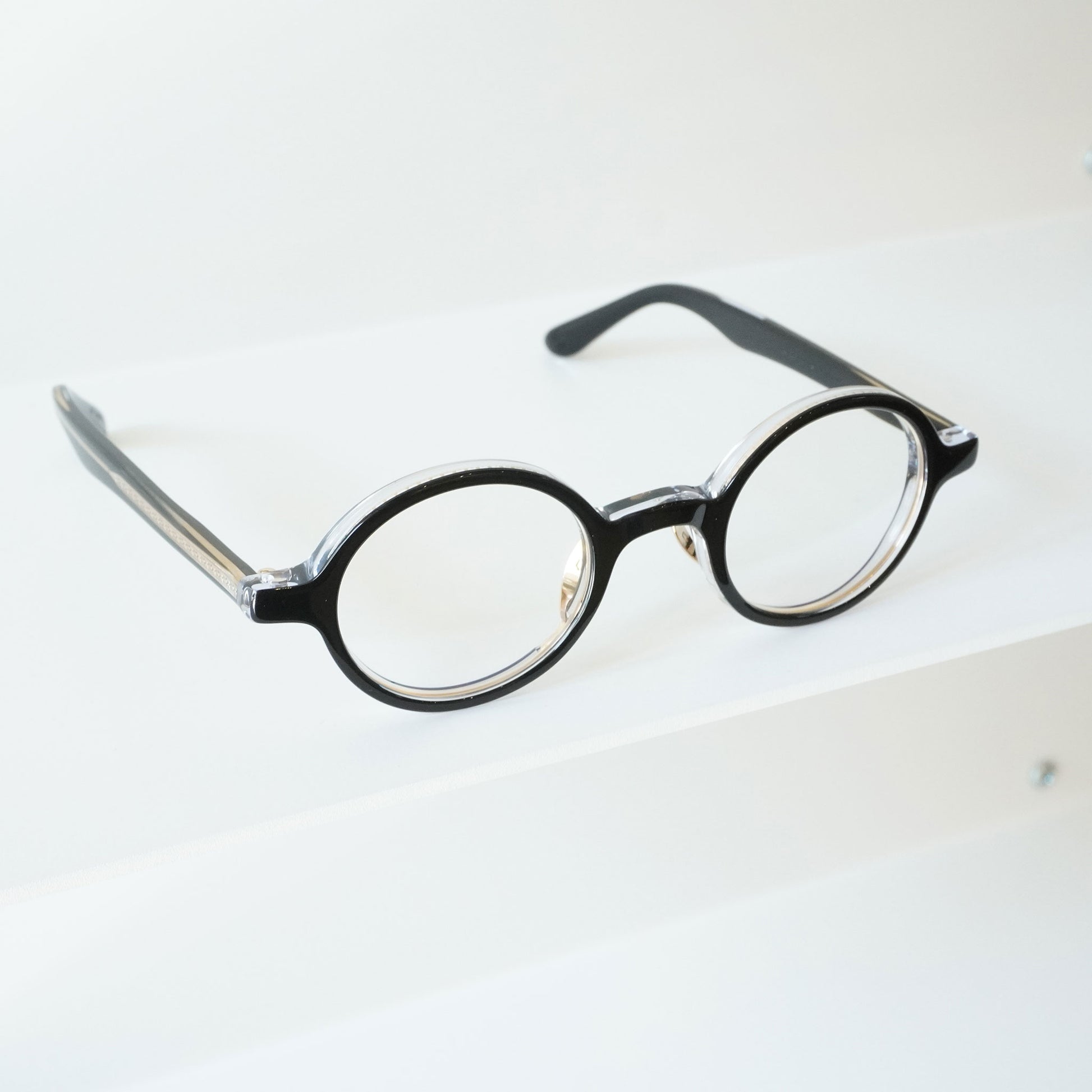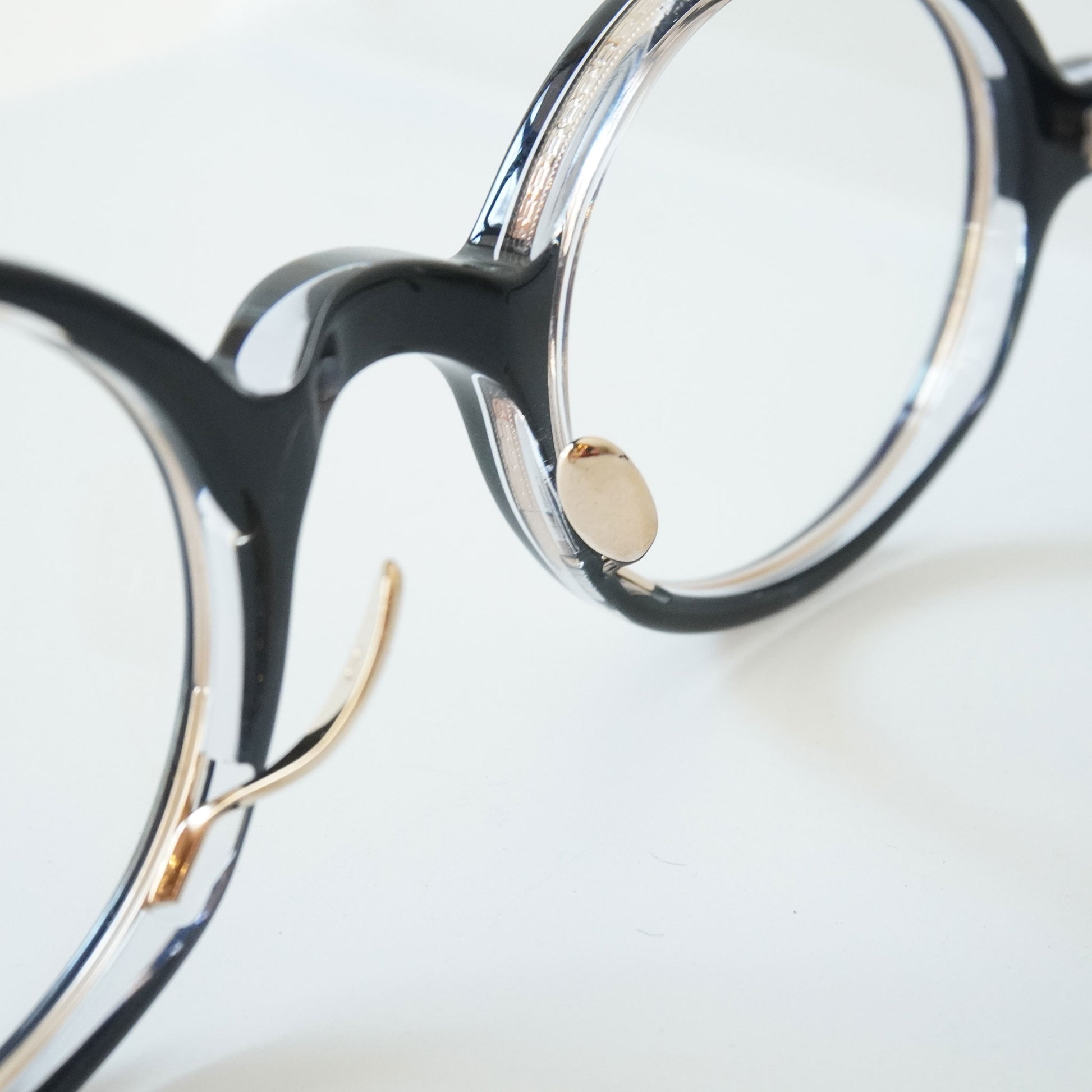 カメマンネンのアセテートシリーズです。太さのあるラウンドシェイプですが、表と裏でバイカラーになっているので重い印象になることなく掛けられます。