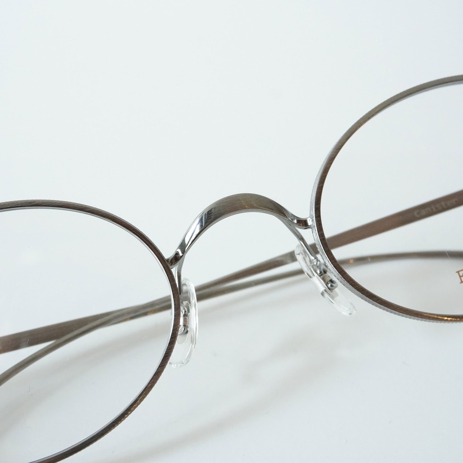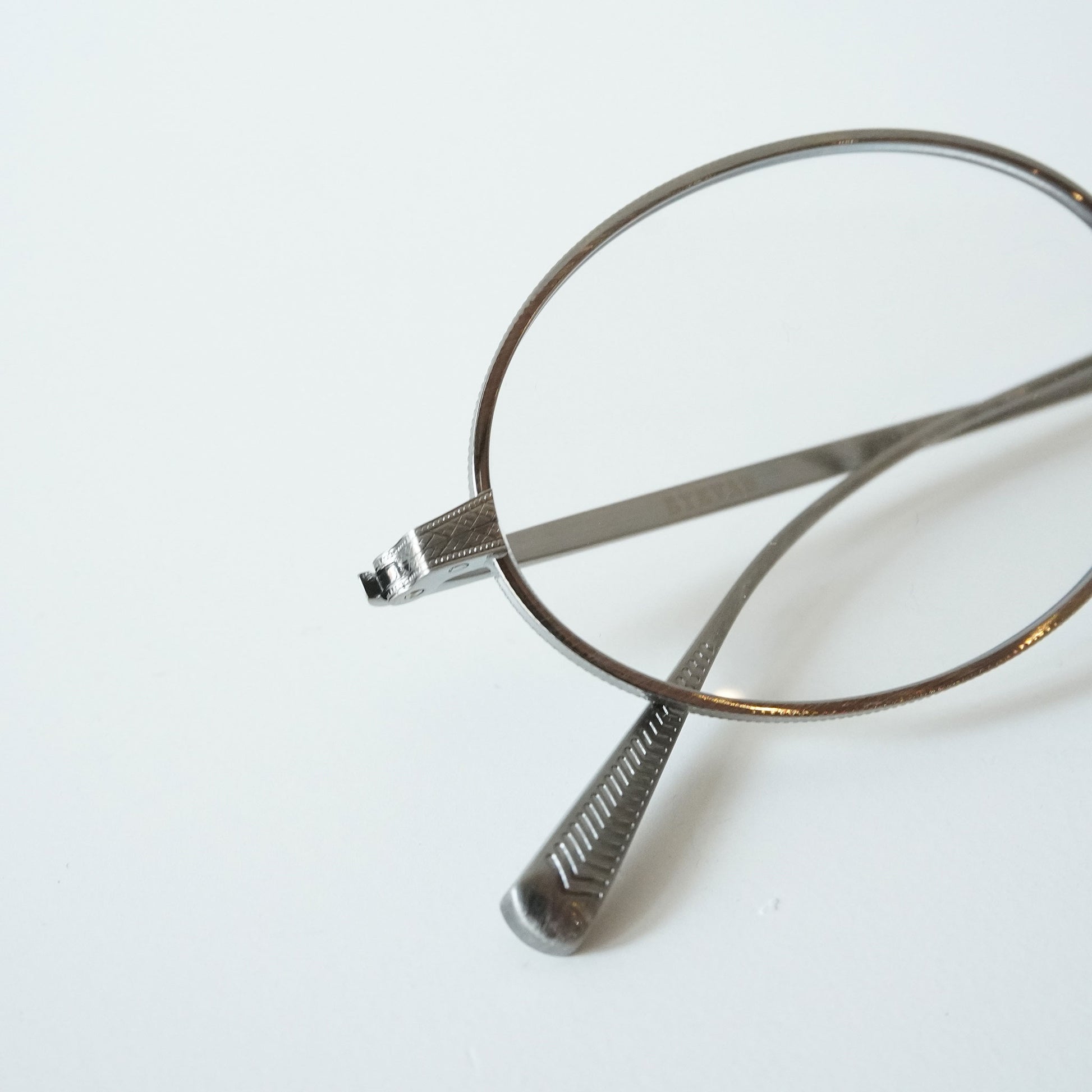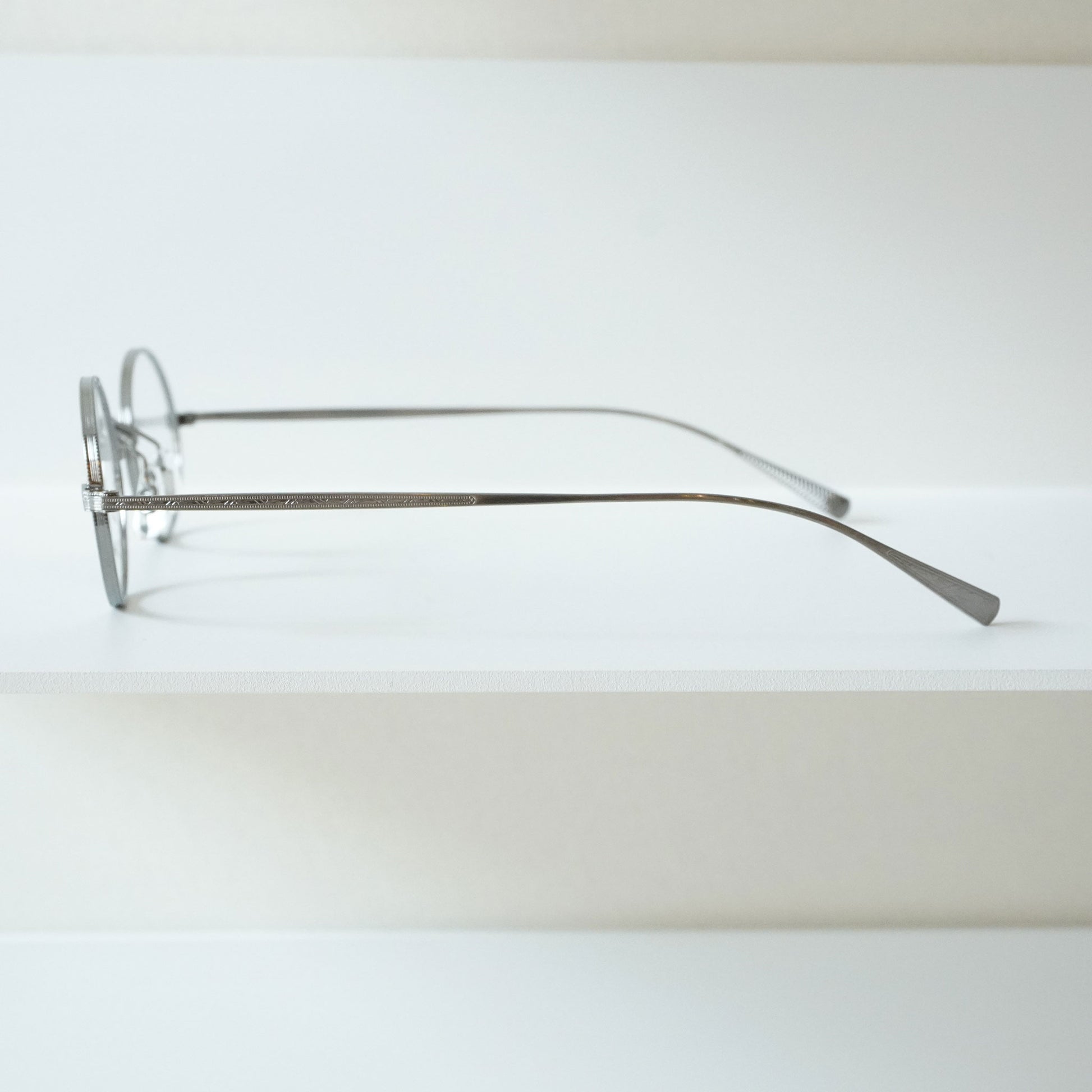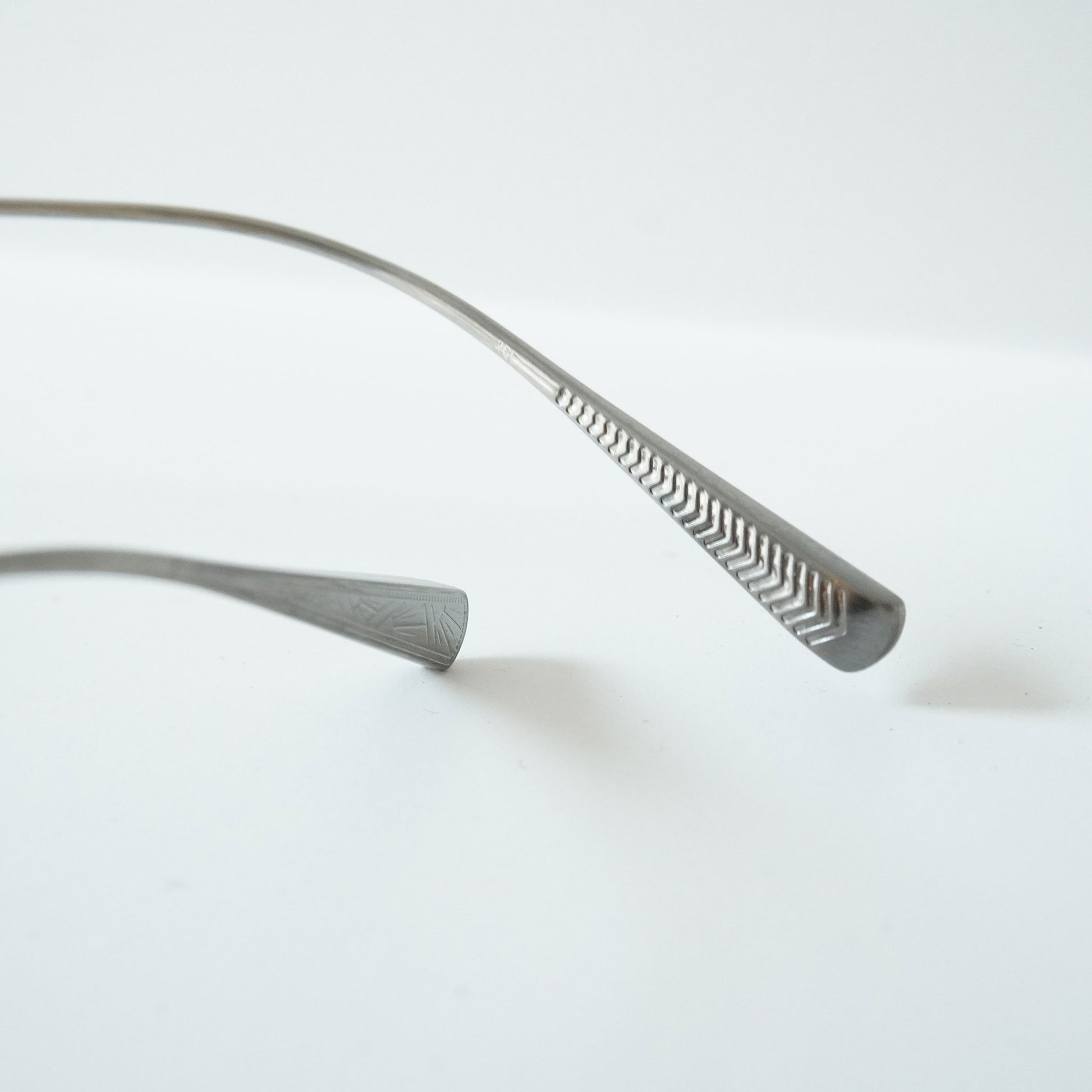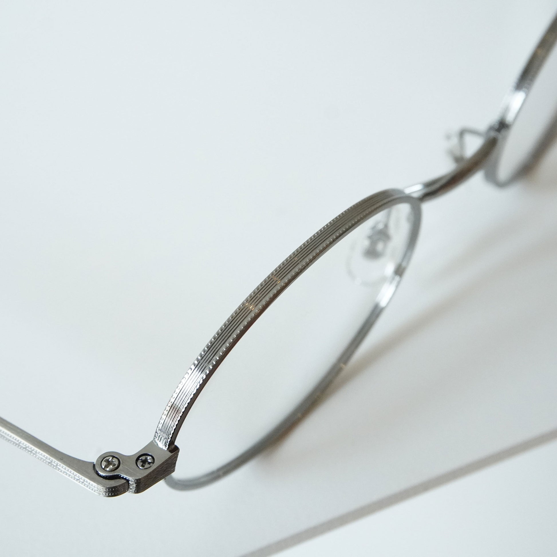 2023SSシーズンモデル『Creston』から派生した新しいフレーム。1930年代のメタルフレームのブリッジが着想源となった、通常のリムよりわずかに厚みを持つオリジナルリムと、職人の手掘りマスターにより丁番の内部まで装飾されたヨロイ、繊細な模様の入ったチタンテンプルの組み合わせに柔らかな曲線のWブリッジを合わせた。レンズシェイプは、1980年代後半にイギリスの小さな工房で作られた14Kのヴィンテージフレームからサンプリングしています。