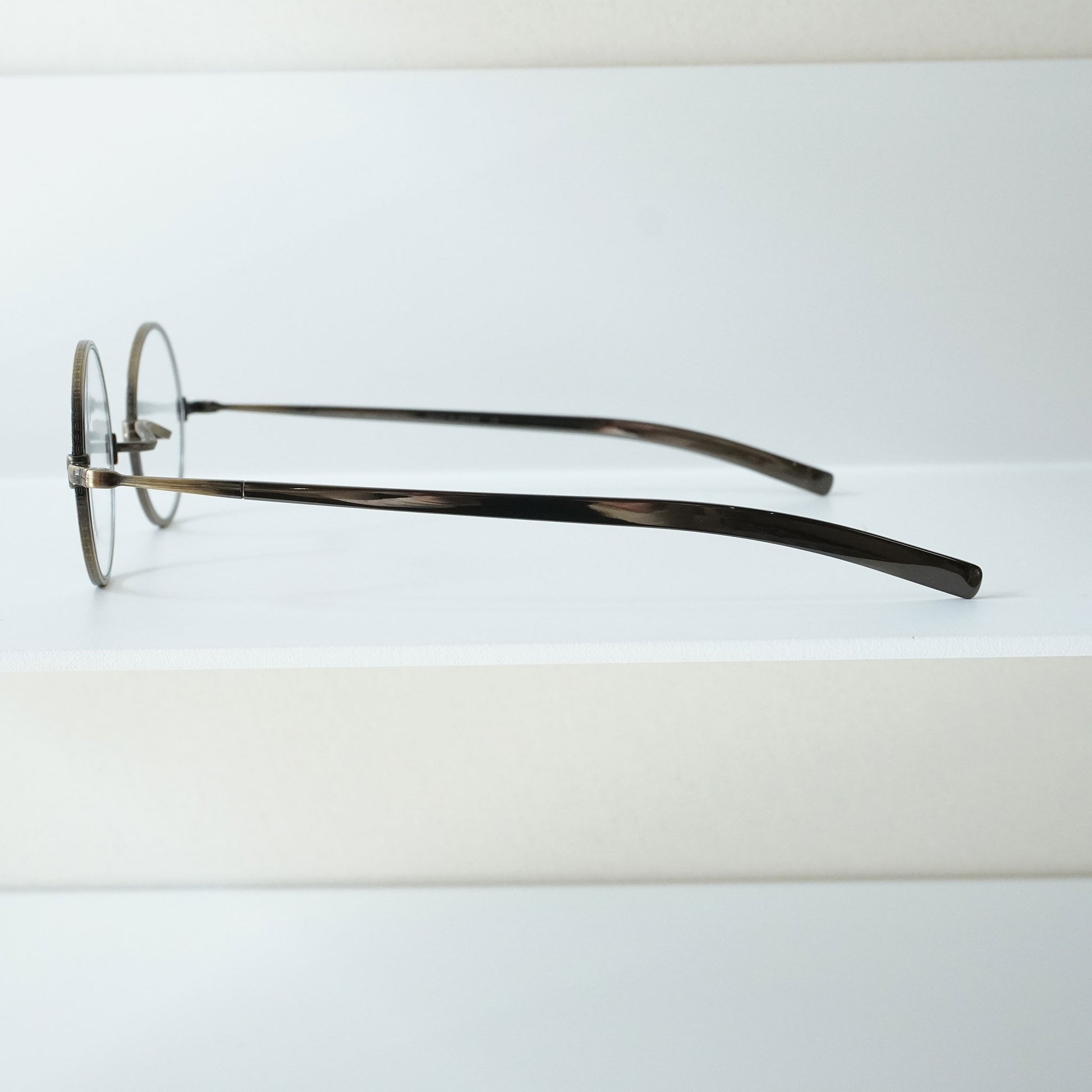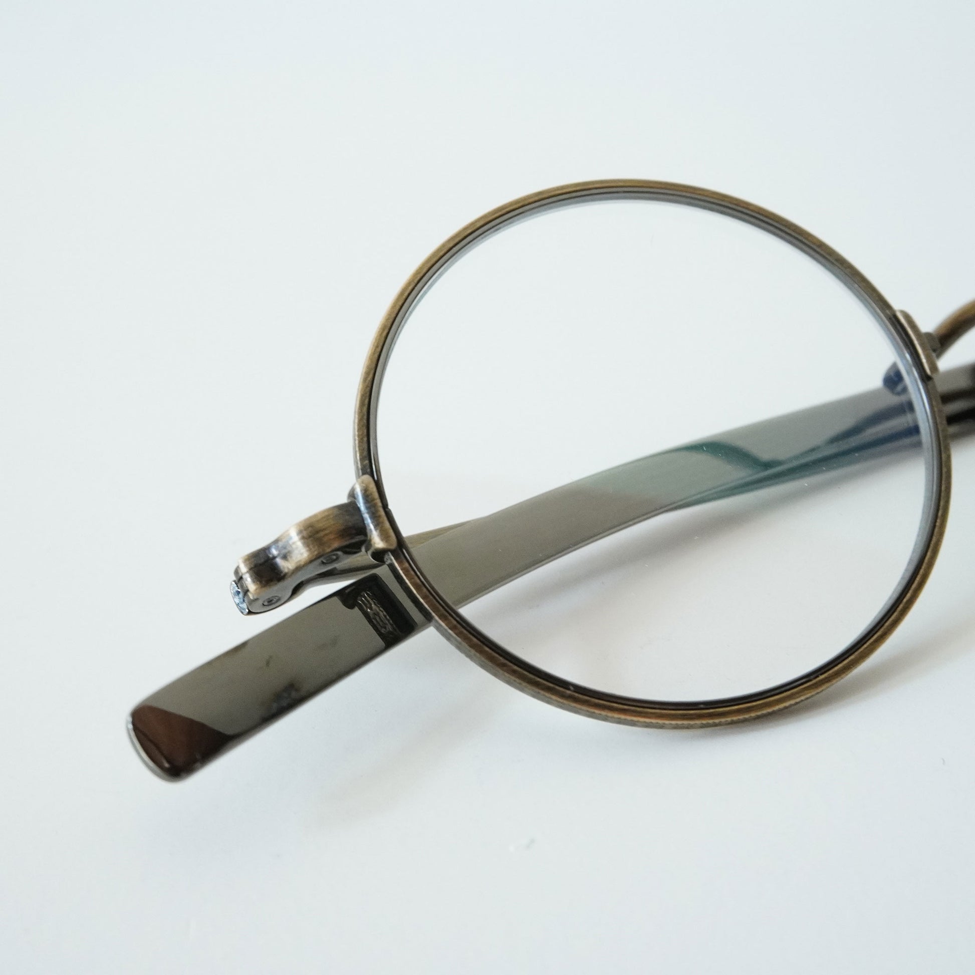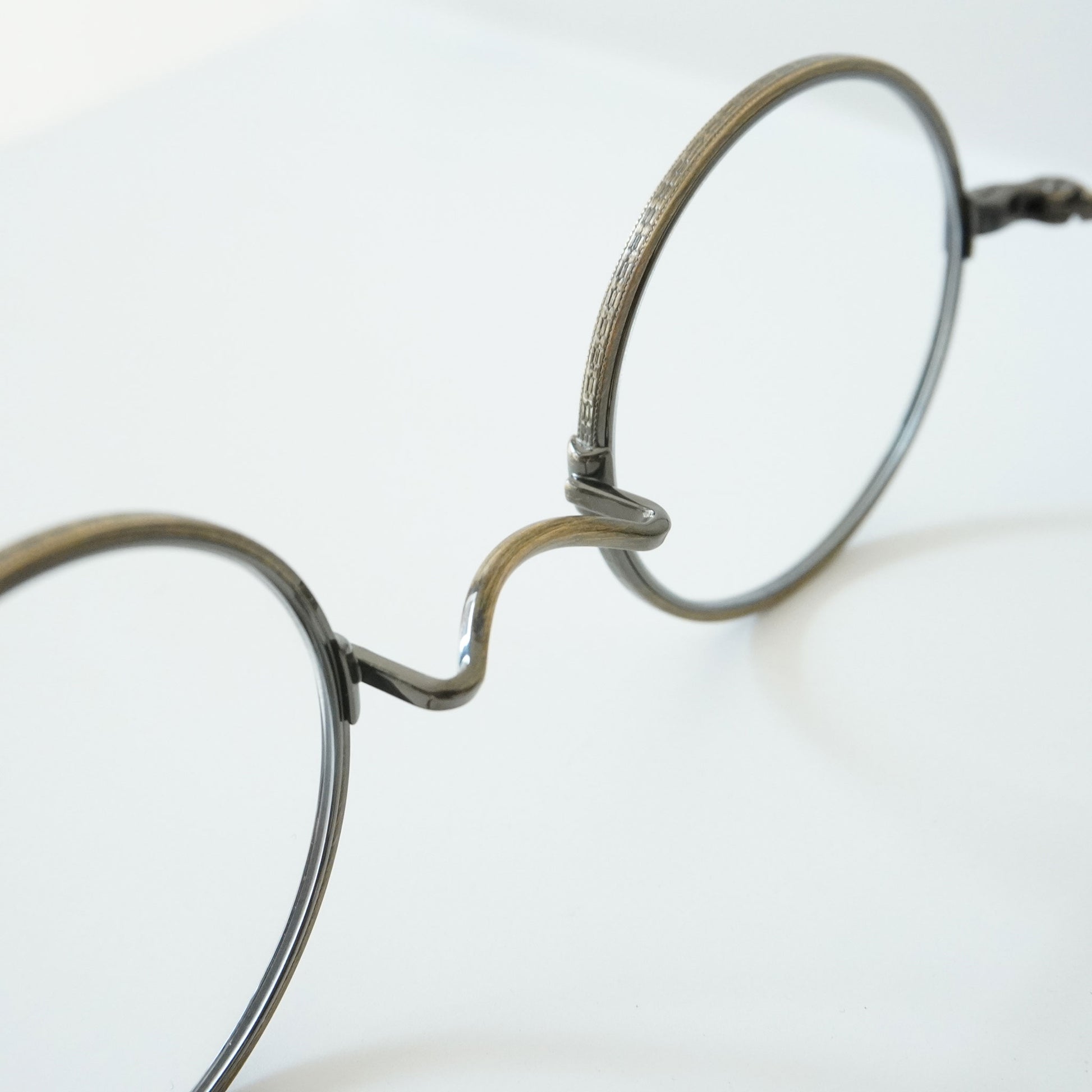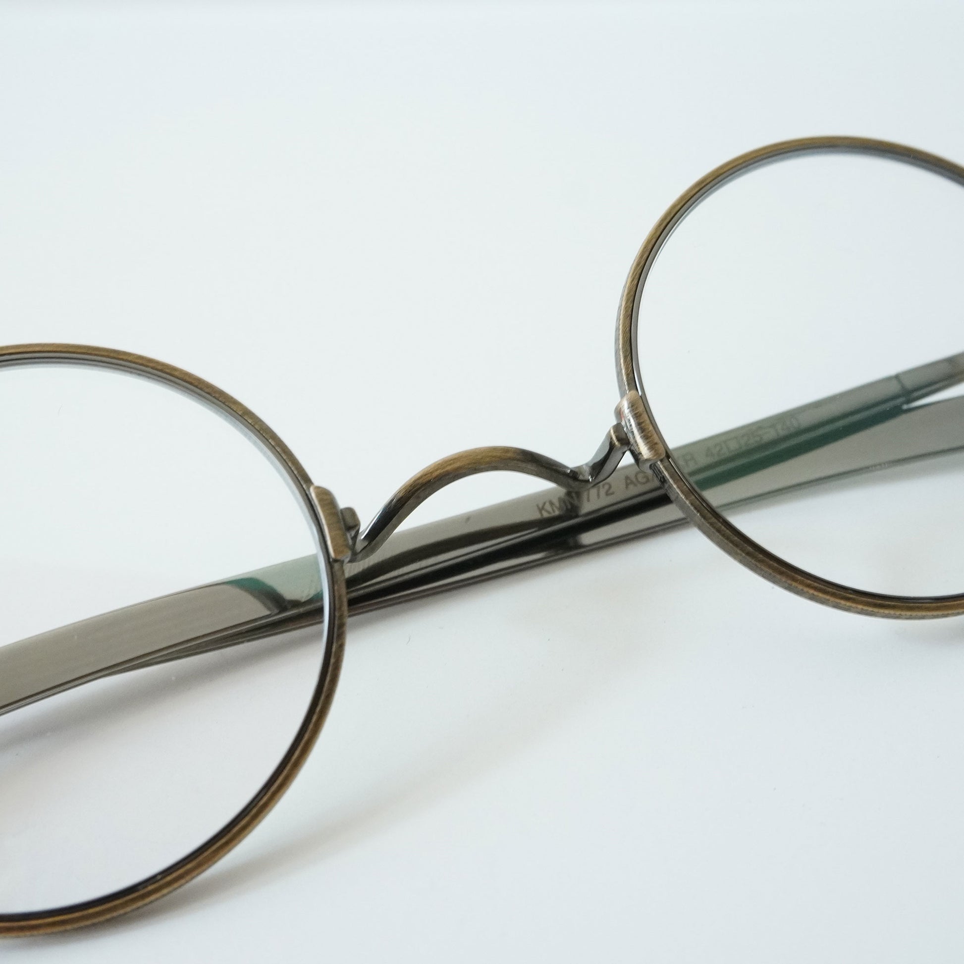 人気モデルKMN77のメタルバージョン。カメマンネン本気の一本と言われる全てチタンで製作された一山ブリッジの丸メガネ。昔ながらのデザインをフルメタルを使う事によってモダンな仕上がりとなった高級感のあるモデルです。