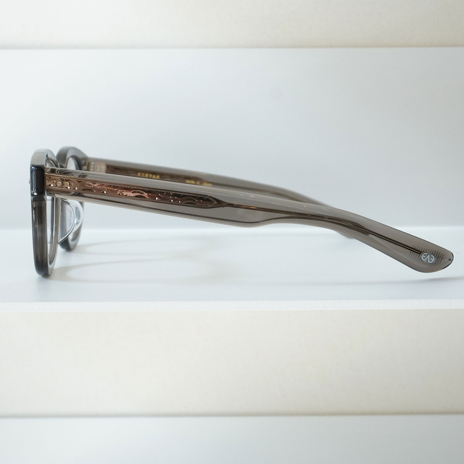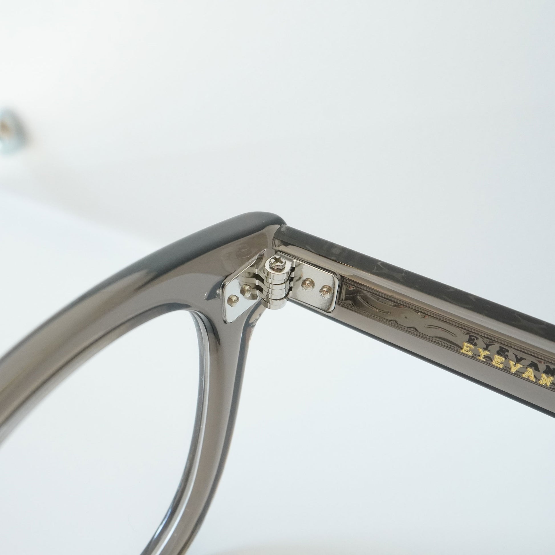 1960年代に主流であったUSヴィンテージの肉厚なウェリントンシェイプのスタイルをEYEVANのマスターピースモデル『Webb』によって表現したモデル。フロントリムを0.1mm単位で再度設計し直し、その1960年代のヴィンテージフレームからテンプルデザインとオフセットの構造をサンプリングした。丁番にはセルフレーム最初期のごく一部のモデルに見られた、台座がスクエア形状のものをオリジナルで製造し合わせた。