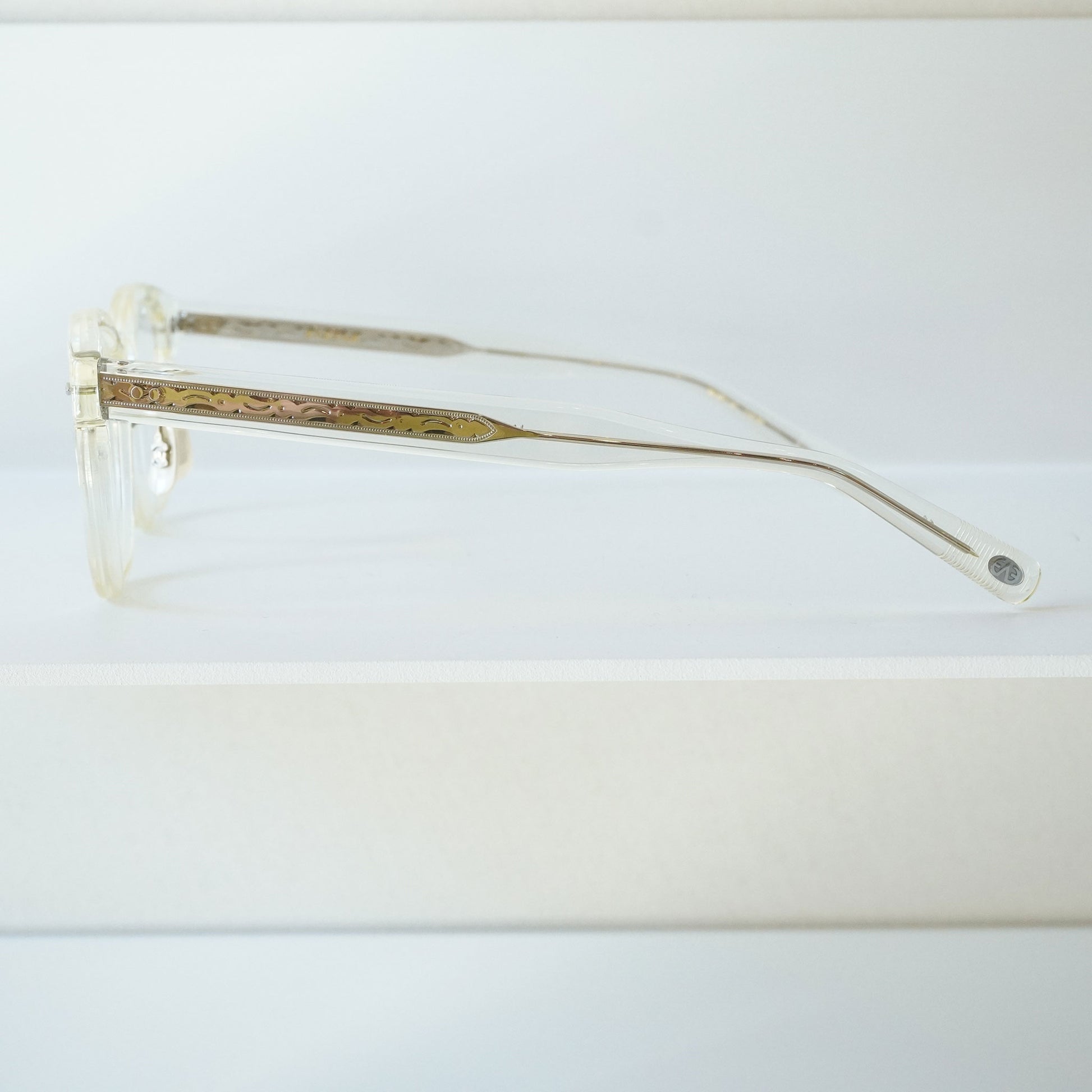 EYEVAN のアイコニックモデル“Webb”にクリングスアームを採用した COMFORTABLE PAD MODEL“Webb-CP”。オリジナルのカシメ丁番を採用し、テンプル芯にはクラシックカーのパーツからインスパイアされ た柄を表裏に彫り込んだオリジナル芯を採用したウェリントンプラスチックフレームの名作“Webb”。クリングスアーム PAD の採用により、より快適なフィッティングを実現。PAD カラーは VINTAGE 調のカラーを採用しラグジュアリー さを演出しています。