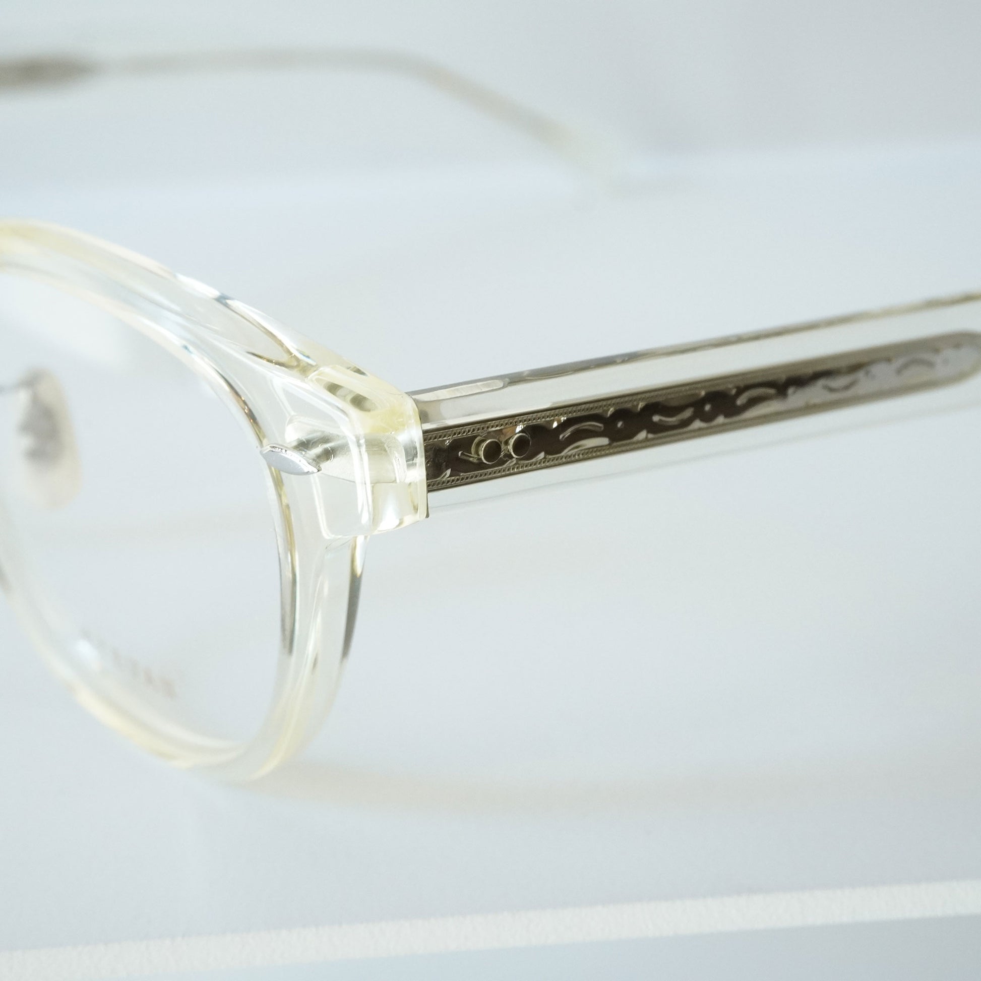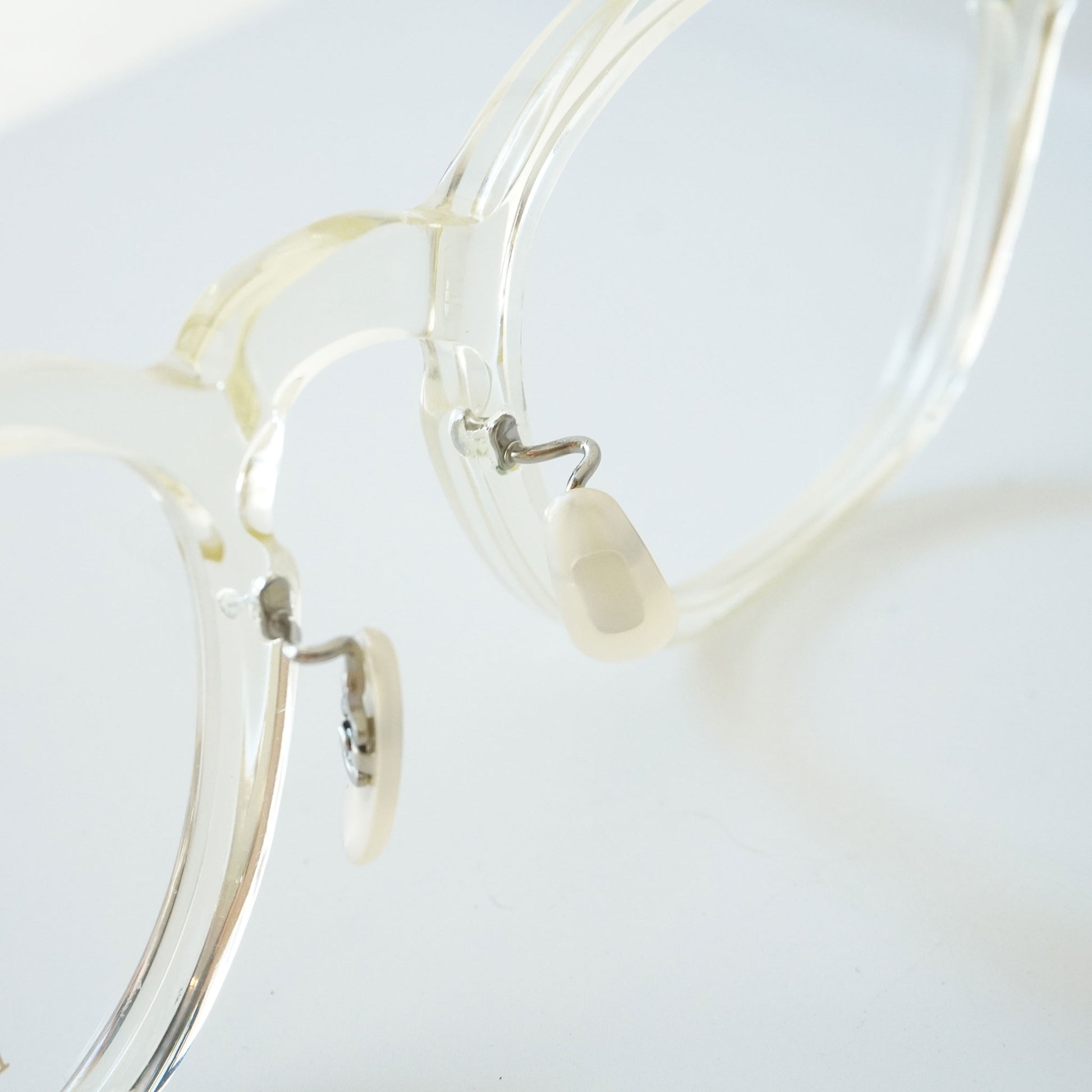 肌馴染みのいいシャンパンカラーです。クリアフレームをお探しの方に人気があります。