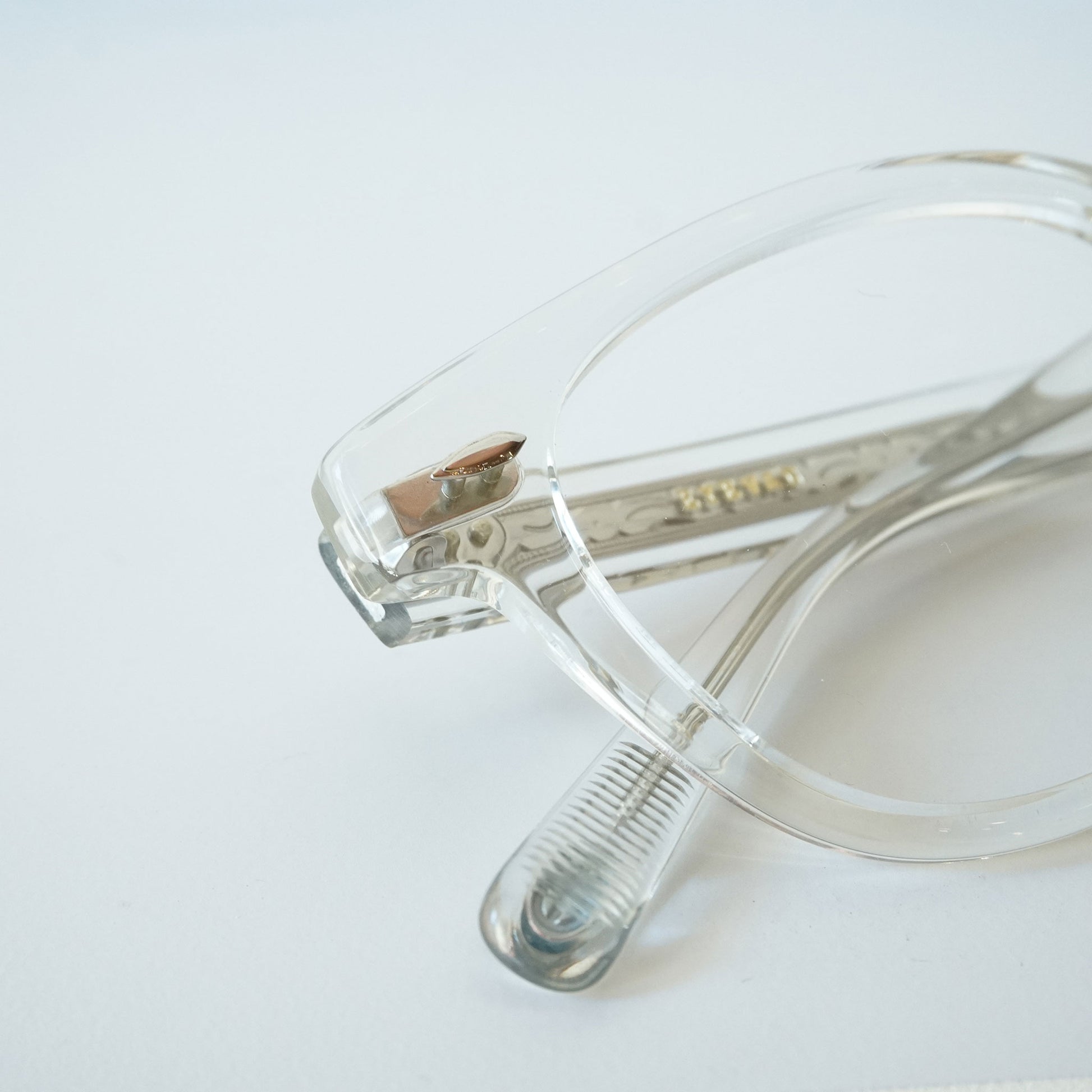 EYEVAN のアイコニックモデル“Webb”にクリングスアームを採用した COMFORTABLE PAD MODEL“Webb-CP”。オリジナルのカシメ丁番を採用し、テンプル芯にはクラシックカーのパーツからインスパイアされ た柄を表裏に彫り込んだオリジナル芯を採用したウェリントンプラスチックフレームの名作“Webb”。クリングスアーム PAD の採用により、より快適なフィッティングを実現。PAD カラーは VINTAGE 調のカラーを採用しラグジュアリー さを演出しています。