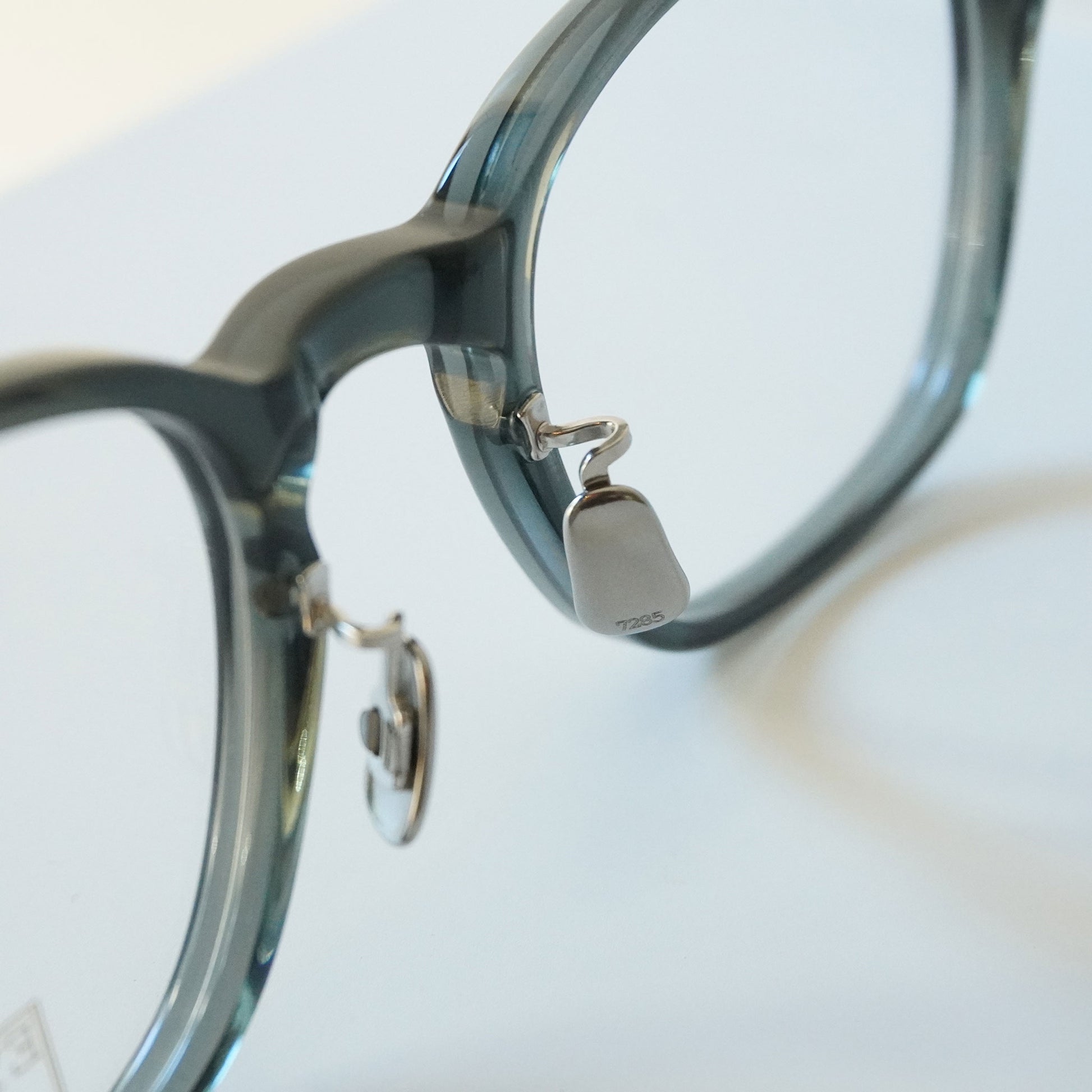 2018SSモデル「320」のリファインモデル。やや縦幅を抑えたウェリントン型にUSヴィンテージを想起させるキーホールがクラシックな佇まい。ブランドのアイコンパーツであるミリタリー丁番、研ぎ出しによるサンプラチナ製オリジナル飾りカシメなど細部にまでブランドの拘りが凝縮されている。7285としての“オーセンティック”なスタイルをストレートに表現した形。
