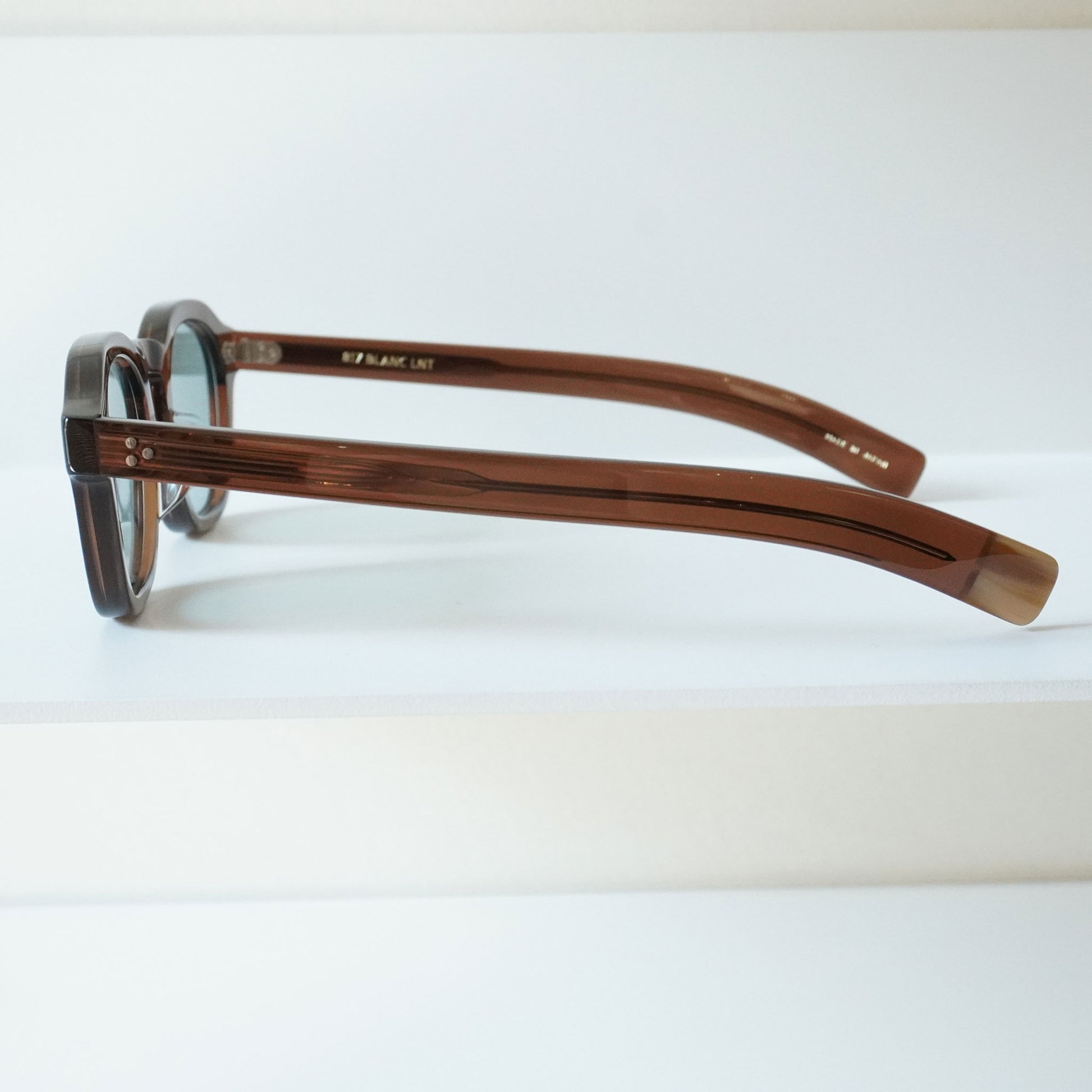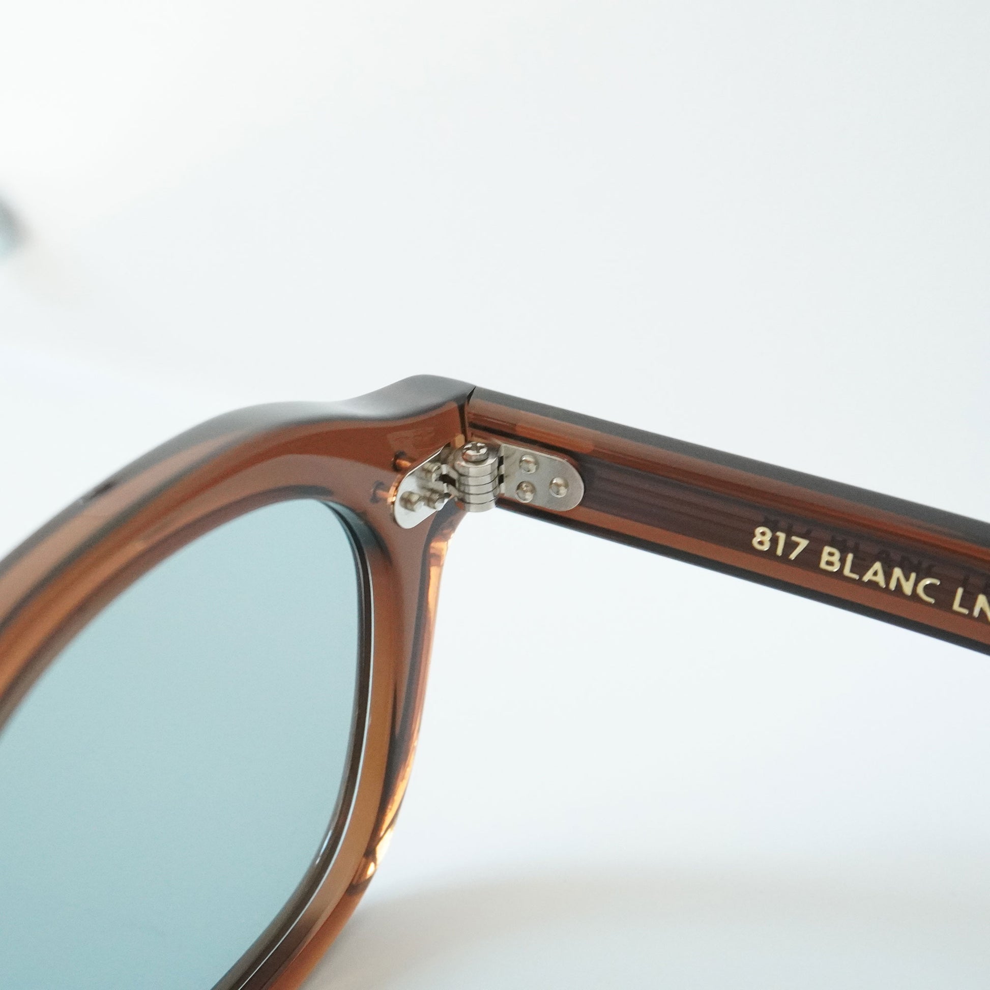 BLANC means "white" in French, and was named after the pure and simple image of the material that can be dyed any color, and the fact that white paint is used to express "light" and "luster" in paintings. The brand signature is the sign on the end of the left temple.