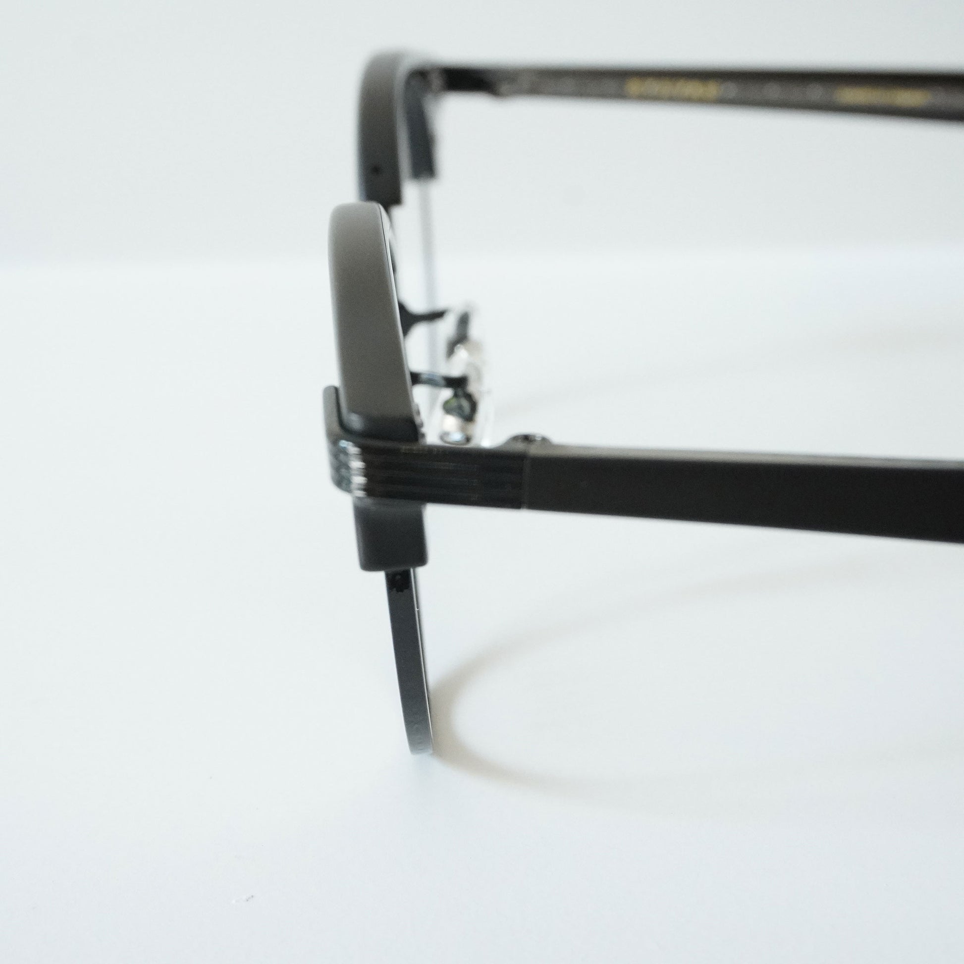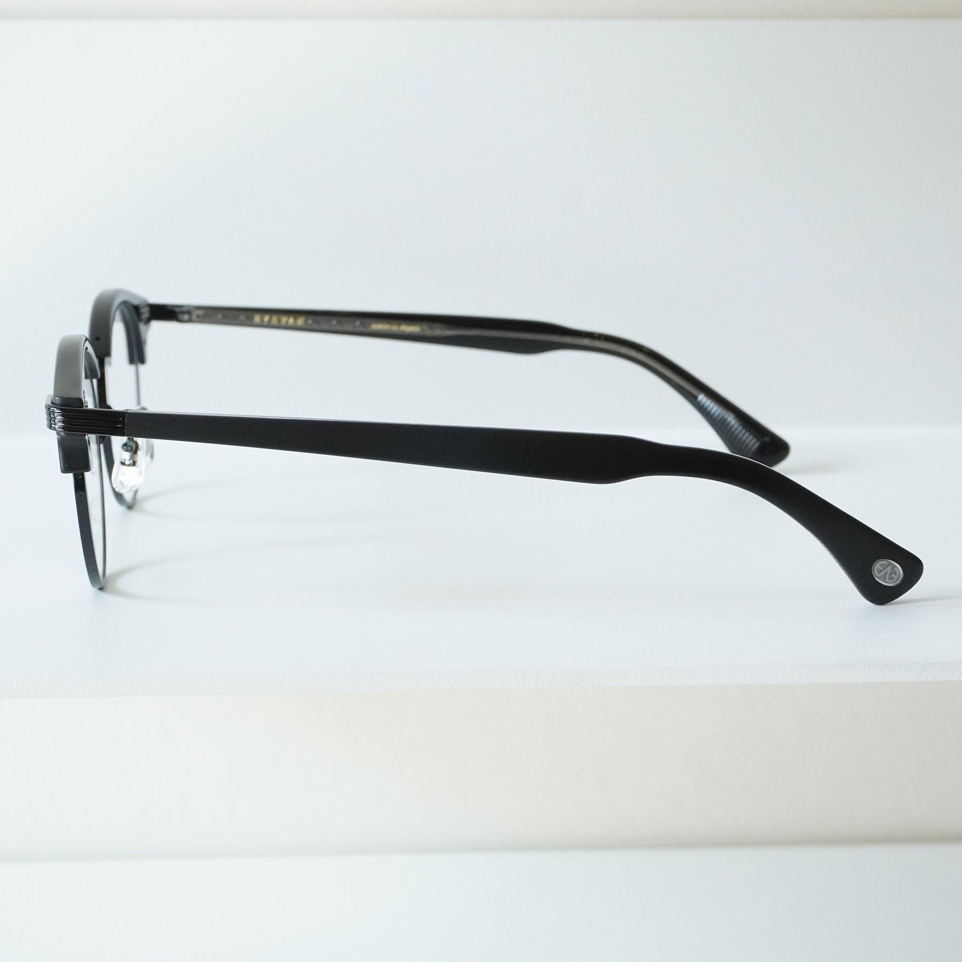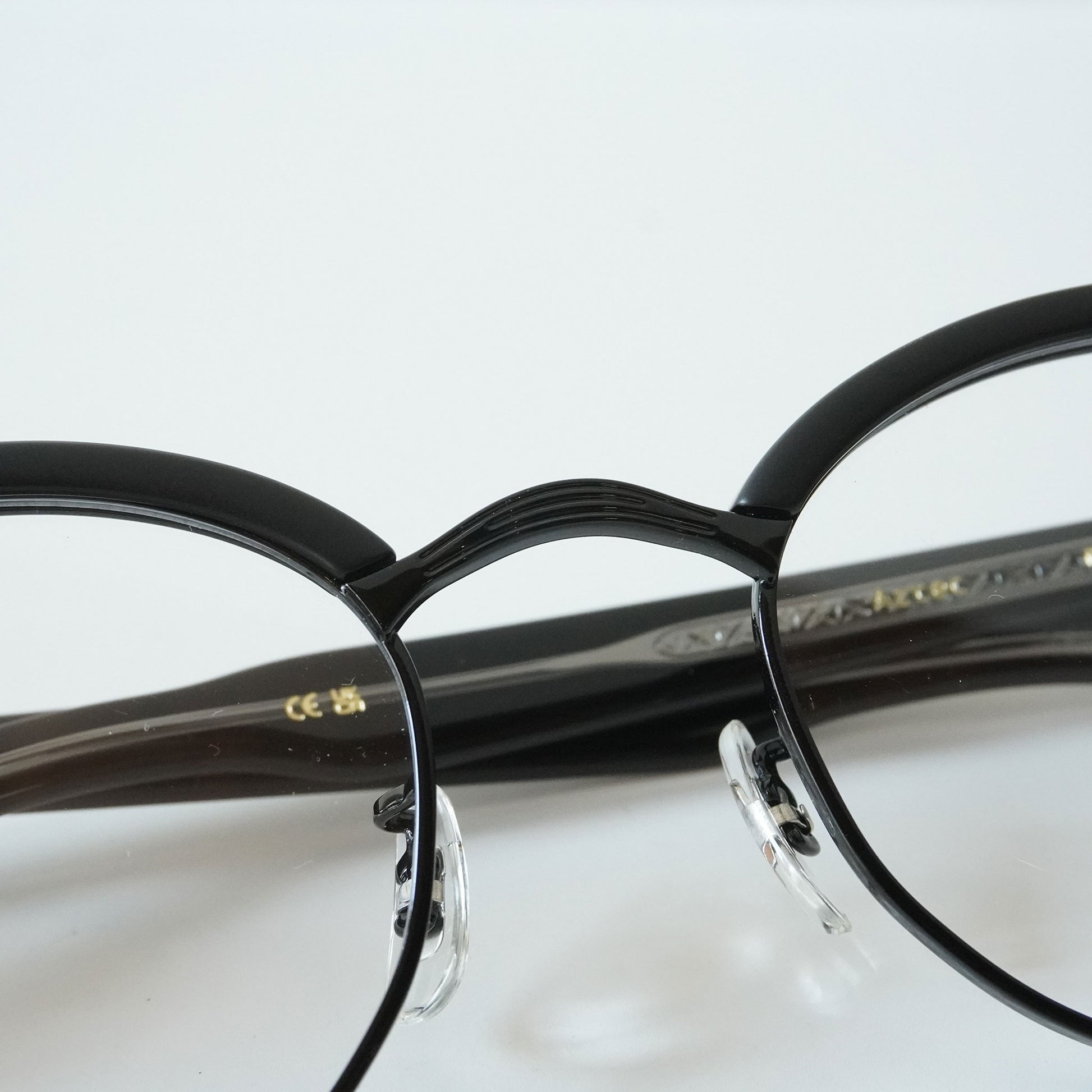 1940年代一部のアメリカンヴィンテージに見られた最初期のサーモントが着想源のフレーム。そのデザインのキーとなる印象的な曲智仕様のヨロイパーツは、型から起こしオリジナルで再現した。 あえてブリッジには繊細なデザイン、玉形にはモダンなシェイプを組み合わせることでオリジナルのヴィンテージがもつ武骨さに繊細なイメージをMIXしたEYEVANらしい新しいサーモントブロウとなった。