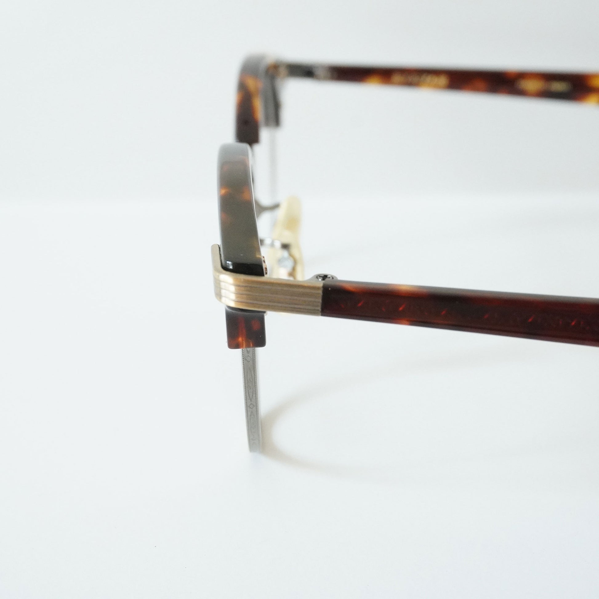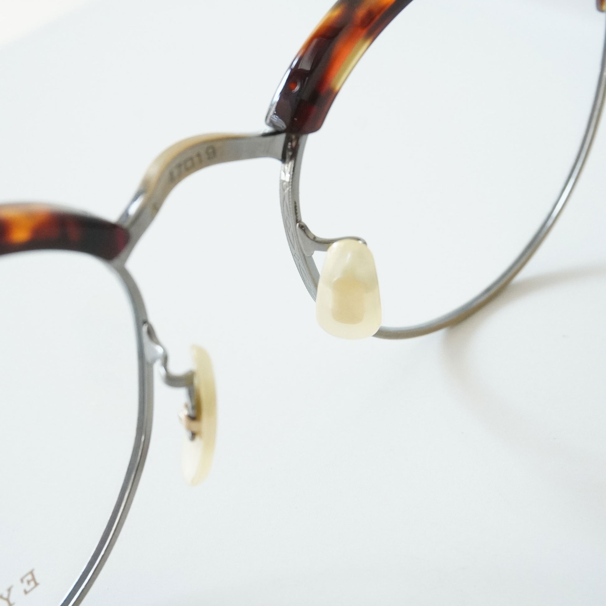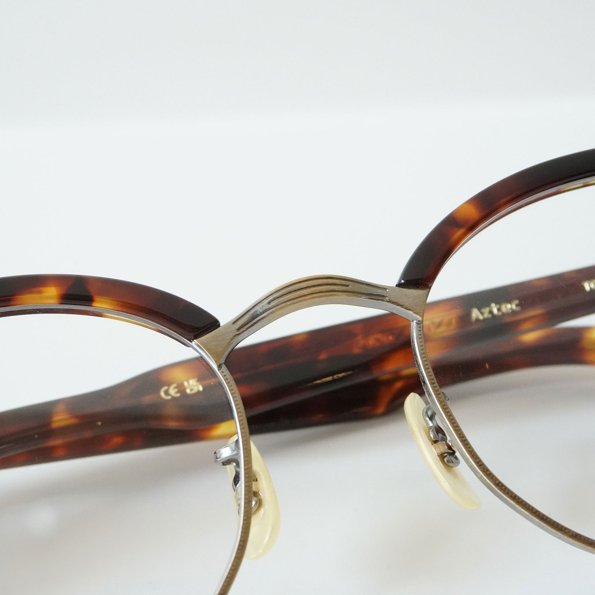 1940年代一部のアメリカンヴィンテージに見られた最初期のサーモントが着想源のフレーム。そのデザインのキーとなる印象的な曲智仕様のヨロイパーツは、型から起こしオリジナルで再現した。 あえてブリッジには繊細なデザイン、玉形にはモダンなシェイプを組み合わせることでオリジナルのヴィンテージがもつ武骨さに繊細なイメージをMIXしたEYEVANらしい新しいサーモントブロウとなった。