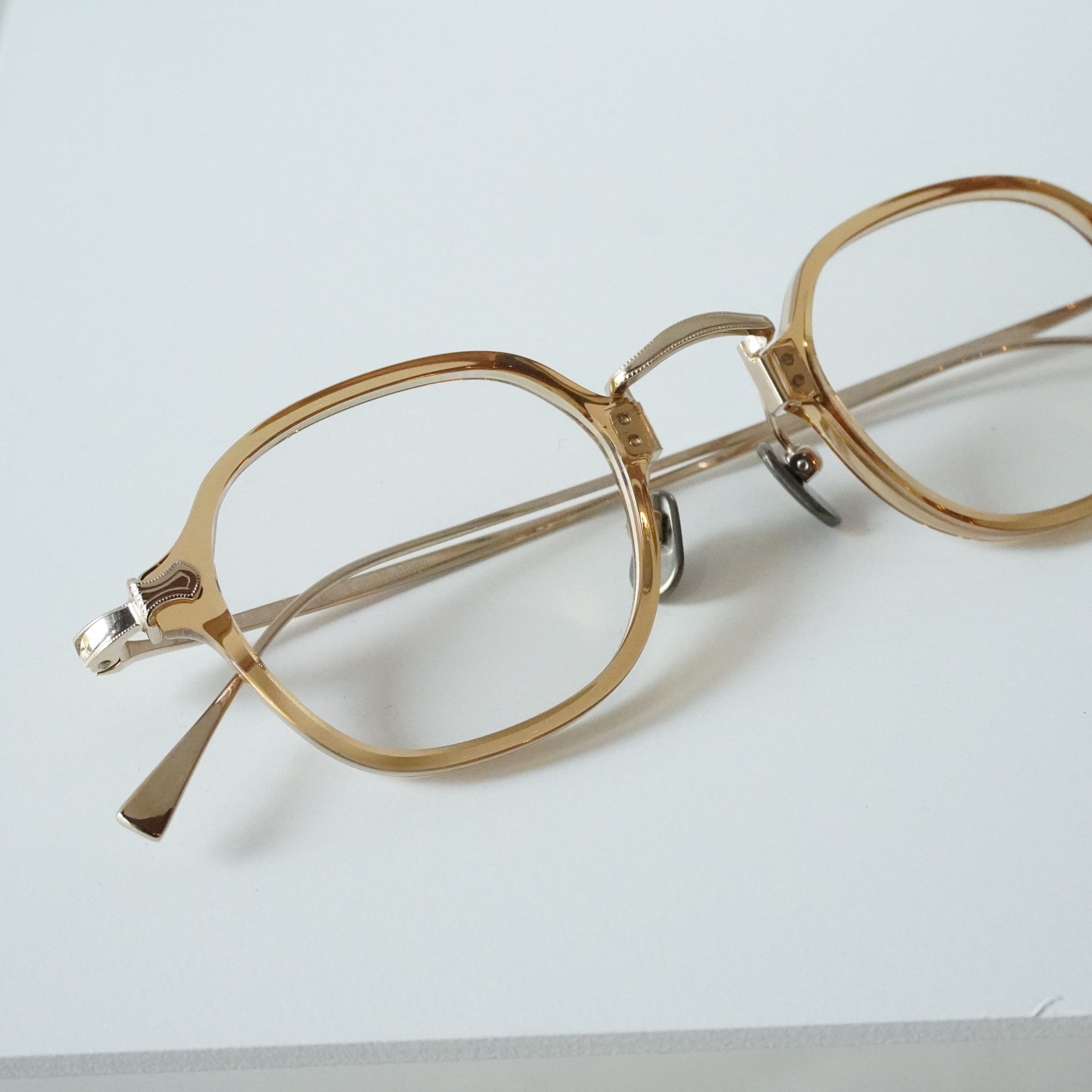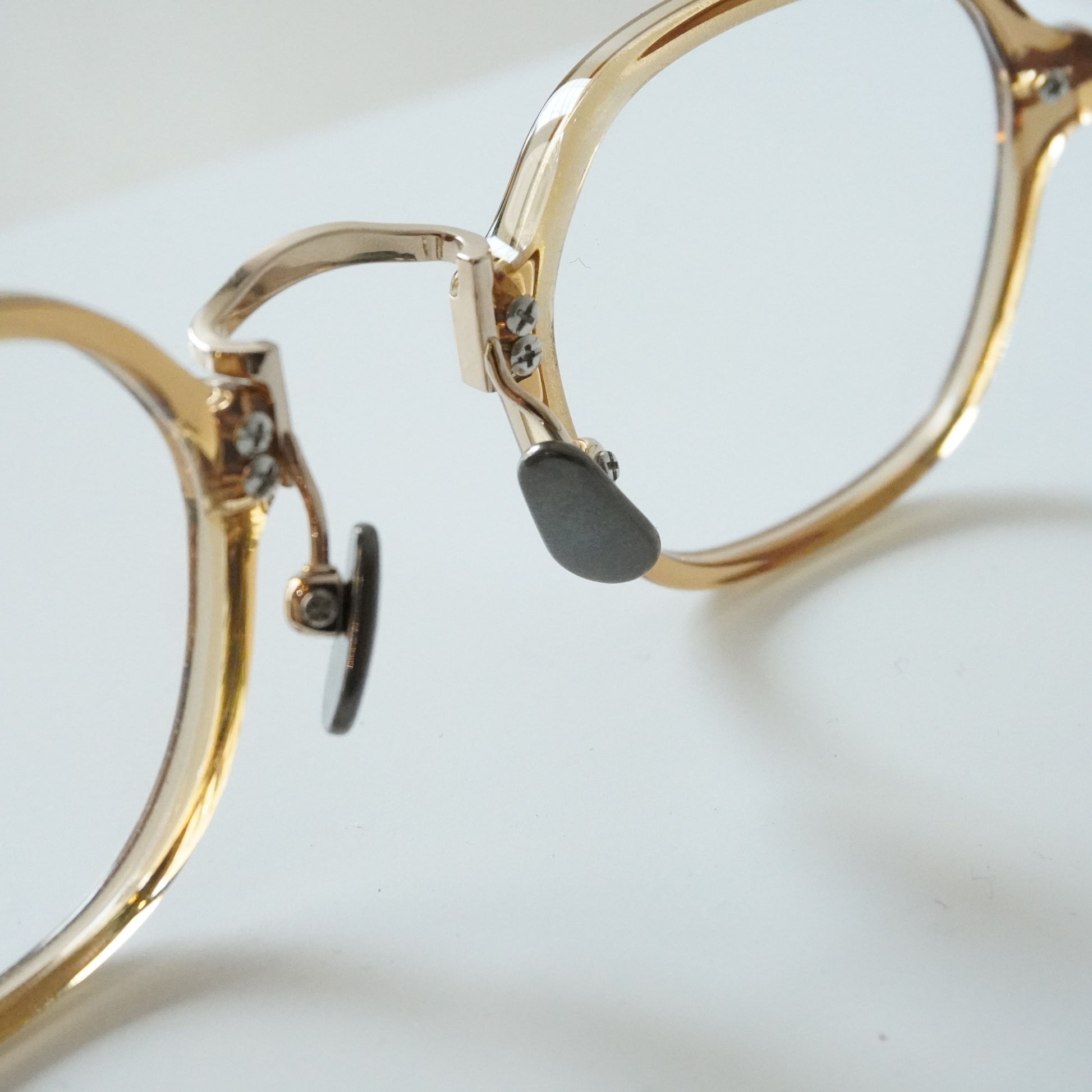 軽く掛け心地のいいコンビネーションフレーム、小さいサイズ感と四角いシェイプのバランスがいいモデルです。知的で控えめな雰囲気を持つ当店で人気のメガネ、お度数の強い方にもオススメです。