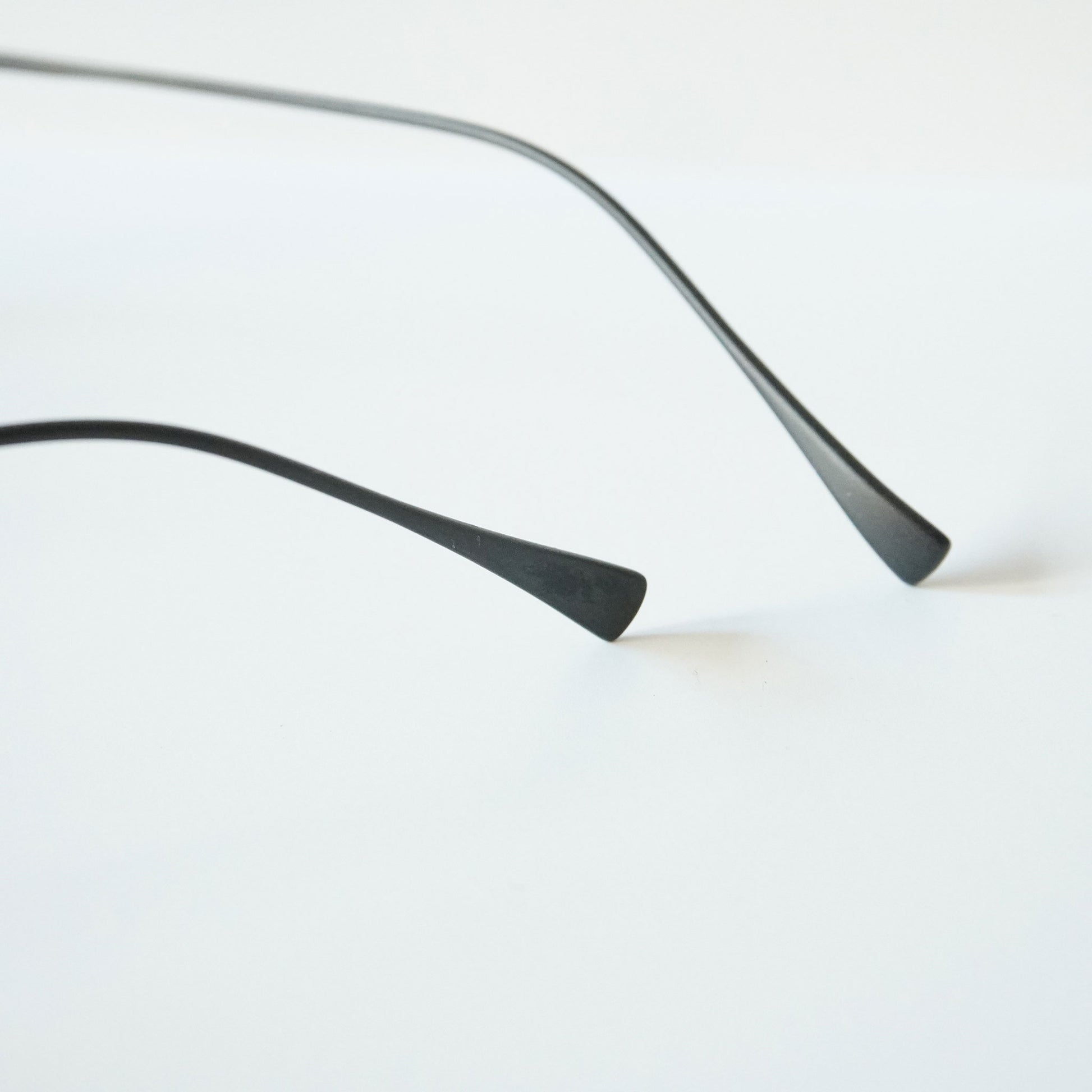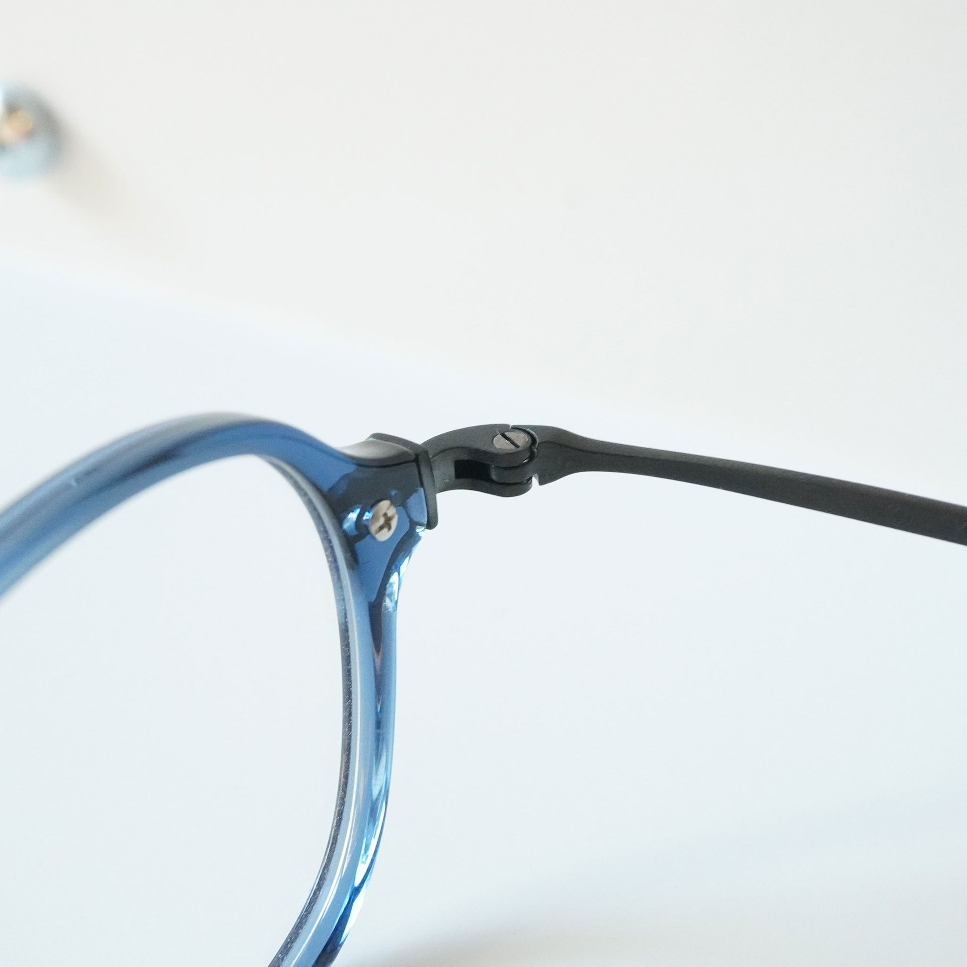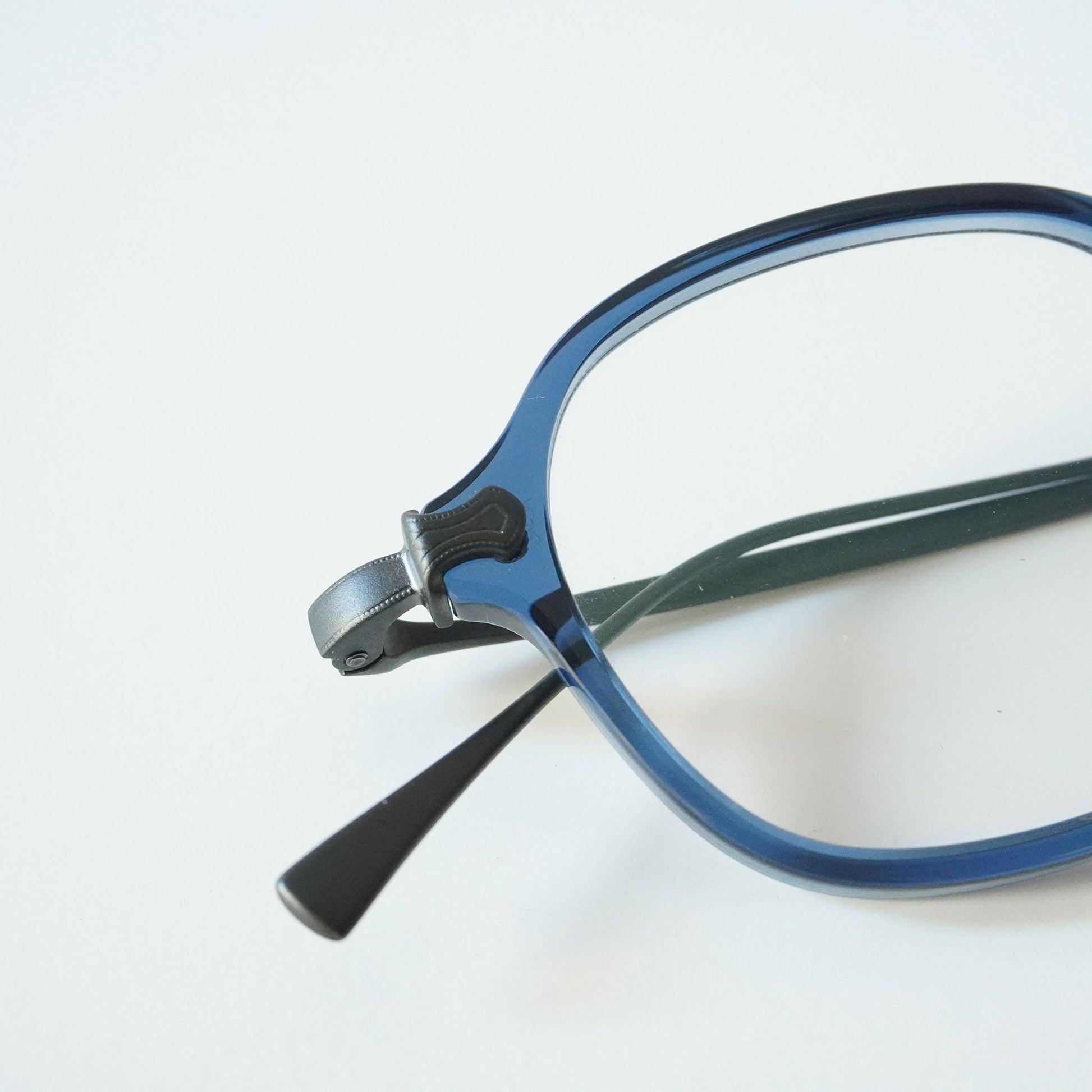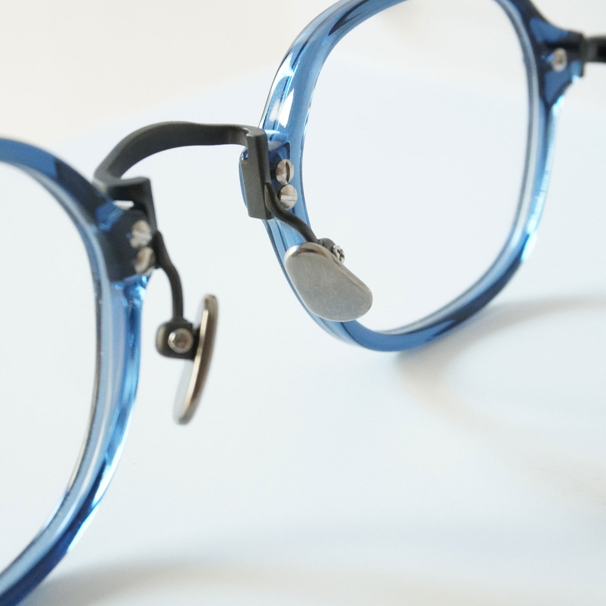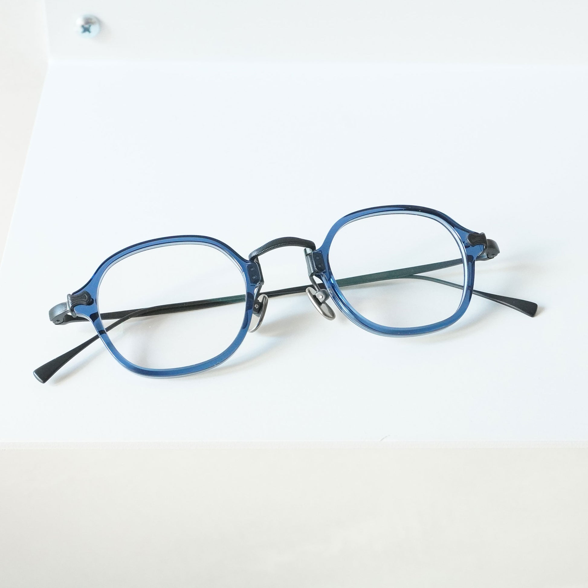 軽く掛け心地のいいコンビネーションフレーム、小さいサイズ感と四角いシェイプのバランスがいいモデルです。知的で控えめな雰囲気を持つ当店で人気のメガネ、お度数の強い方にもオススメです。