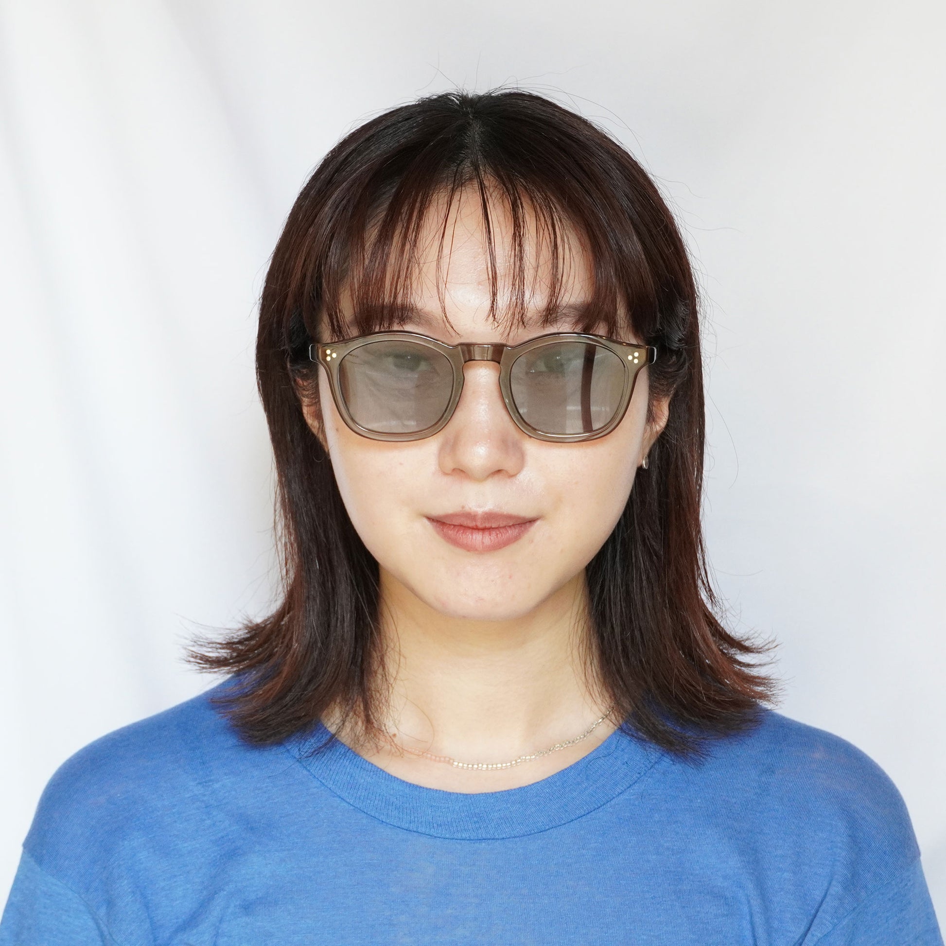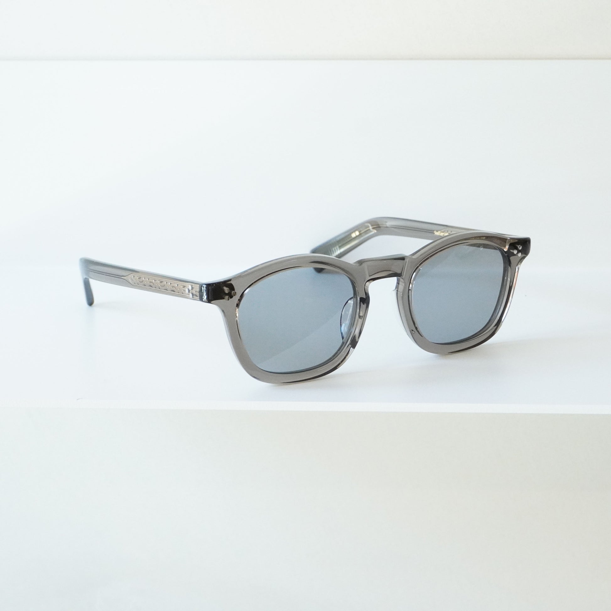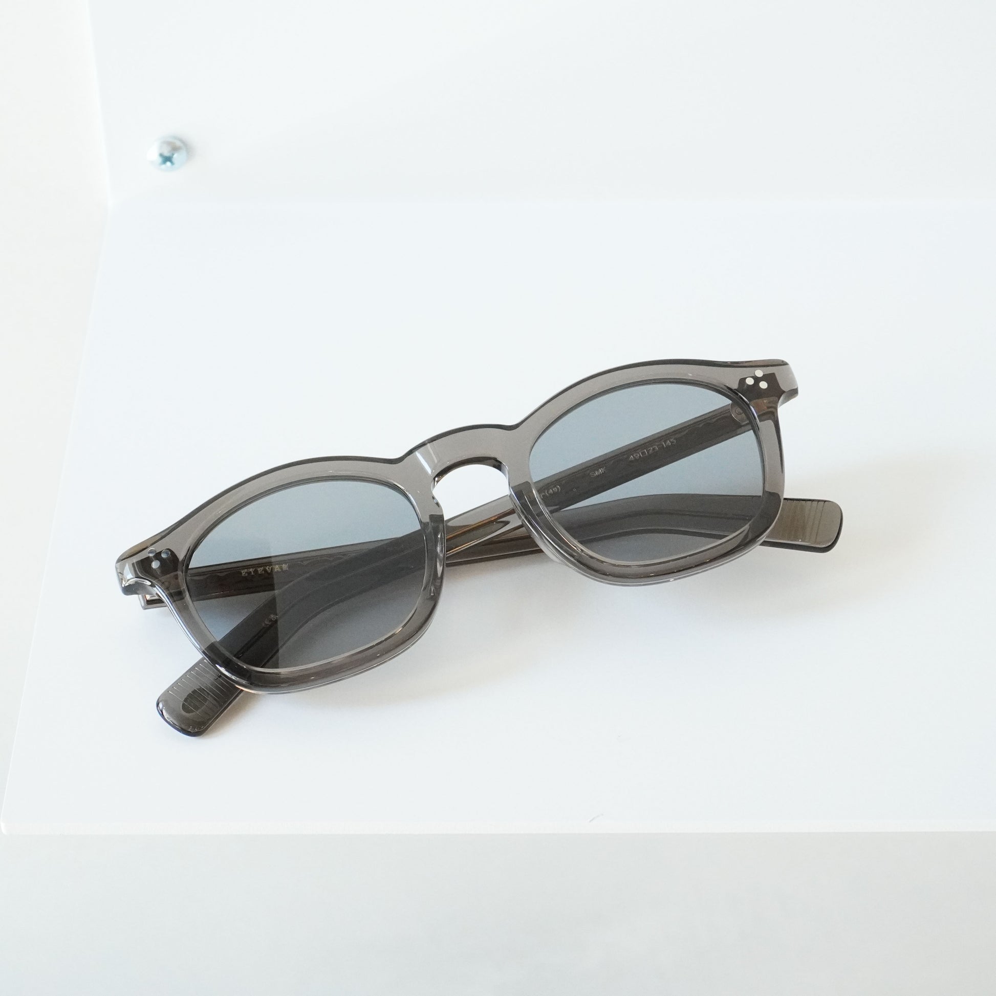 フレンチヴィンテージから着想を得た、エッヂのある肉厚なフロントと極太なワイドテンプルをEYEVAN流にデザインしたモデル。フロント、テンプル丁番には、工場に眠っていたヴィンテージのサンプルに使われていた三角形の台座の丁番をEYEVANオリジナルで再現。カシメPINには90年代に使われていた抜けを防止する補強パーツを使用。シンプルながら細部にもこだわった。