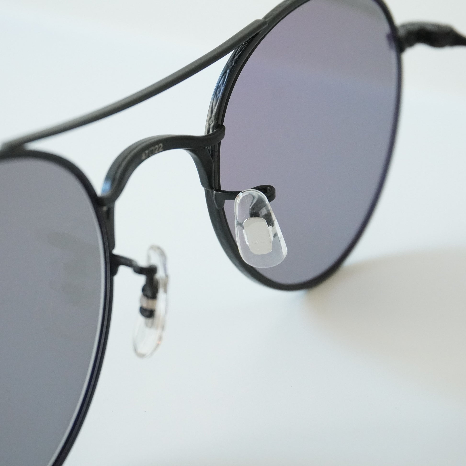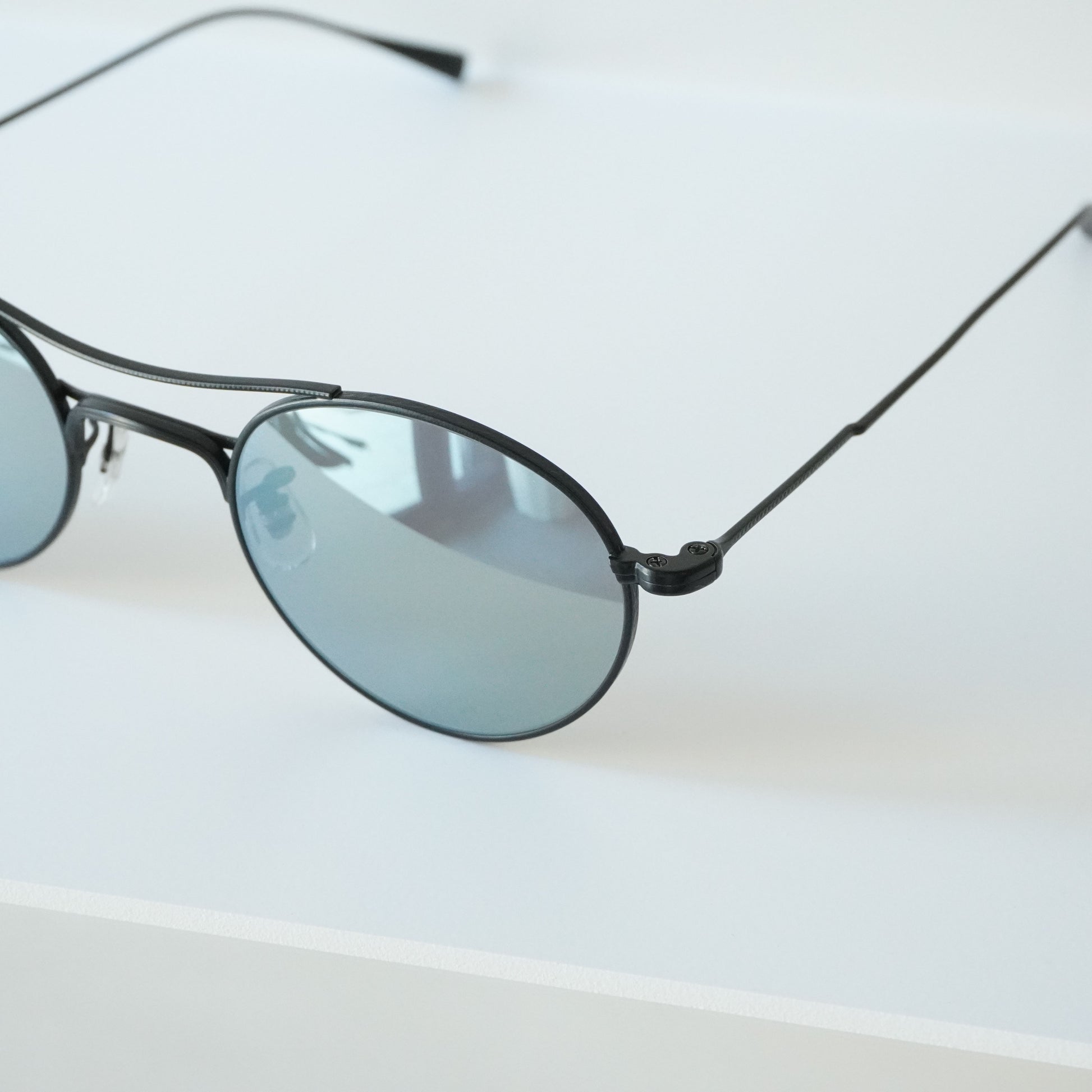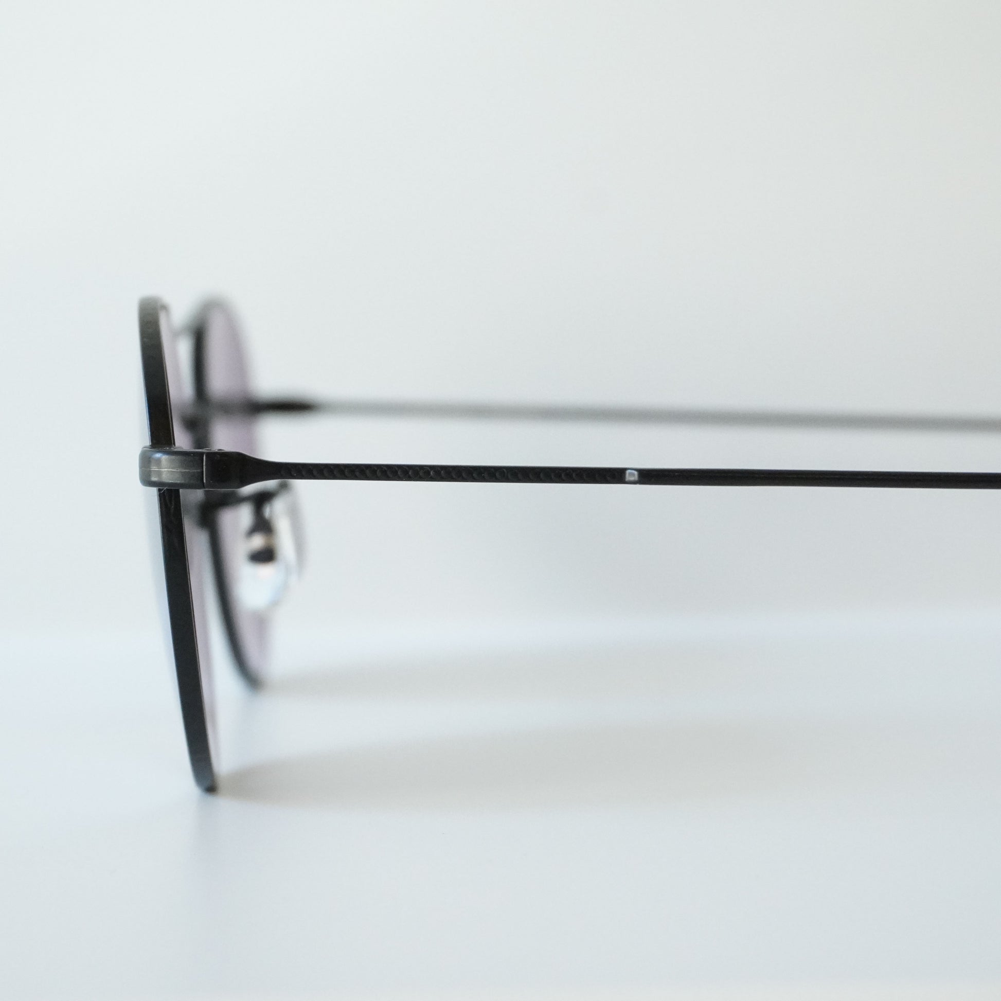 しのみに向かって段階的なフォルムのテンプルデザインは、光の屈折によって見えたメタルテンプルのイメージを具現化したもの。フロントを前後から補強する形状のWブリッジは30年代のアメリカンヴィンテージからインスパイアされたデザイン。