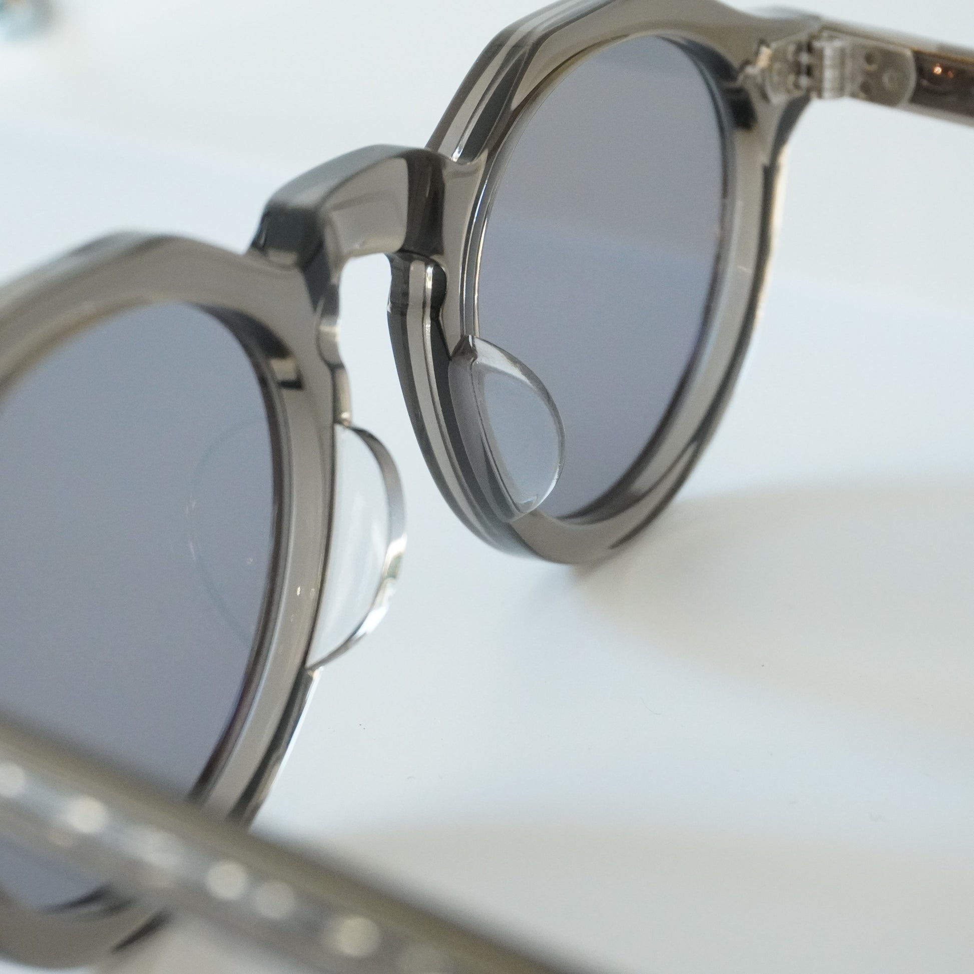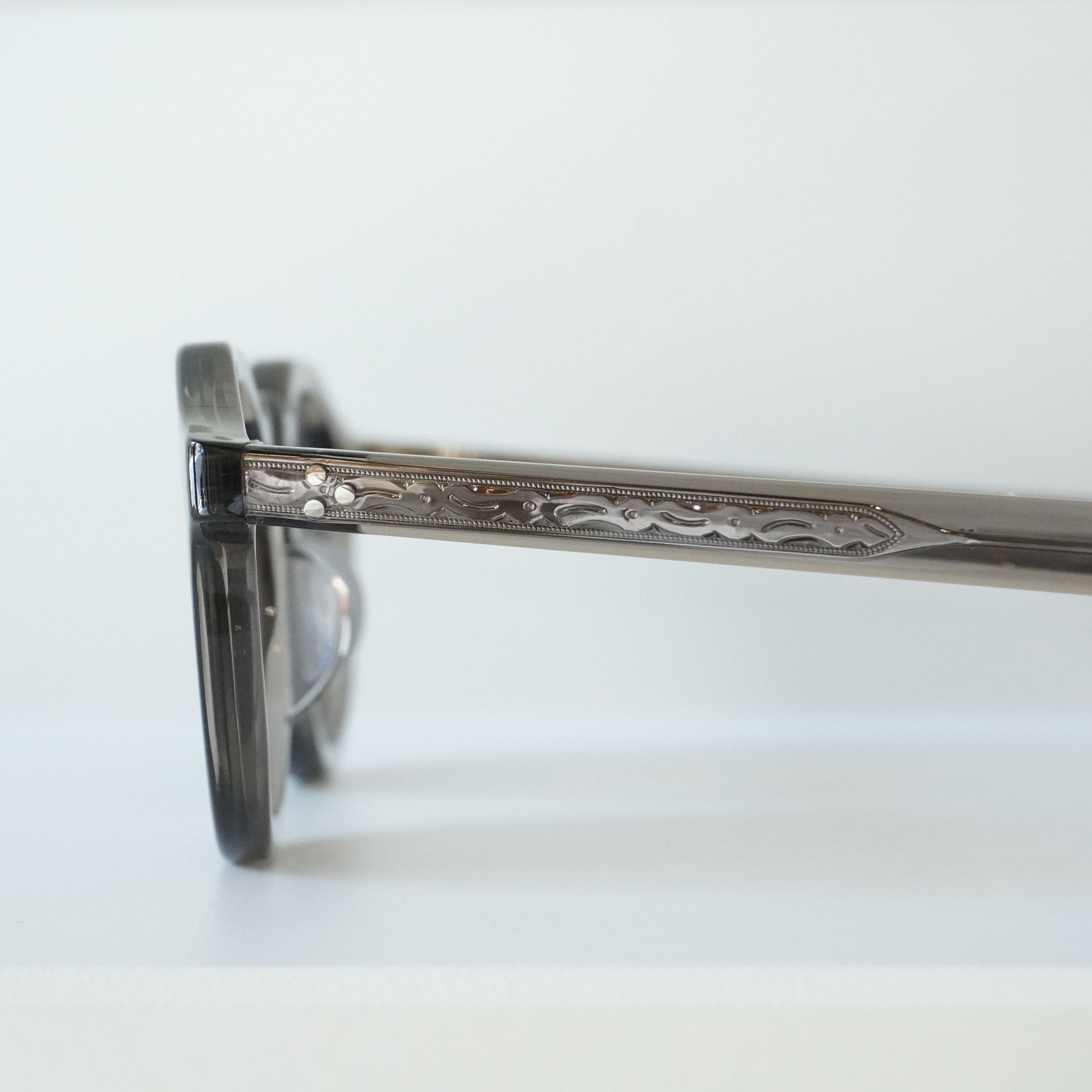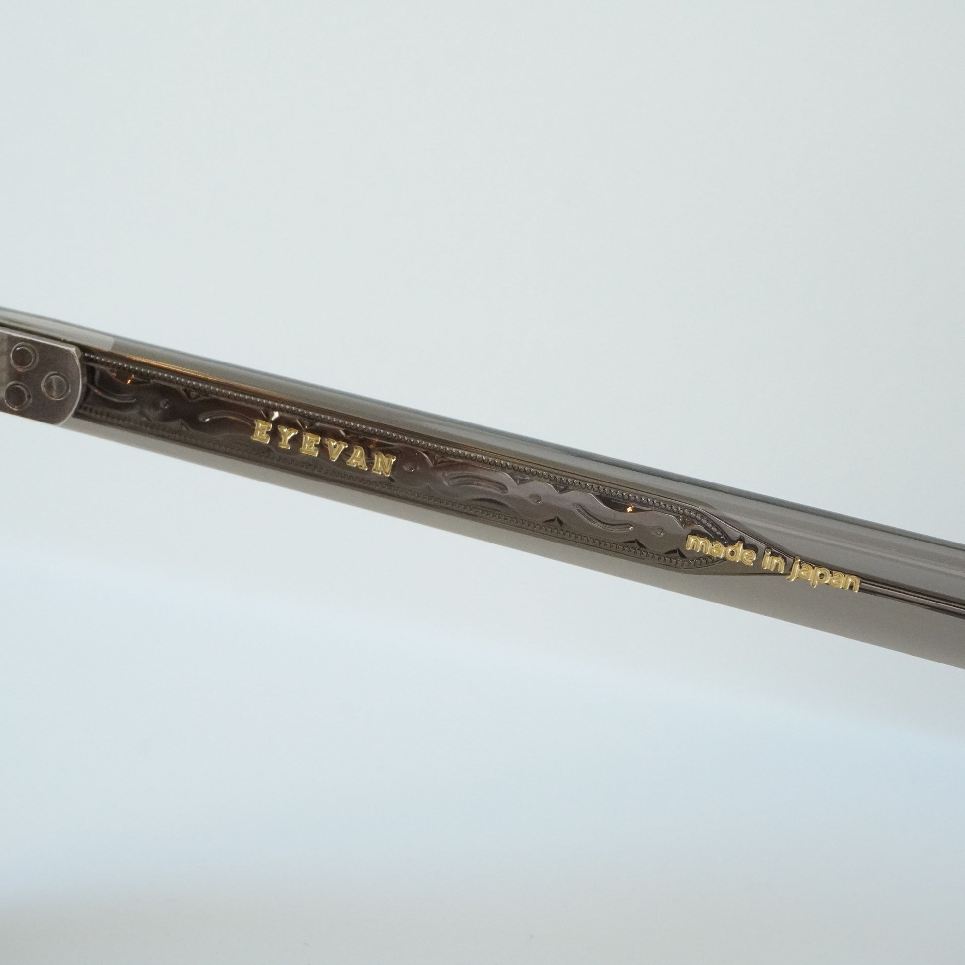 EYEVANが考えるフレンチヴィンテージを、エッヂのある肉厚なフロントと極太なワイドテンプルによって表現したモデル。フロント、テンプル丁番は60sのデザインをオリジナルで再現し、製法も置き丁番でのカシメ技法を採用。極力カシメのPINが見えないデザインにするなど細部まで忠実にヴィンテージの ディテールにこだわった。