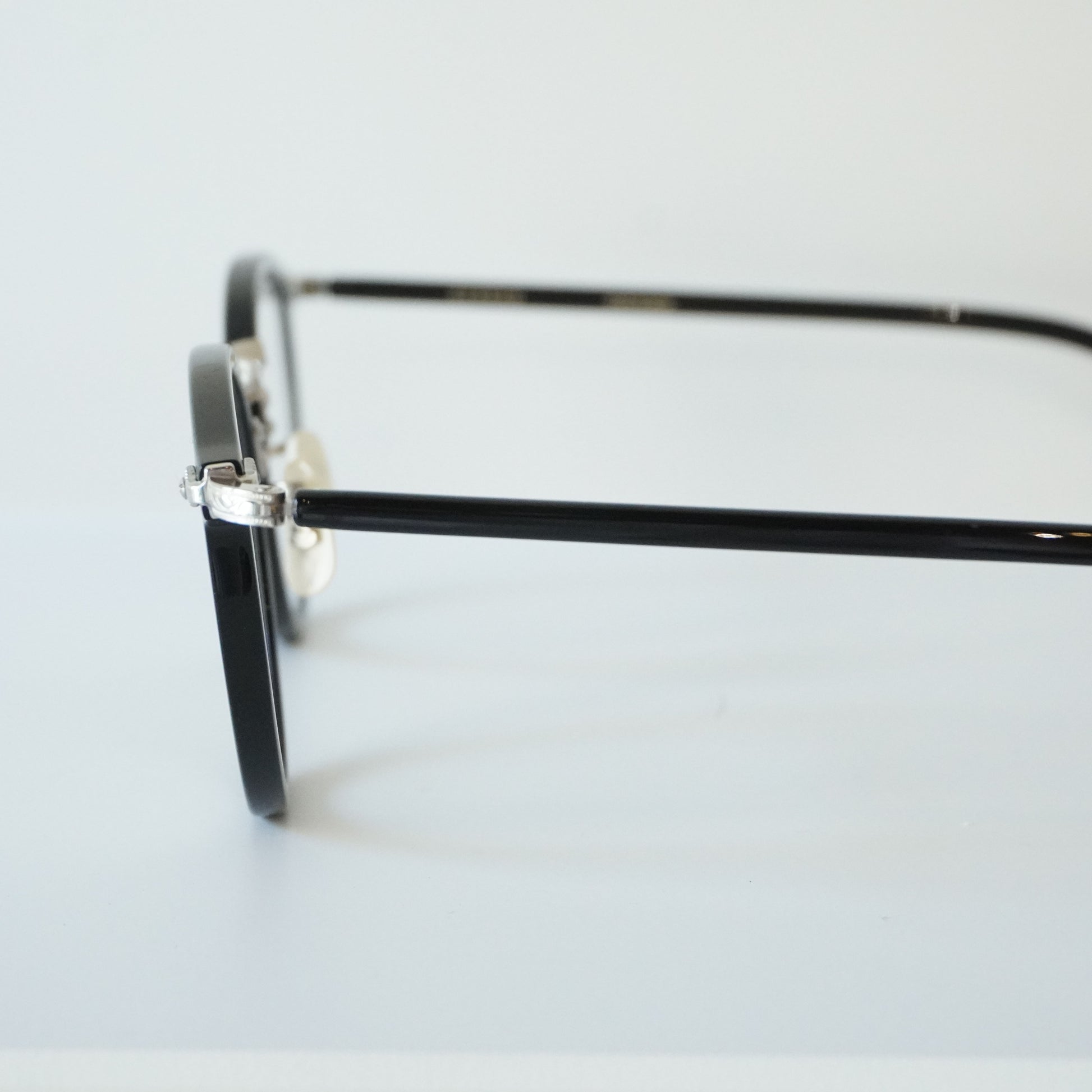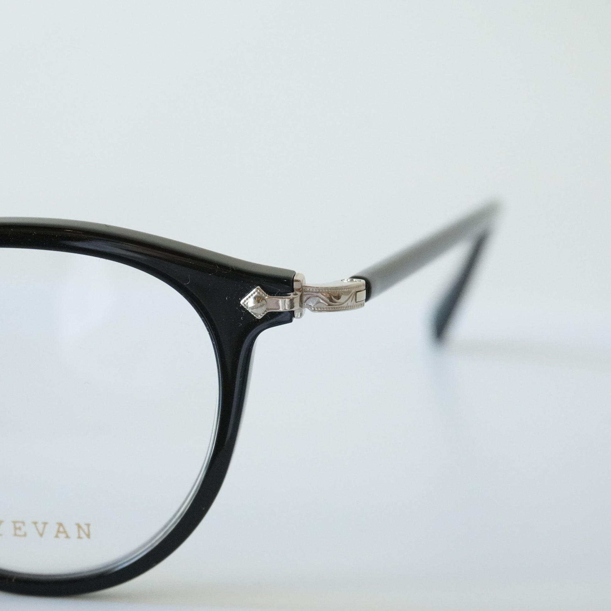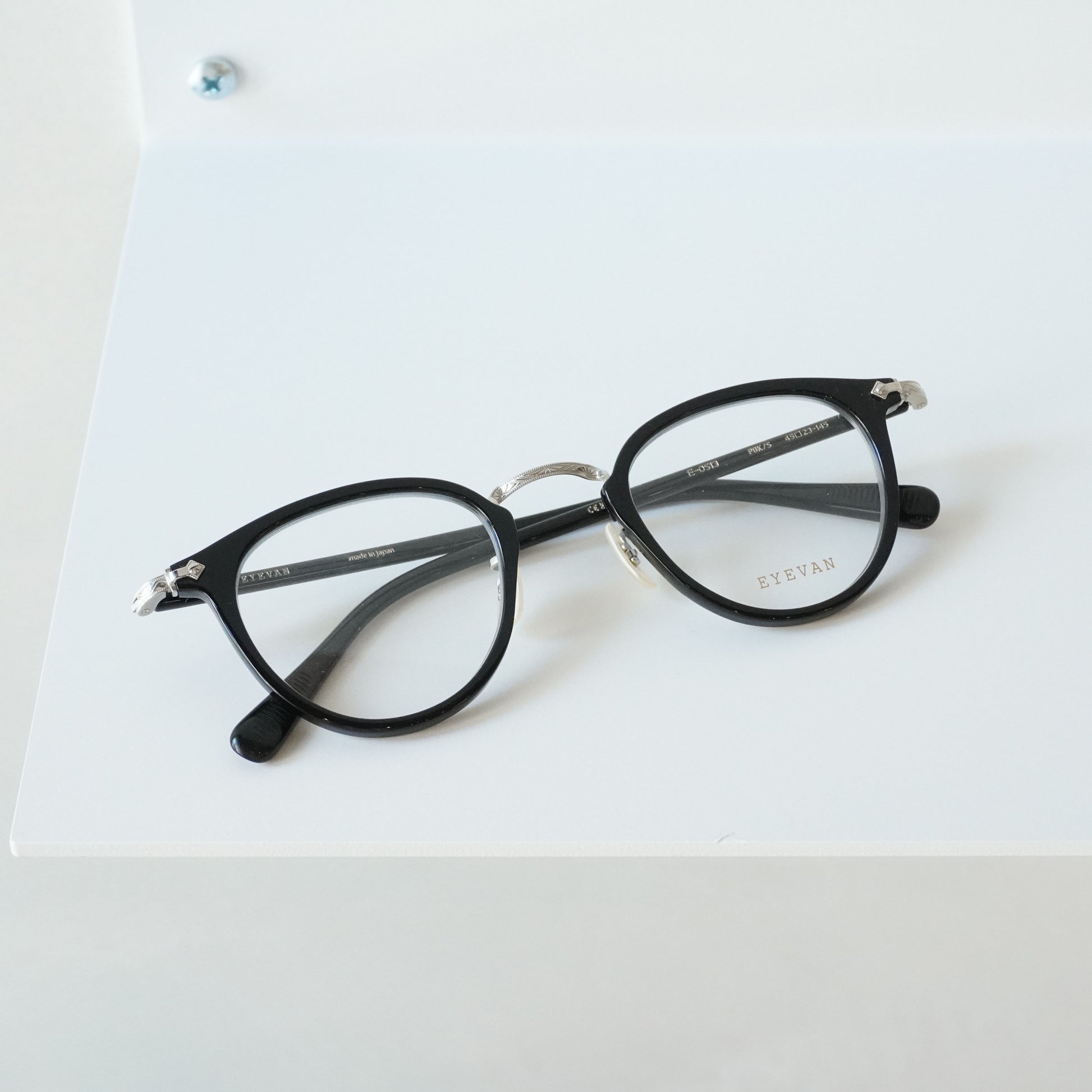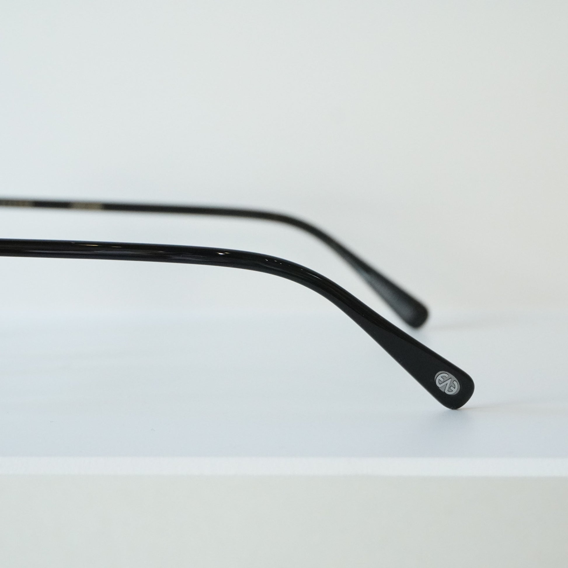 EYEVANのアイコンとなったE-500番台シリーズのE-0511につづくコンビネーションフレーム。ブリッジにはクリングス一体型のアーチバックブリッジ、テンプルは芯にβチタンを用いることによりかけ心地にも配慮した長モダンタイプ。フロントは、30年代のアメリカンヴィンテージの上リムがややフラットなパントシェイプをEYEVANらしいデザインに仕上げた。