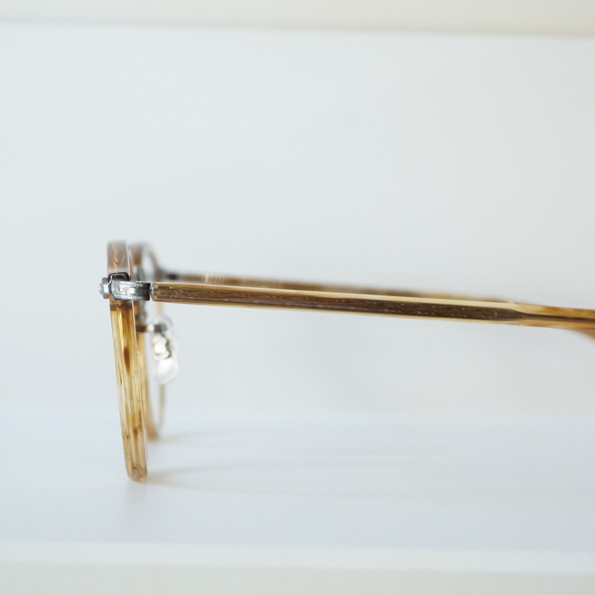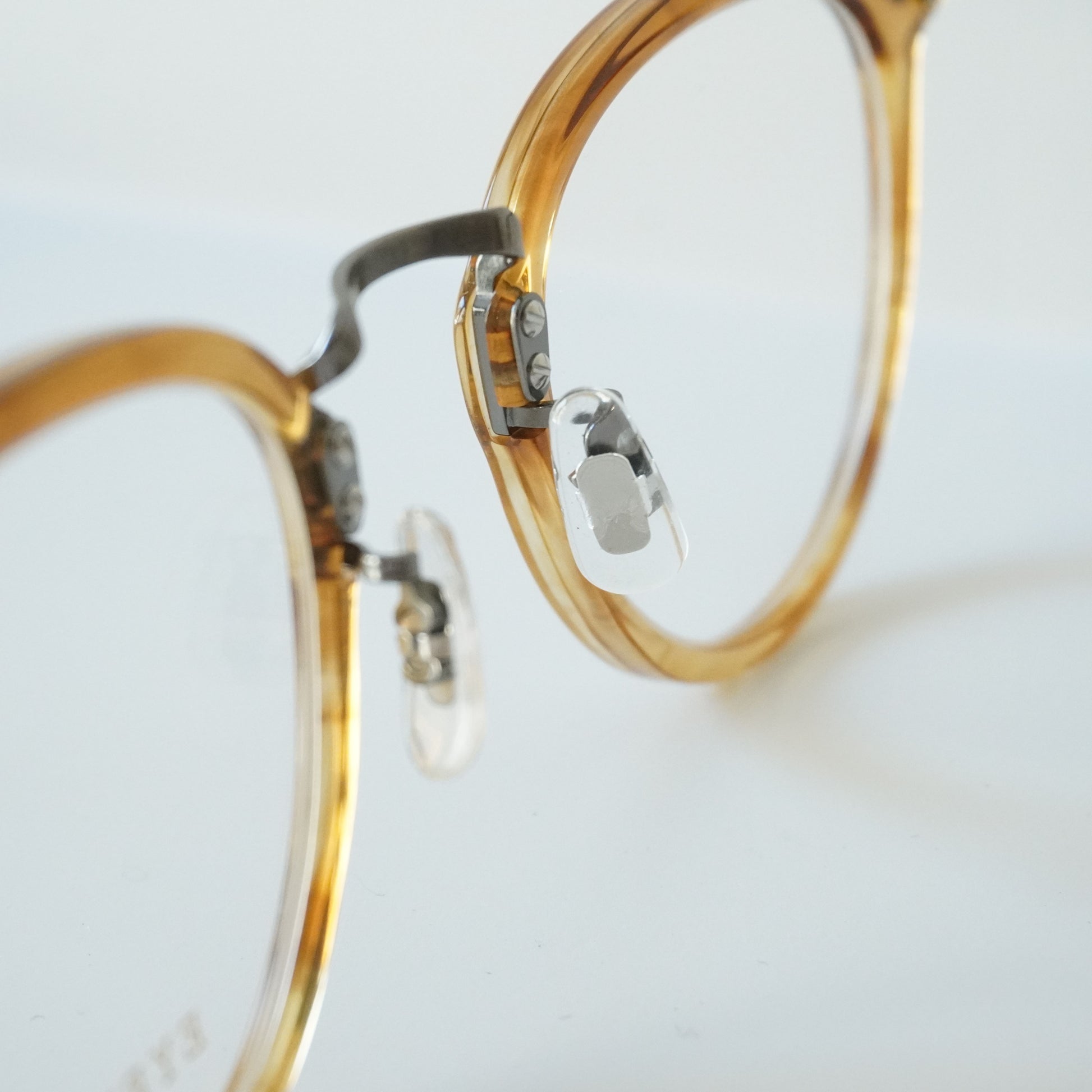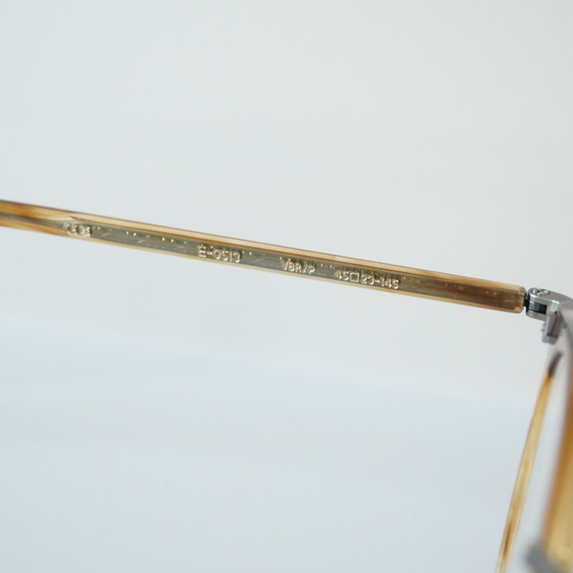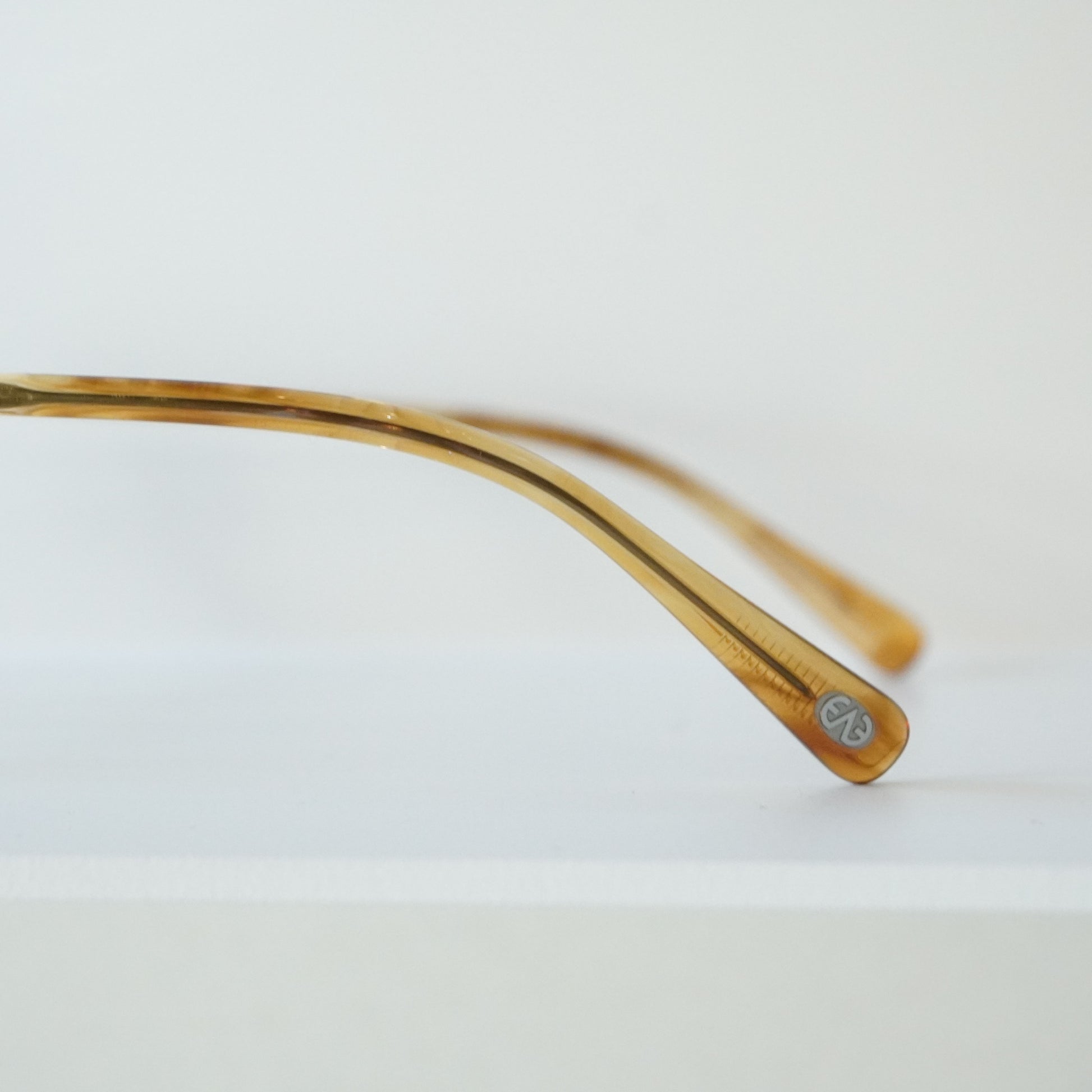 EYEVANのアイコンとなったE-500番台シリーズのE-0511につづくコンビネーションフレーム。ブリッジにはクリングス一体型のアーチバックブリッジ、テンプルは芯にβチタンを用いることによりかけ心地にも配慮した長モダンタイプ。フロントは、30年代のアメリカンヴィンテージの上リムがややフラットなパントシェイプをEYEVANらしいデザインに仕上げた。