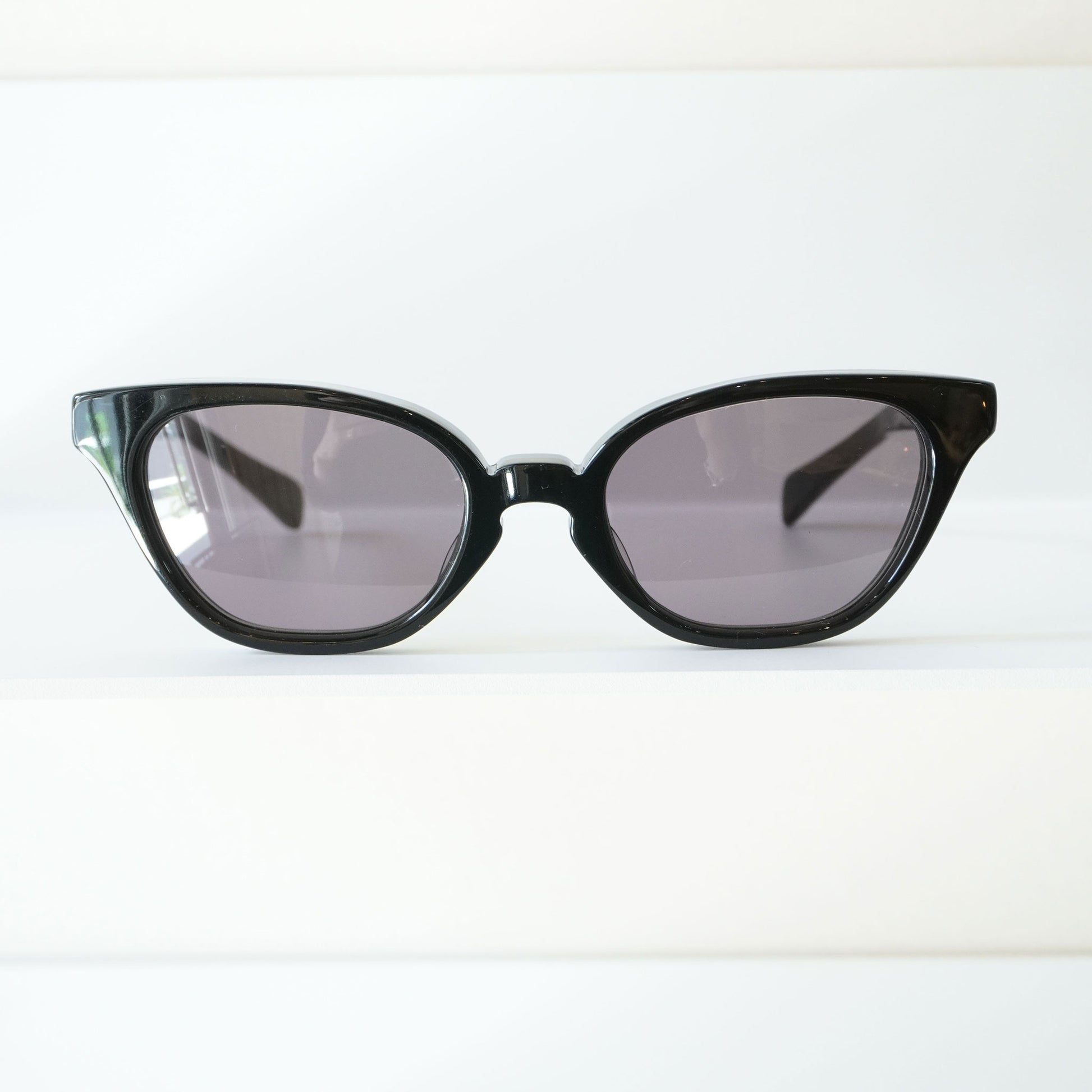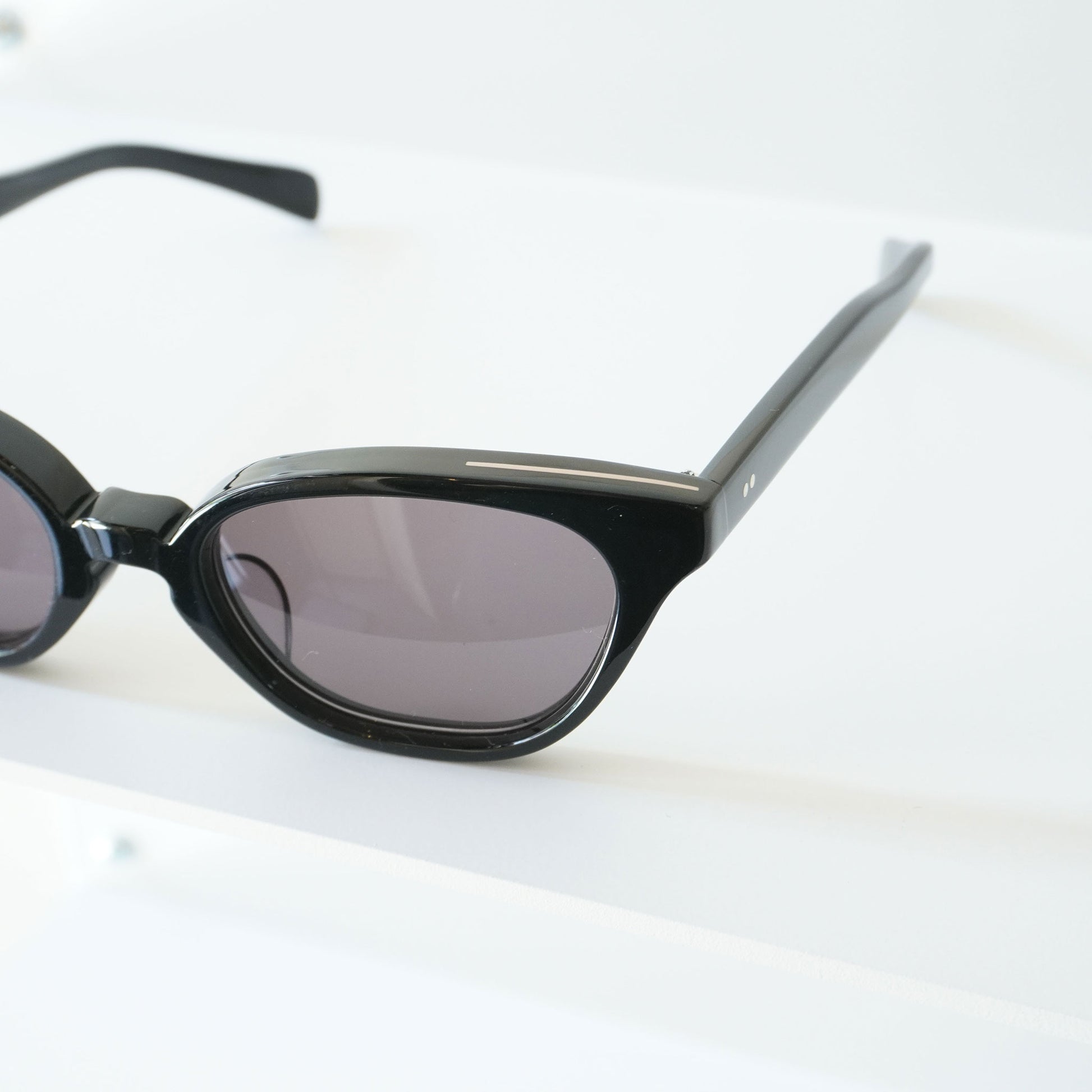 モード感のあるキャットアイフレーム。フェミニンにならなず掛けられる人気モデルです。