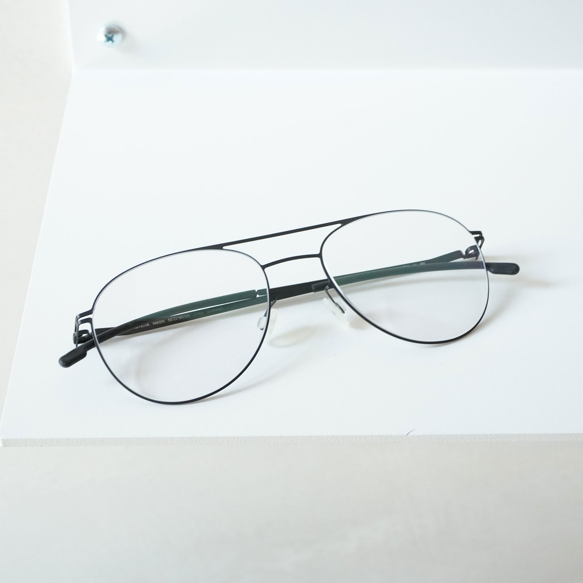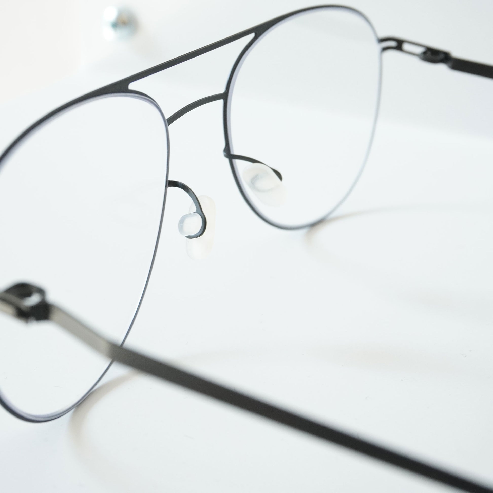 小ぶりなティアドロップフレーム。軽量なステンレス素材と特許を取得したスパイラルヒンジ、機能性と美しさを追求したMYKITAの人気モデルです。男女問わずご使用いただけるサイズ感になっています。