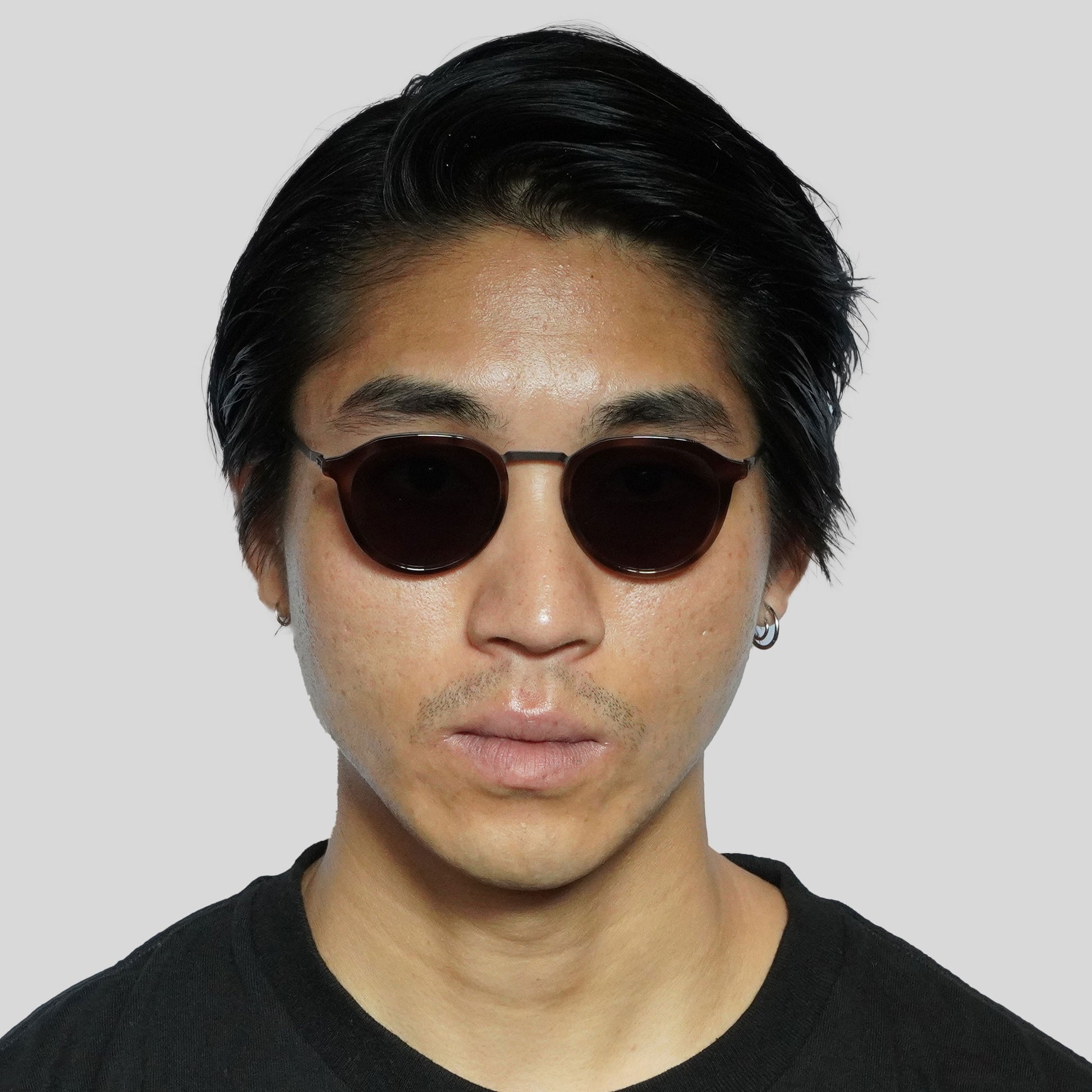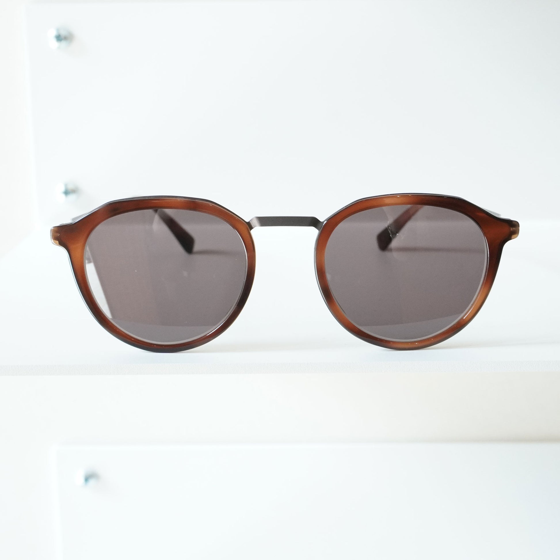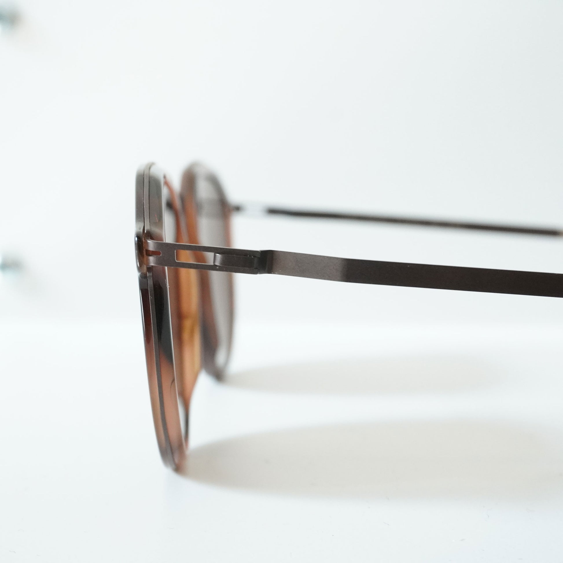 シンプルでやや小ぶりな掛けやすいデザインのサングラスです。落ち着きのあるカラーリング魅力的です。