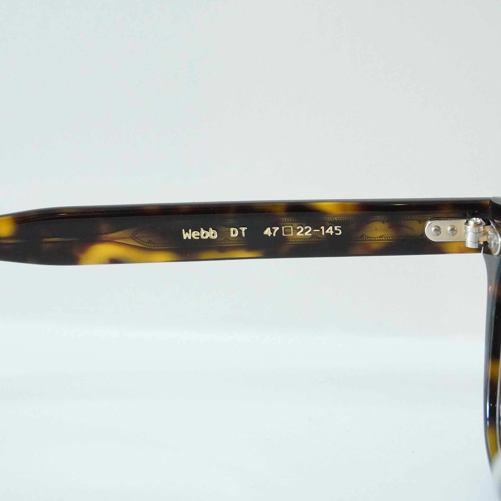 ボストンウェリントンフロントに、オリジナルのカシメ飾り丁番を採用したプラスチックフレーム。 テンプル芯には、クラシックカーのパーツからインスパイアされた柄を表裏に彫り込んだオリジナル芯を採用しています。