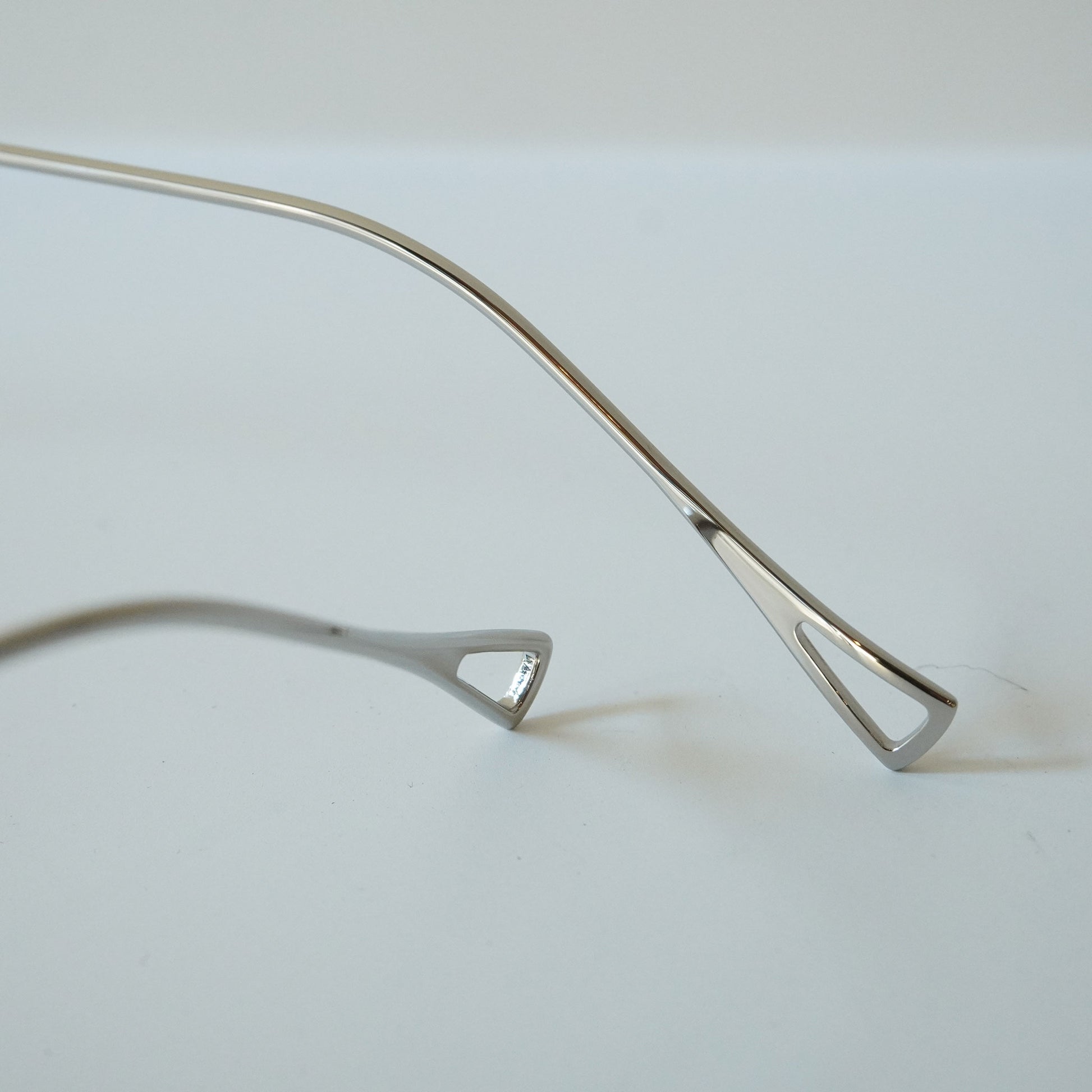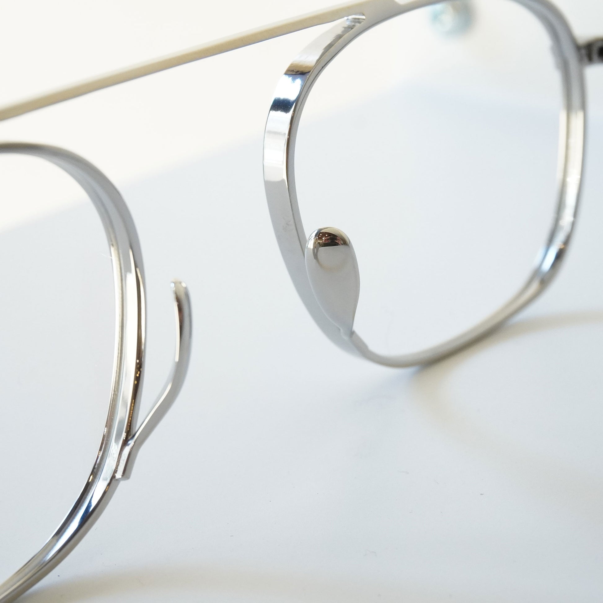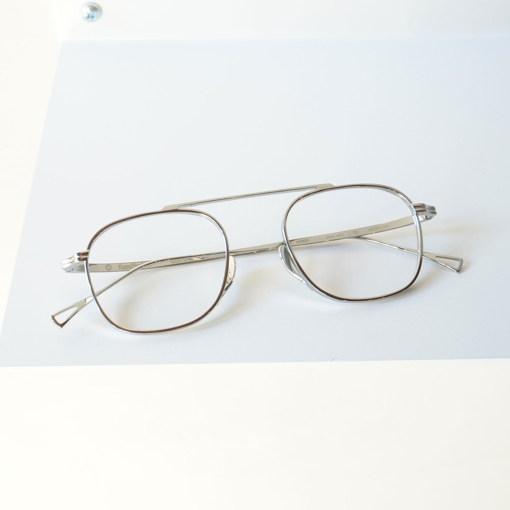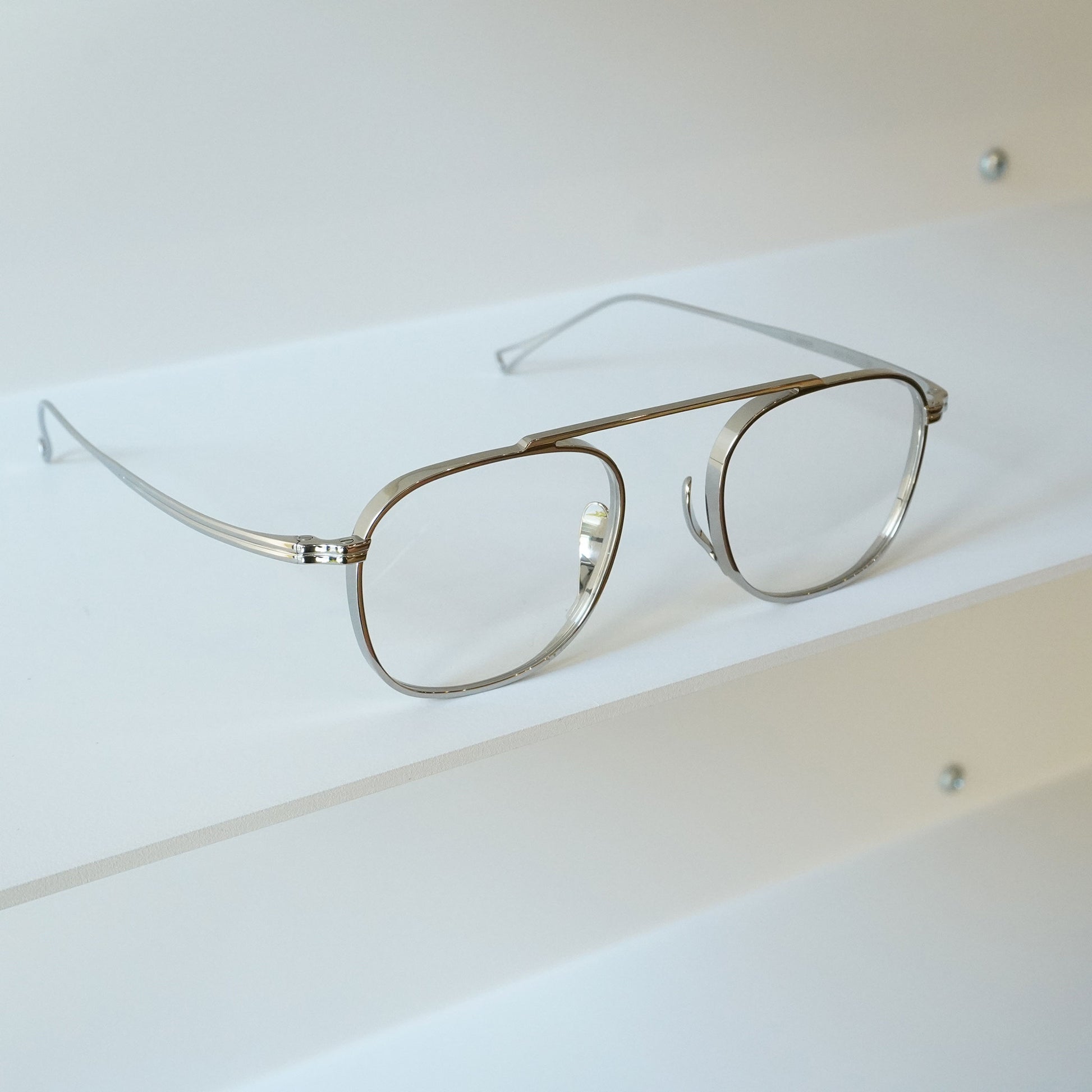 一体型のトップバーが特徴のモダンなメガネです。バランスのいい四角めなシェイプ、顔馴染みのいいサイズ感、オールチタンで製作された軽量なモデルです。鼻パッドは美しさと機能性を追求した下から伸び上がる独自のデザインです。