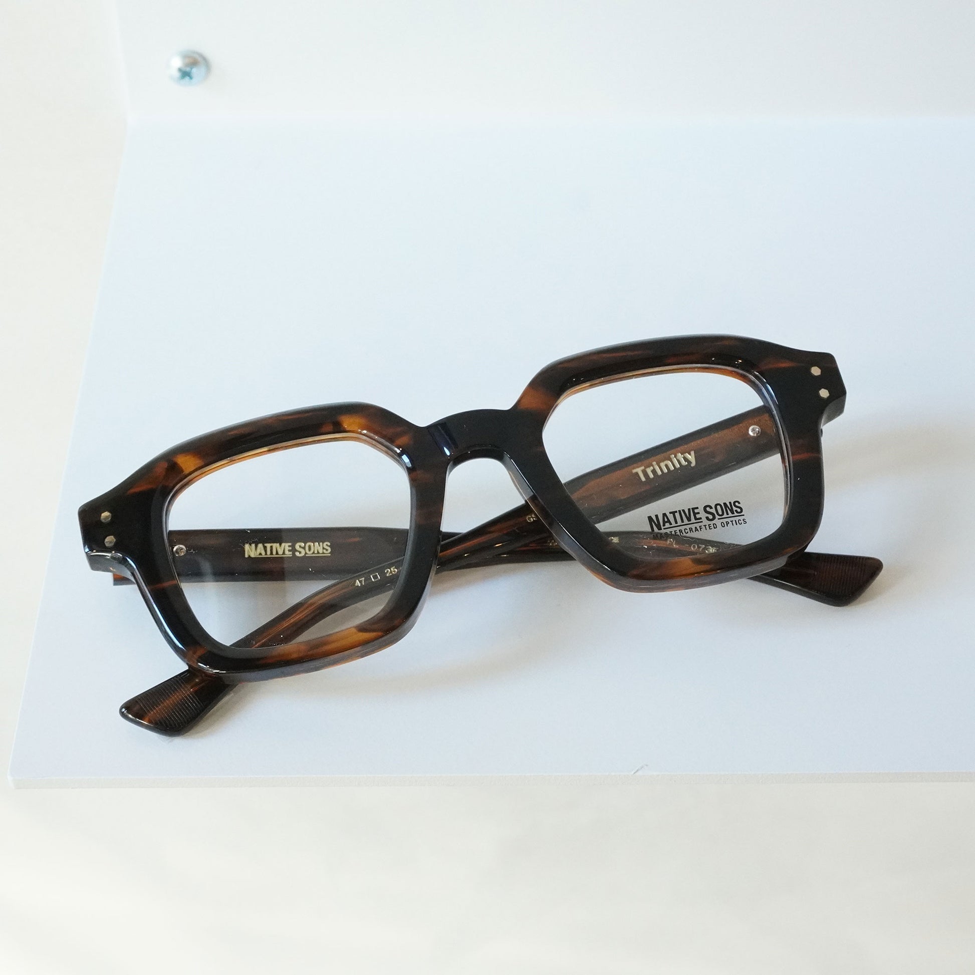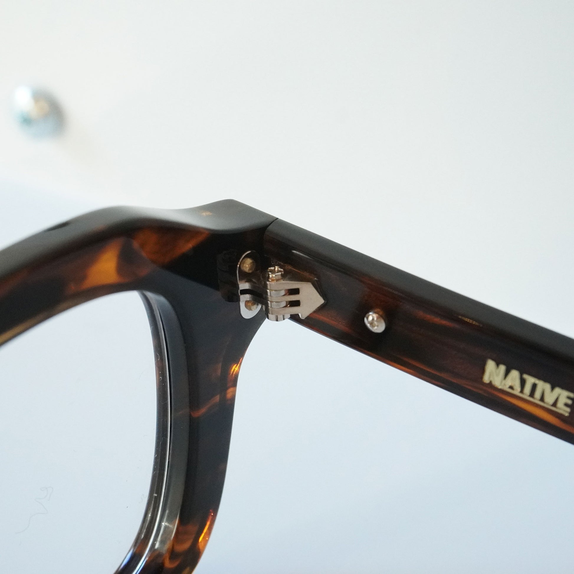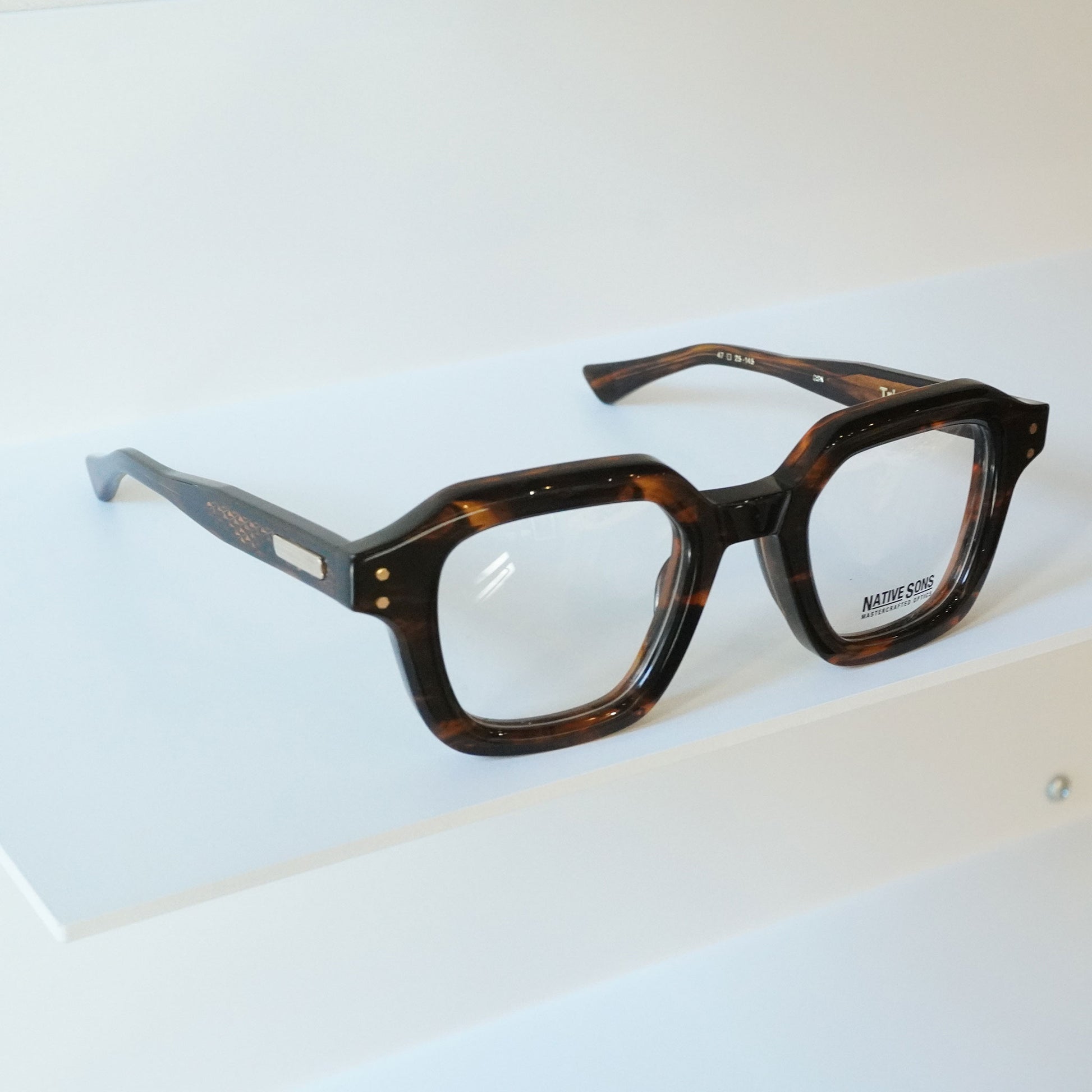ネイティブサンズらしい存在感のあるスクエアモデル、約6mmある厚みが特徴的です。メガネでもサングラスでもご使用いただけます。