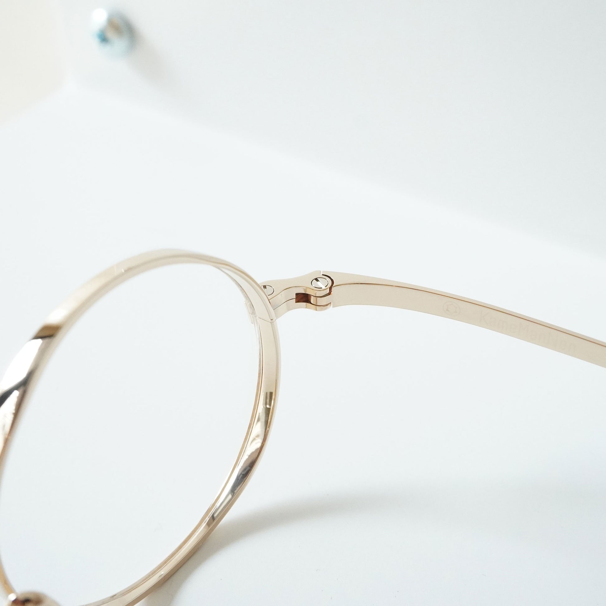 KameManNenを代表するモデル、シンプルで洗練された丸眼鏡です。リムは厚みがあり横顔の印象を格上げしてくれます。鼻パッドは美しさと機能性を追求した下から伸び上がる形状。オールチタンを採用し軽量で掛け心地のいいモデルです。