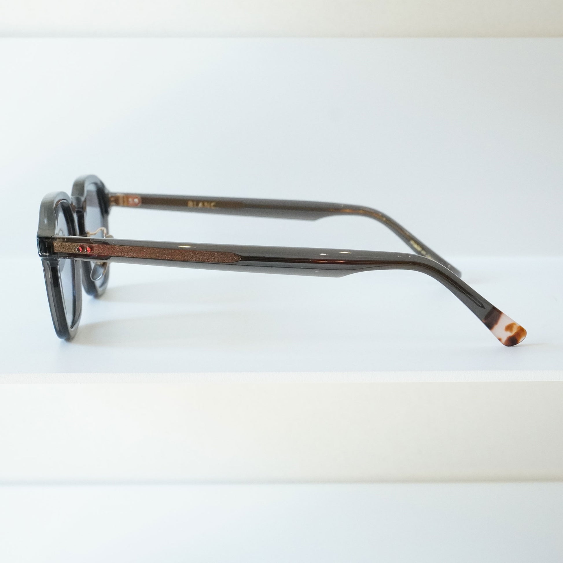 眼鏡の製造において国内 90% 以上のシェアを誇る福井県鯖江市で、ひとつひとつのパーツの精度にこだわりながら日本の職人による細やかな手作業によって生産されている。
