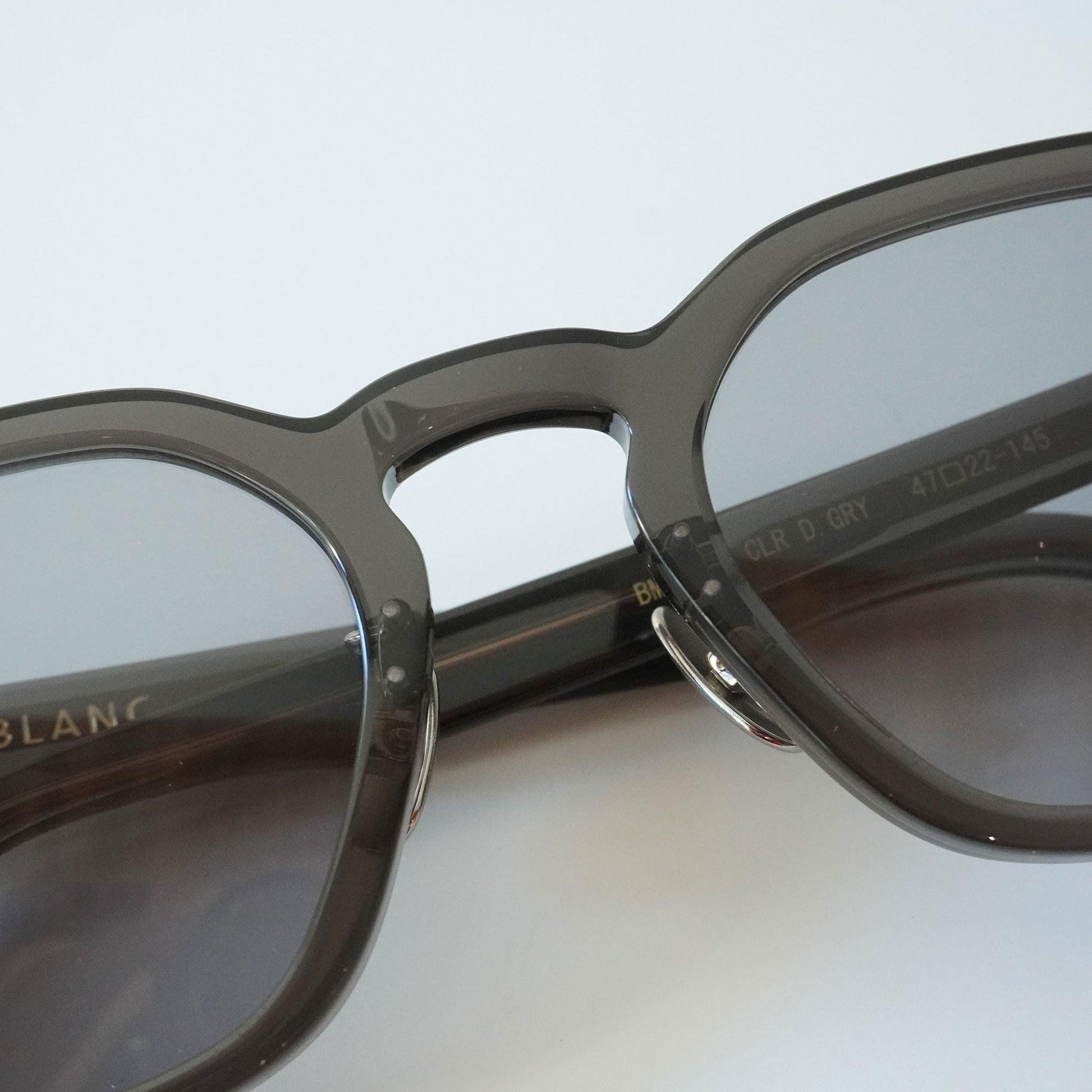 BLANC は仏語で " 白 " を表し、何色にでも染まることができるピュアでシンプルなイメージと、絵画で「光」・「光沢」などを表現するときに白い絵の具を使うところから名付けられた。ブランドシグニチャーは左テンプルエンドのサイン。