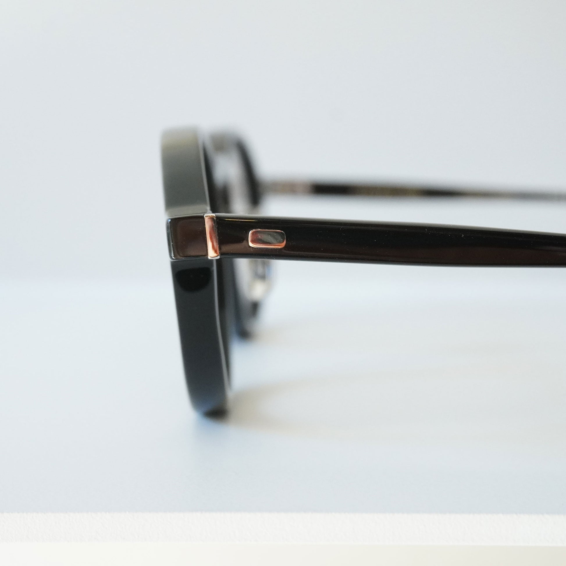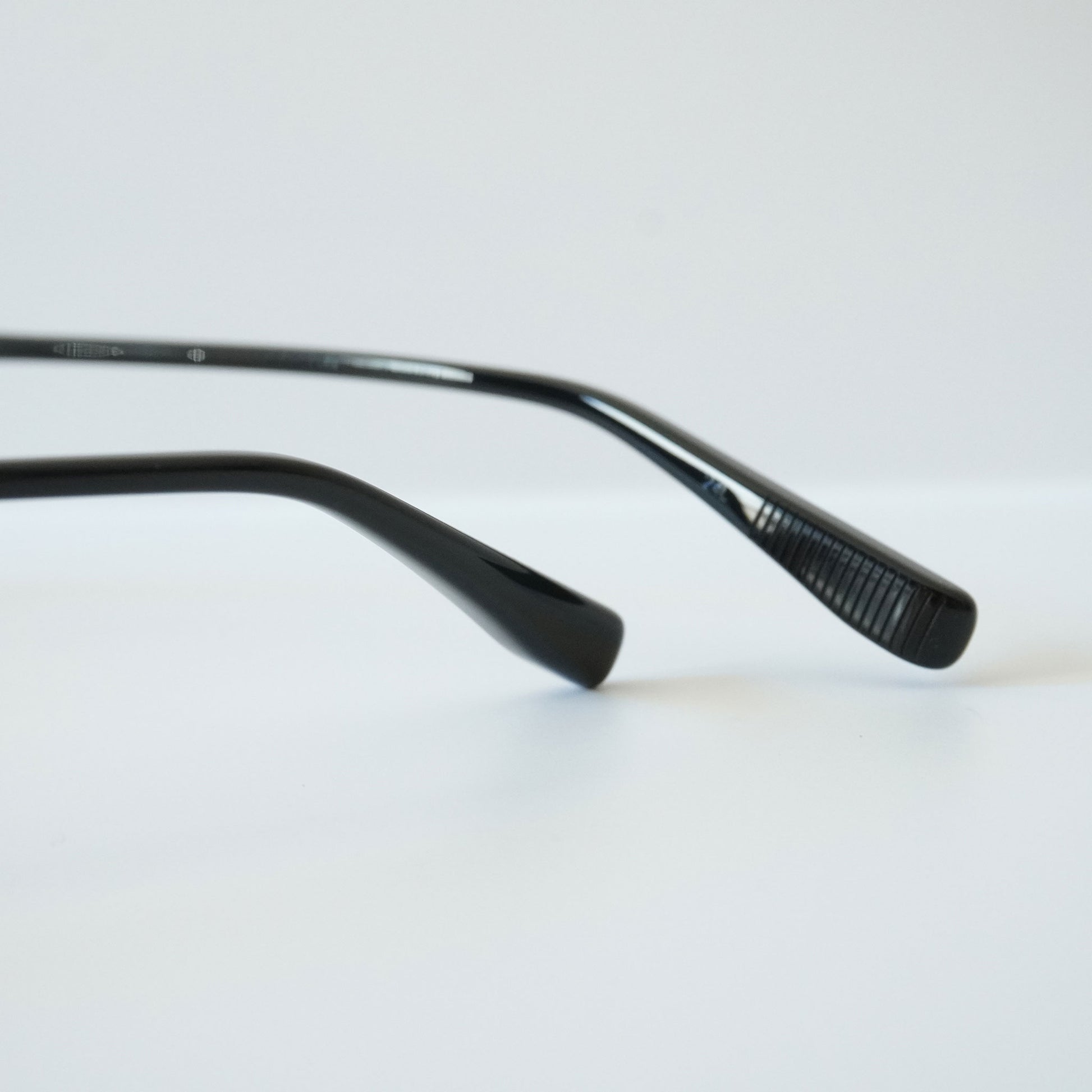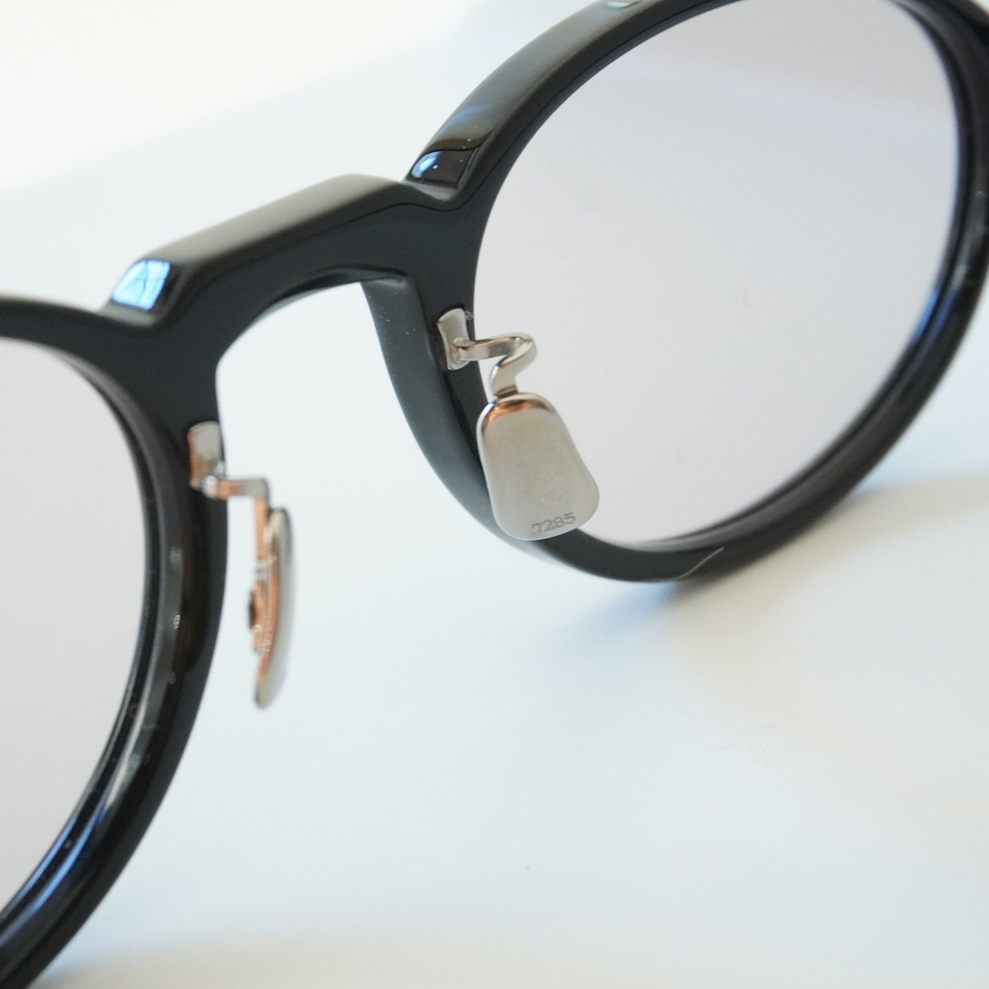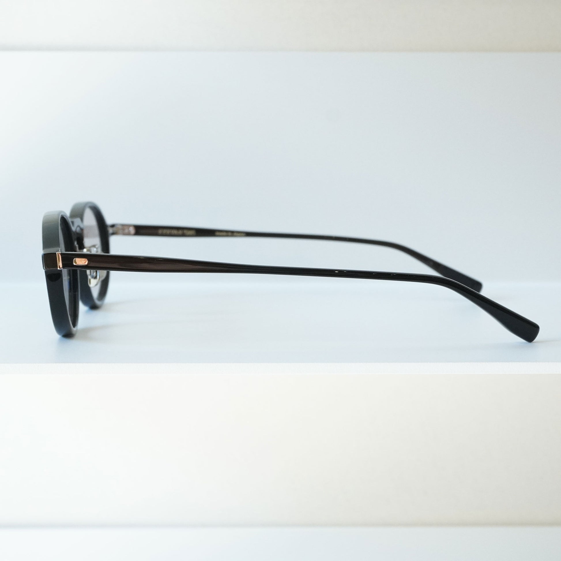 2000年代初頭に散見されたようなナローなオーバルシェイプのサングラス。24SSモデル[197]のプラスチックバージョンというイメージでデザインした。24AWで開発した合口メタルの1PINカシメ構造を採用。このモデルのために作製した洋白丁番 をプラスチックフロント、テンプルと一緒に磨き上げ、綺麗に合口を合わせたあと、低温メッキでメタル部分に貴金属の色を着けるという伝統的かつレアな製法を用いている。サングラスは色味の調合を金属の粒子などを混ぜ合わせて調色し、溶解後に一枚ずつ成形して製作する日本製ガラスレンズのオリジナル“アイヴァンカーブレンズ”を採用。
