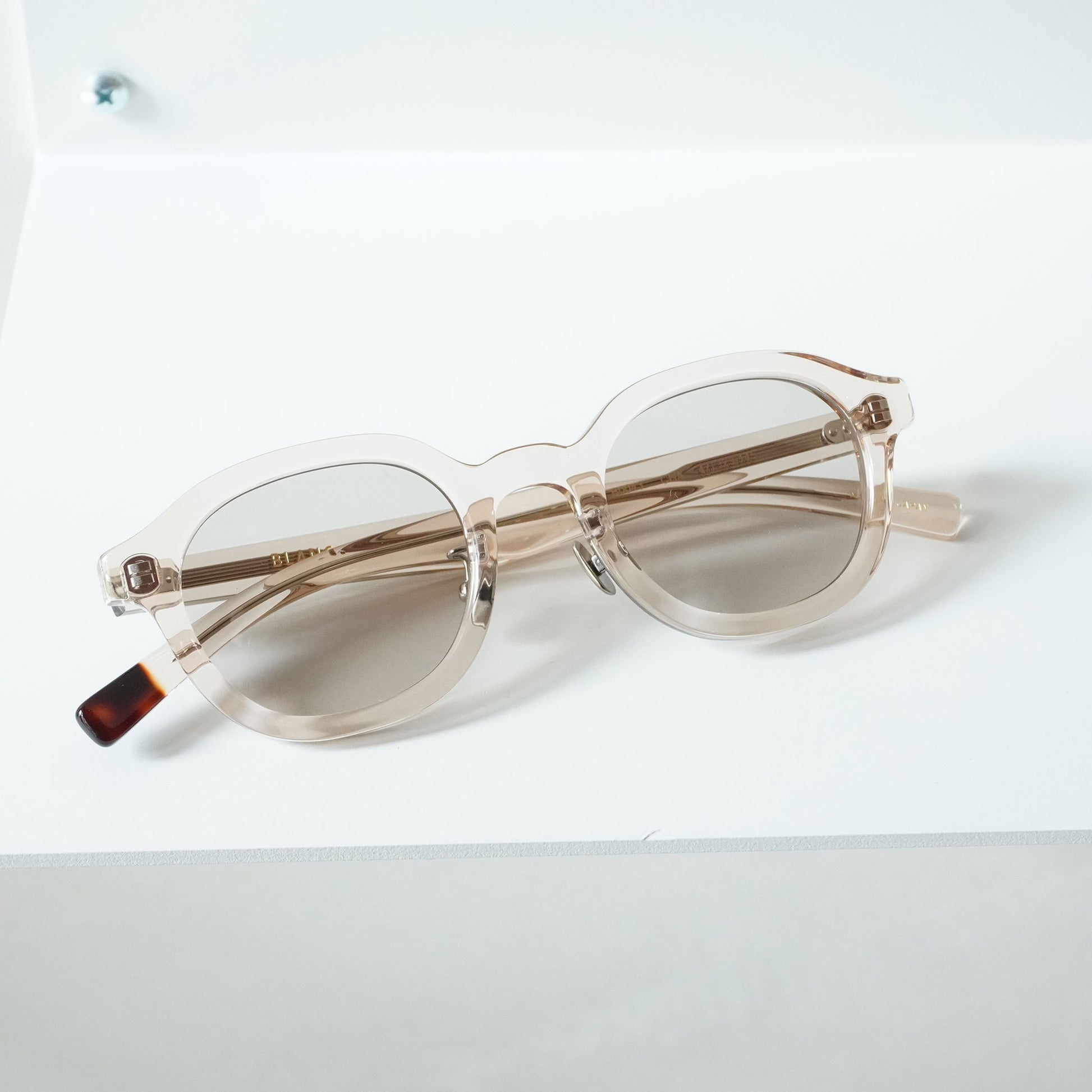 眼鏡の製造において国内 90% 以上のシェアを誇る福井県鯖江市で、ひとつひとつのパーツの精度にこだわりながら日本の職人による細やかな手作業によって生産されている。