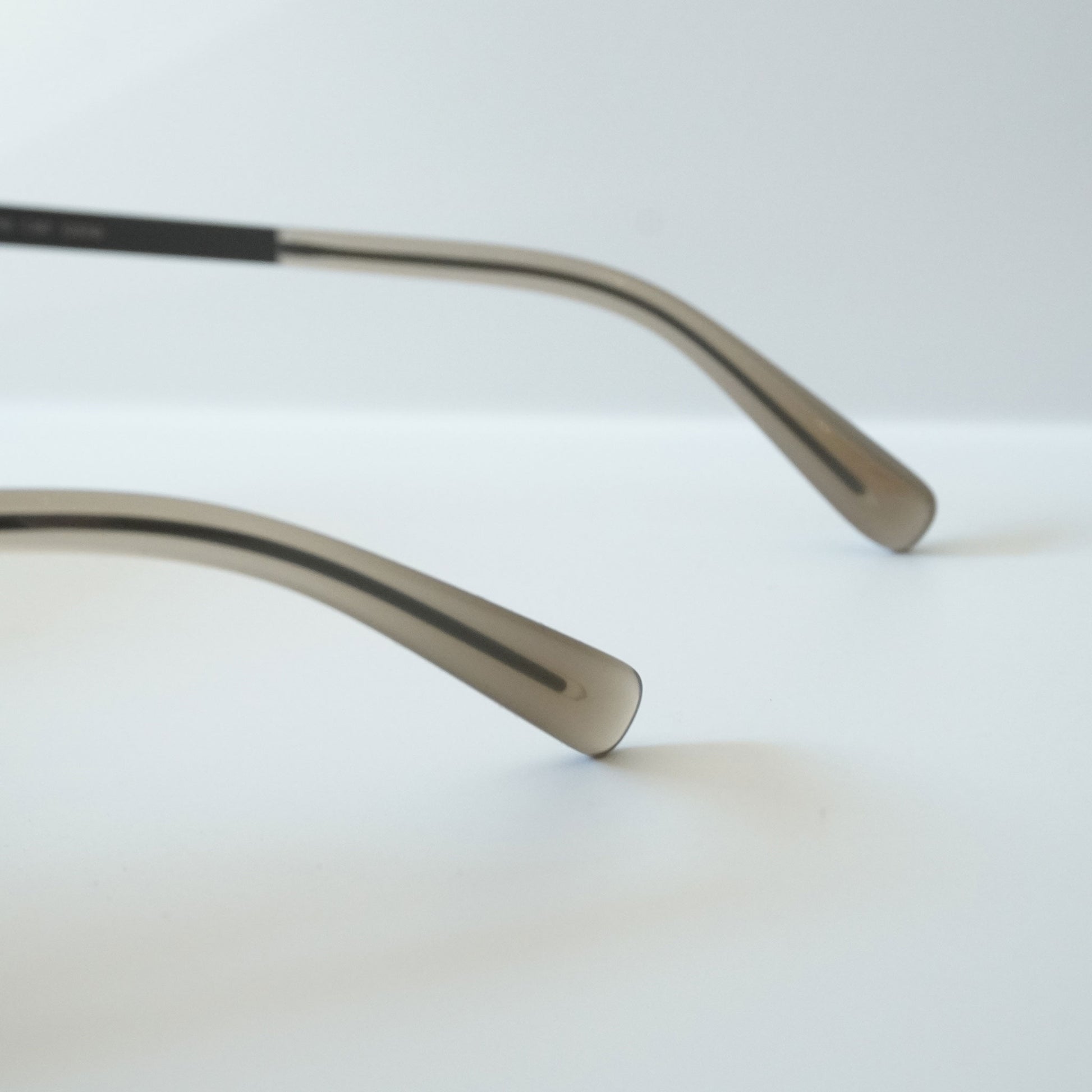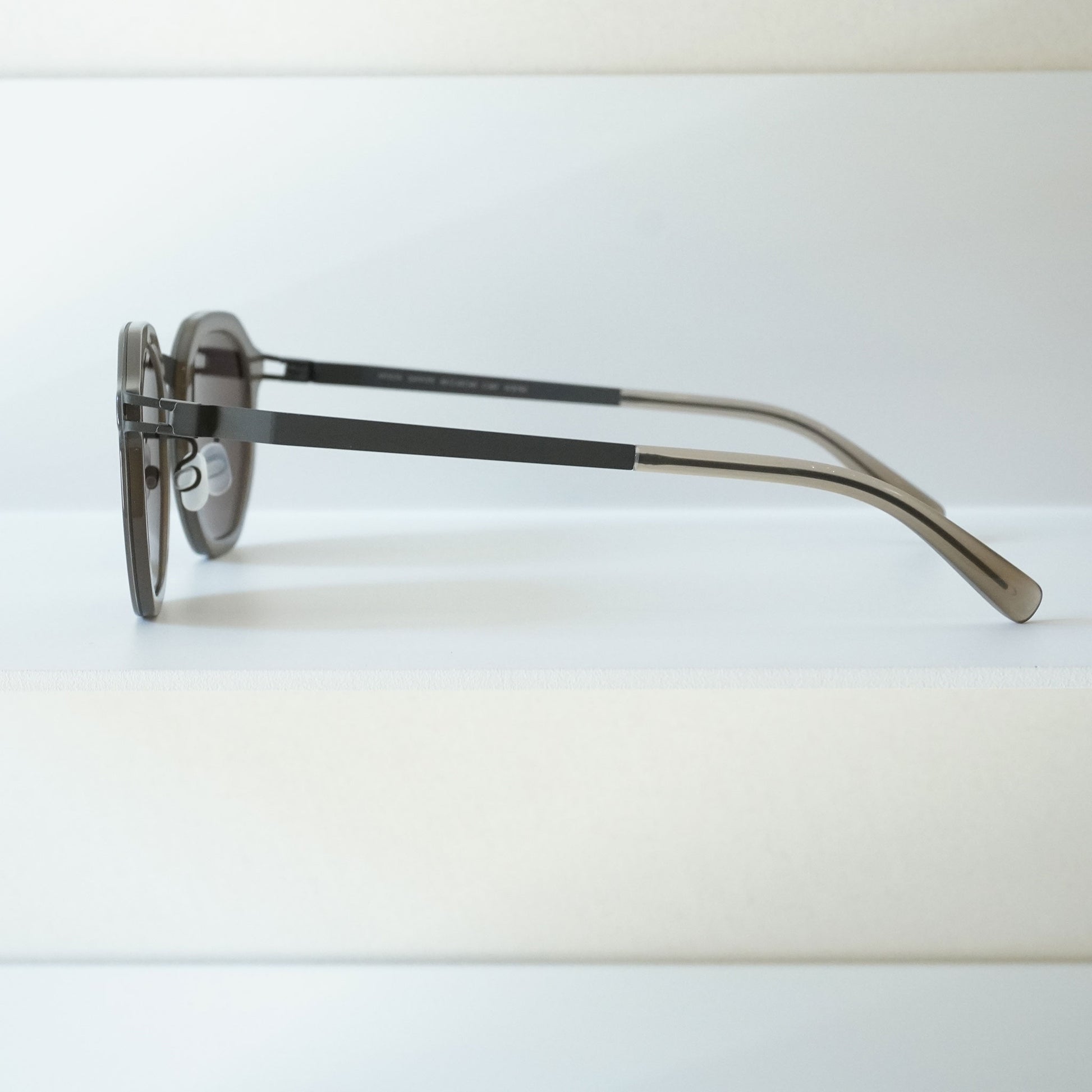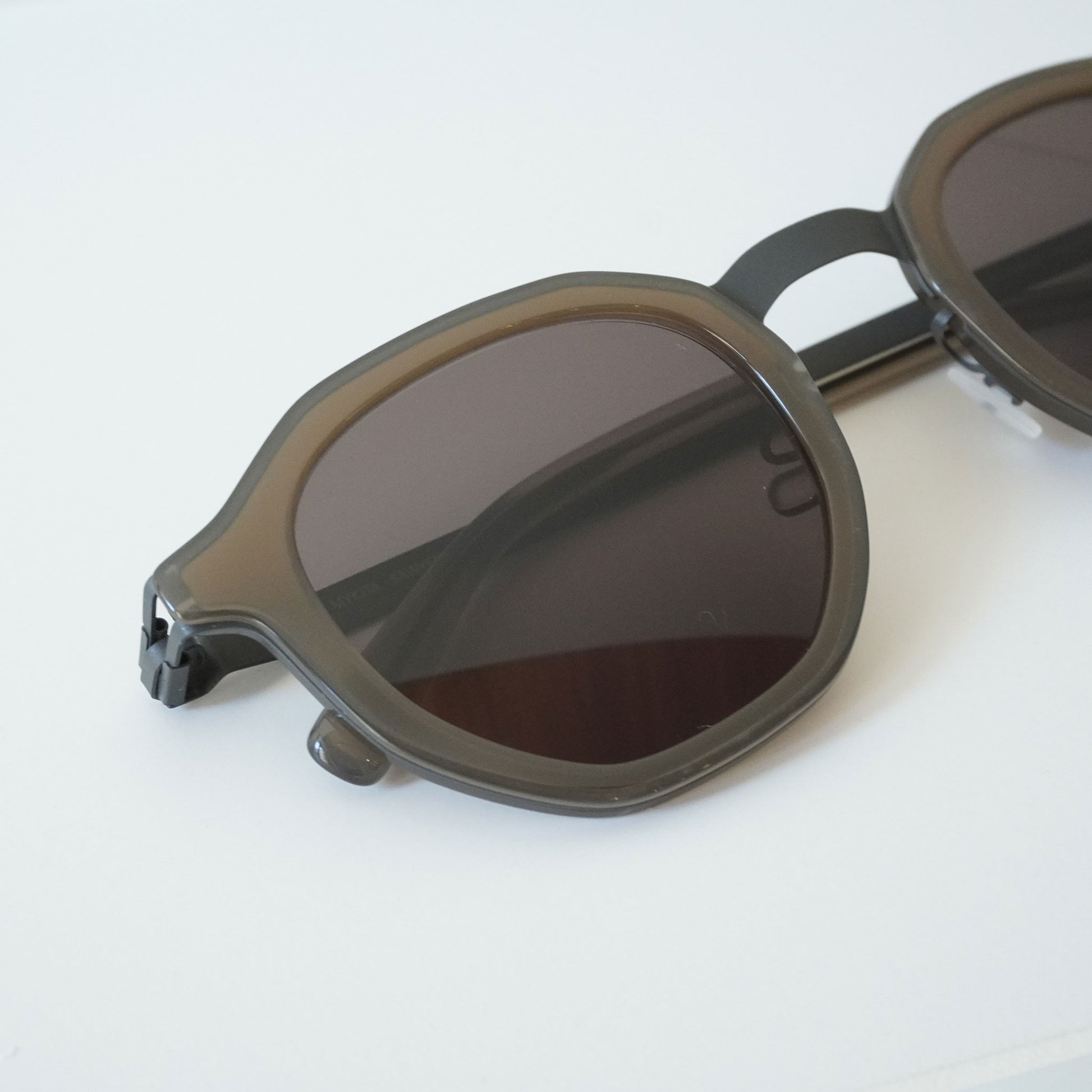 多角形のコンビネーションサングラスです。シンプルなデザインと軽量なかけ心地が男女問わず人気があります。