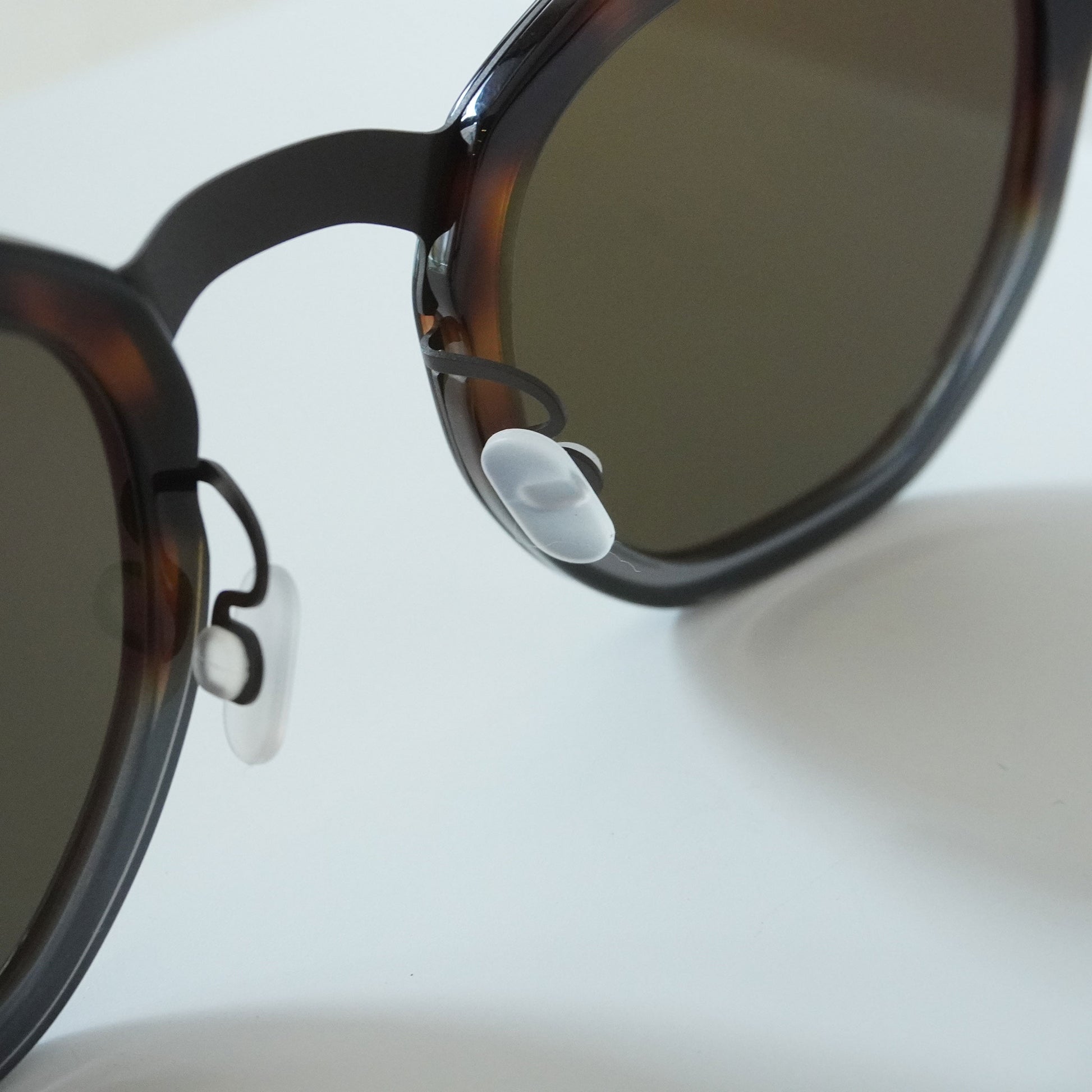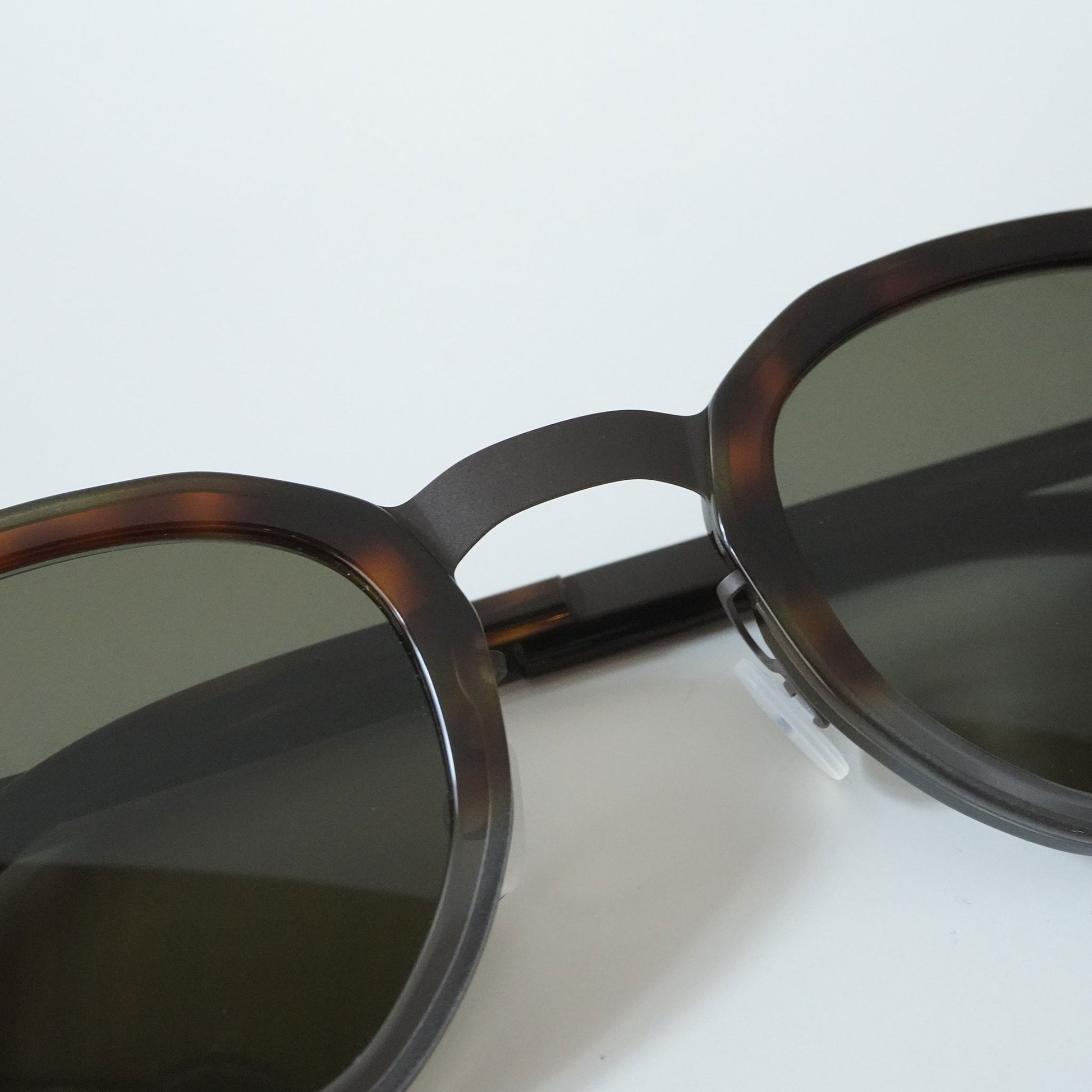 多角形のコンビネーションサングラスです。シンプルなデザインと軽量なかけ心地が男女問わず人気があります。