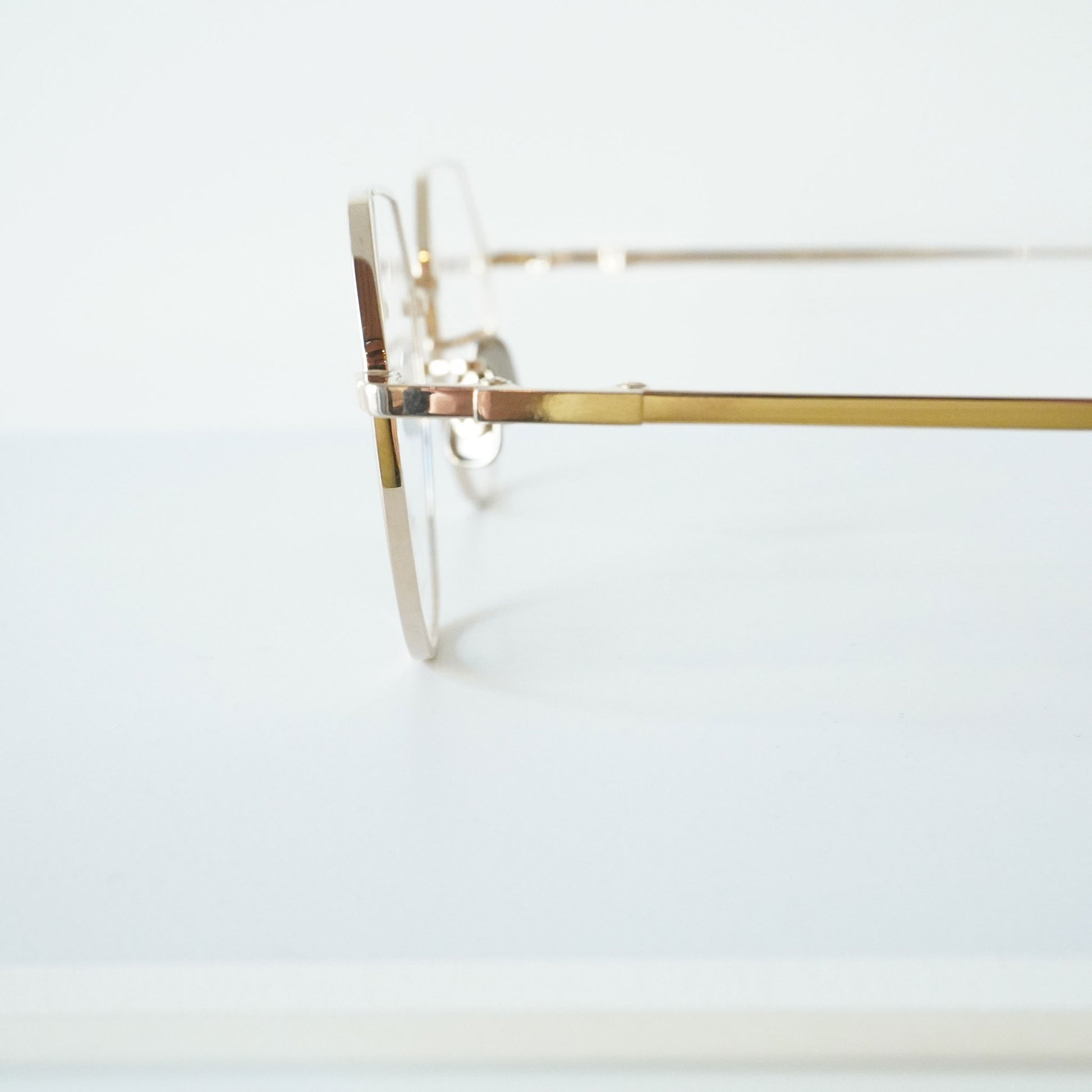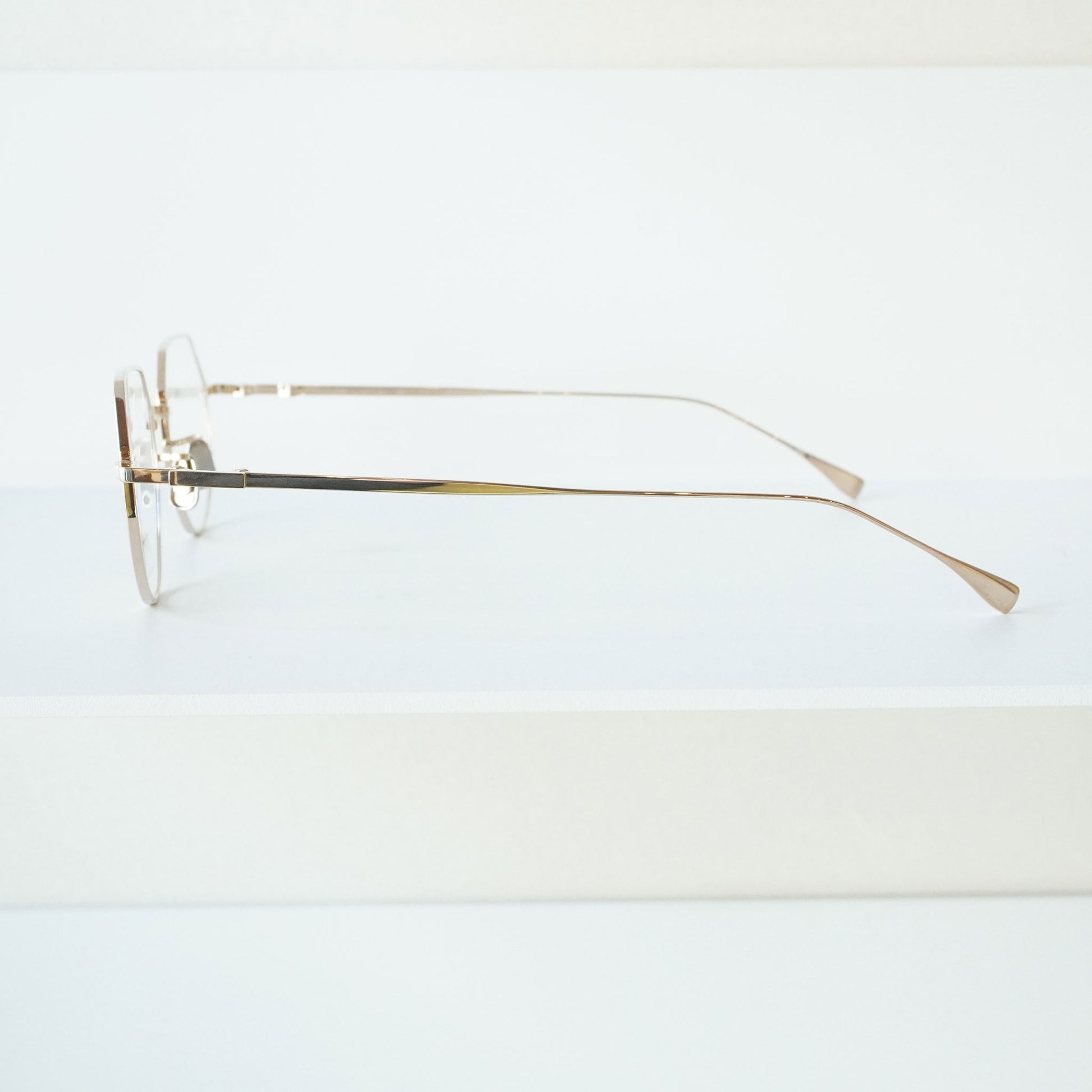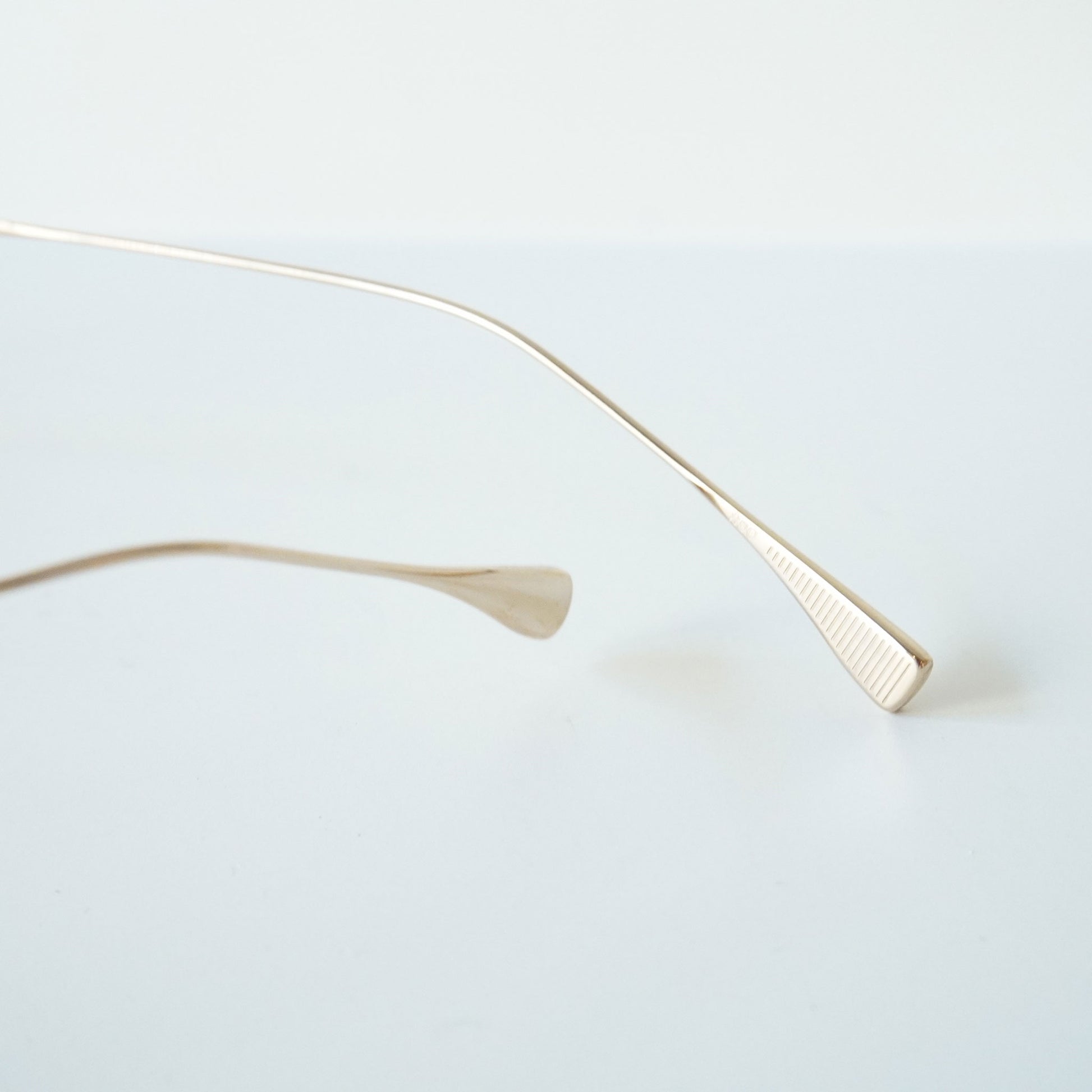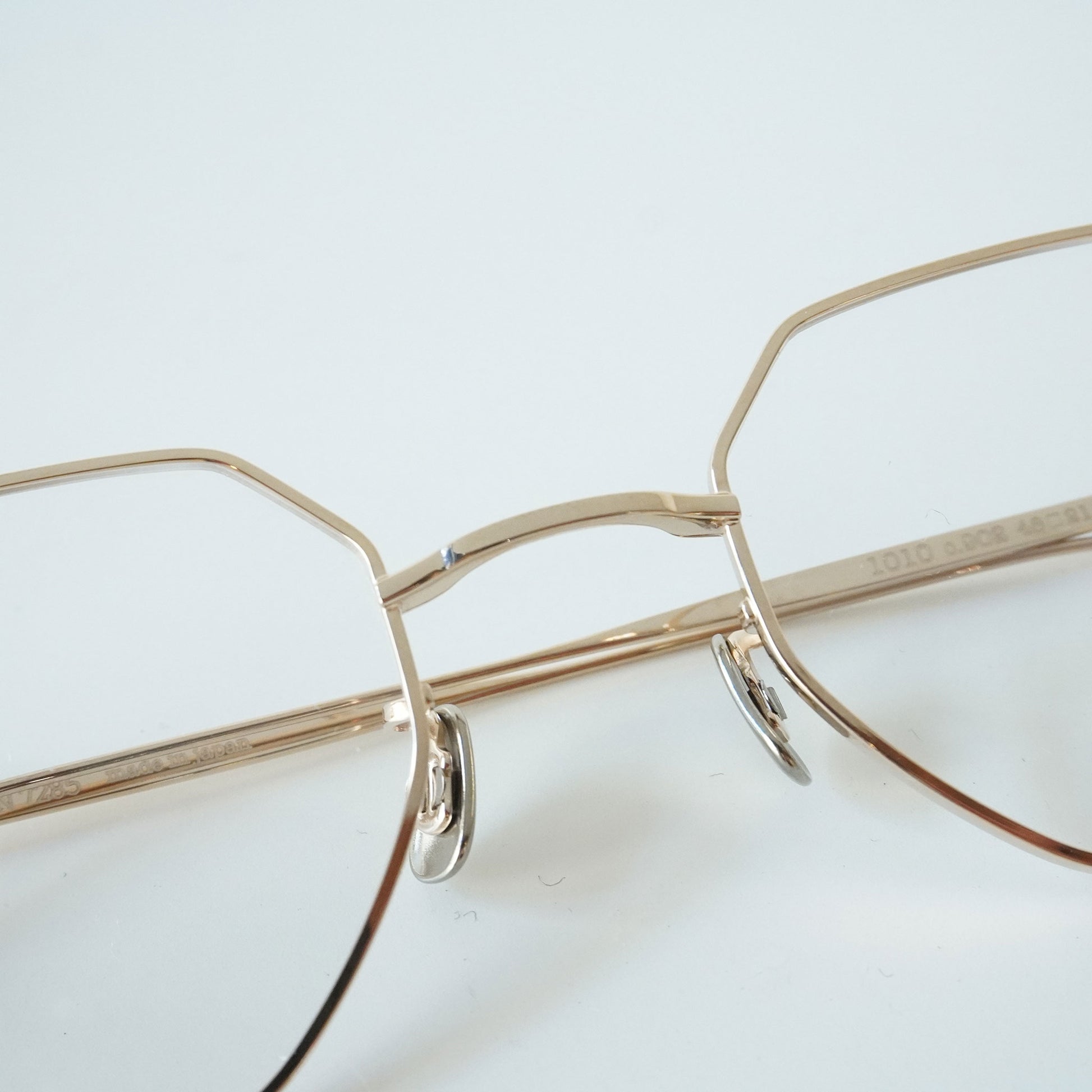 25SSシーズンで採用した1935年に発行されたアメリカのヒストリカルな眼鏡メーカーのカタログからサンプリングした玉型を本モデル「1010」でも用いた。テンプルに施された特徴的な部位は“エクステンションヒンジ(延長丁番)”と呼称する新しいパーツ。 この部品を外すとテンプル長が10mm短くなるという機能的な仕組み。デザインプロセスとしては、まずイメージする理想的な外観があり、そこに後付けで機能的な意義を付加するという手法。7285のテーマである“今自分たちが本当に美しいと思えるものを形にする”というものづくりにおいて美意識が常に先行するというイデオロギーを具現化したモデル。サングラスは色味の調合を金属の粒子などを混ぜ合わせて調色し、溶解後に一枚ずつ成形して製作する日本製ガラスレンズのオリジナル“アイヴァンカーブレンズ”を採用。
