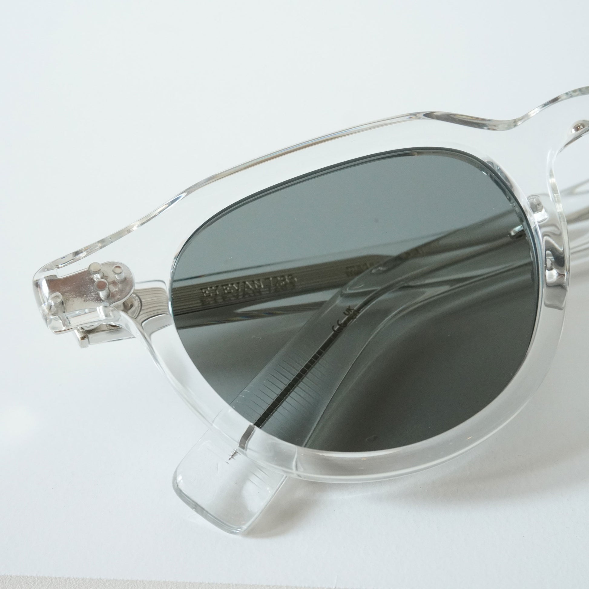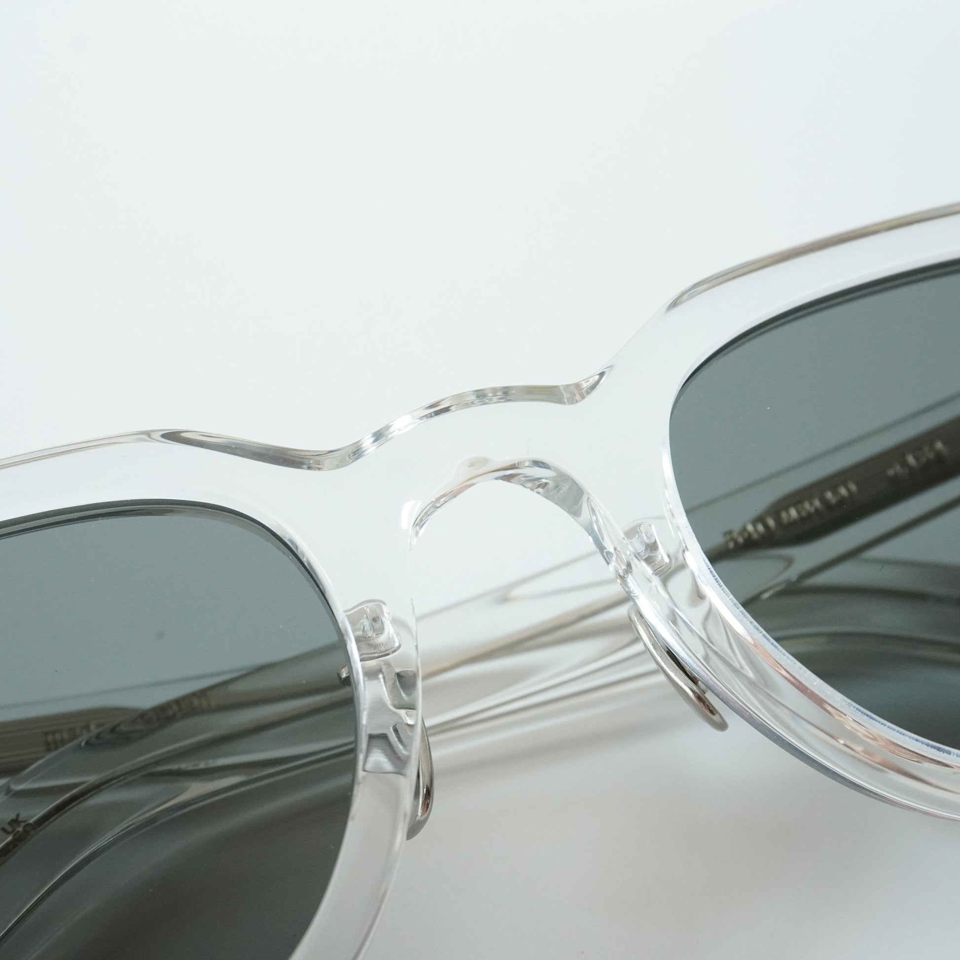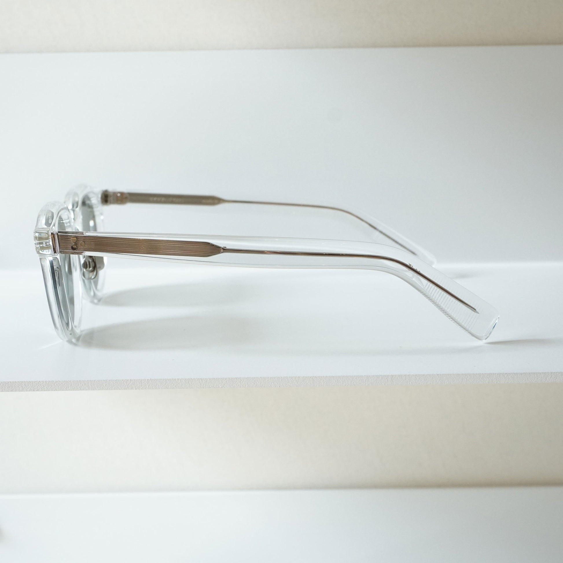 リムを中太に変え、テンプルもやや細手の新規パーツで組み上げた。 フロントとテンプルの丁番もこのモデルのために新規で作製した。 ミリタリー丁番、2+1PIN(一つだけ異なる大きさのPIN)、パテントを取得しているオリジナルの二股チタンパットなど細部までこだわり抜いたディテールで構成されている。