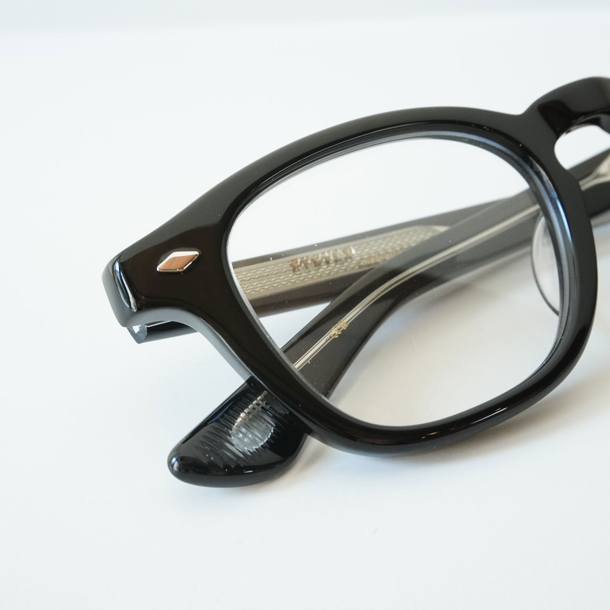 ジェームス・ディーンのミドルネームから名付けられたこのモデルは、彼が映画のオフショットでデニス・ホッパーと共に写る写真の中で掛けていたフレームからインスパイアされたモデル。その伝説的なフレームに、90年代のフレームが持つモードな雰囲気のテンプルデザインをインサイドに表現し組みあわせた。ヨロイにはオリジナルのダイヤ飾りを合わせ、アウトサイドとインサイドで60年代と90年代の異なる時代のデザインが表現されるというEYEVANらしいタイムレスなMIXスタイルを完成させたモデル。