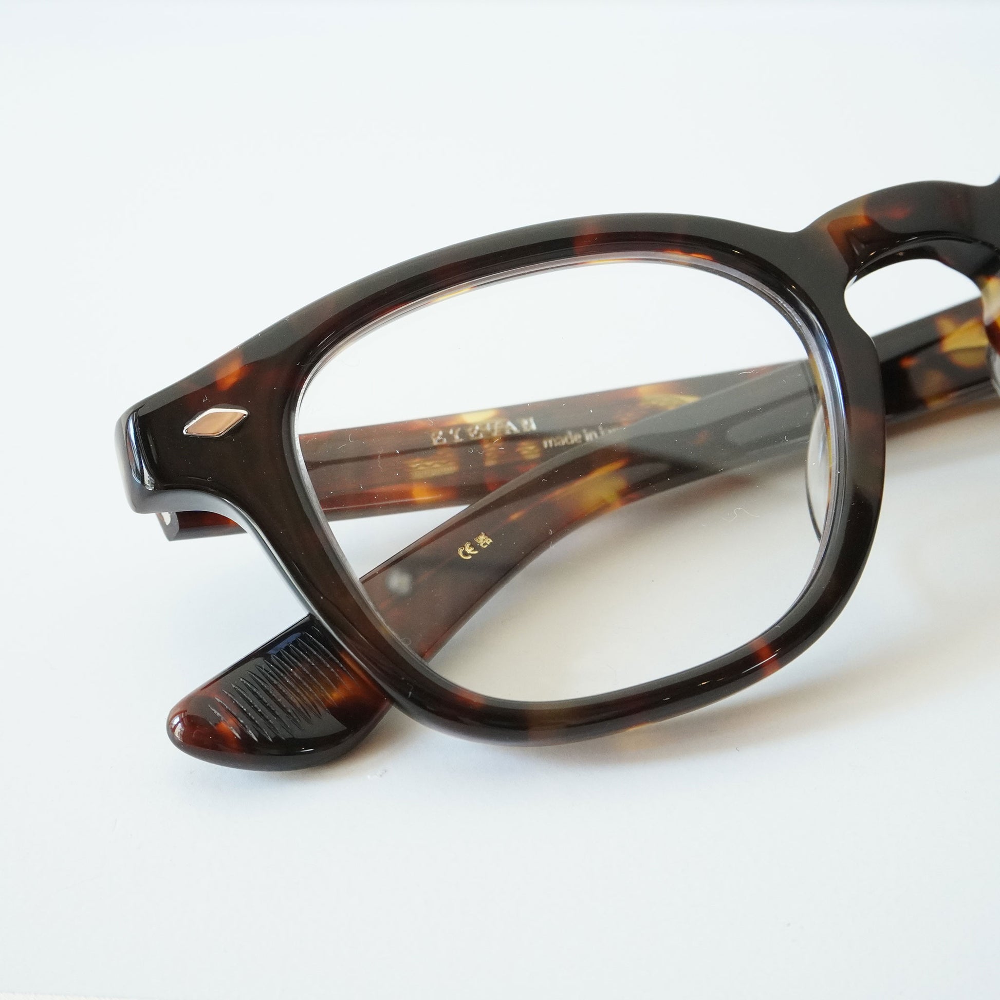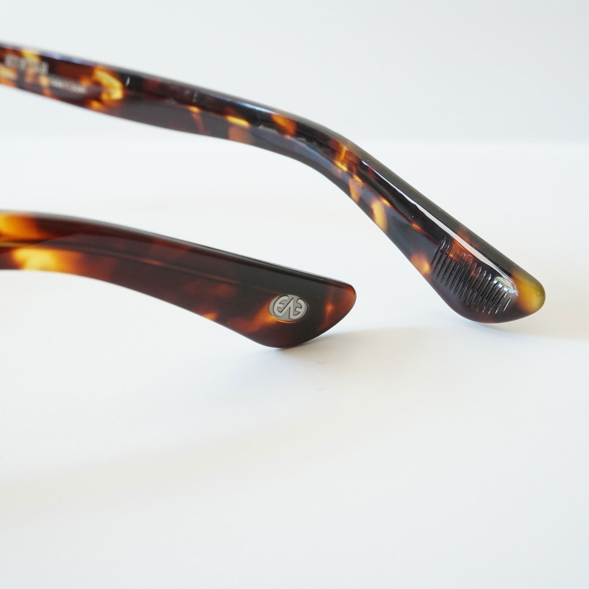 ジェームス・ディーンのミドルネームから名付けられたこのモデルは、彼が映画のオフショットでデニス・ホッパーと共に写る写真の中で掛けていたフレームからインスパイアされたモデル。その伝説的なフレームに、90年代のフレームが持つモードな雰囲気のテンプルデザインをインサイドに表現し組みあわせた。ヨロイにはオリジナルのダイヤ飾りを合わせ、アウトサイドとインサイドで60年代と90年代の異なる時代のデザインが表現されるというEYEVANらしいタイムレスなMIXスタイルを完成させたモデル。