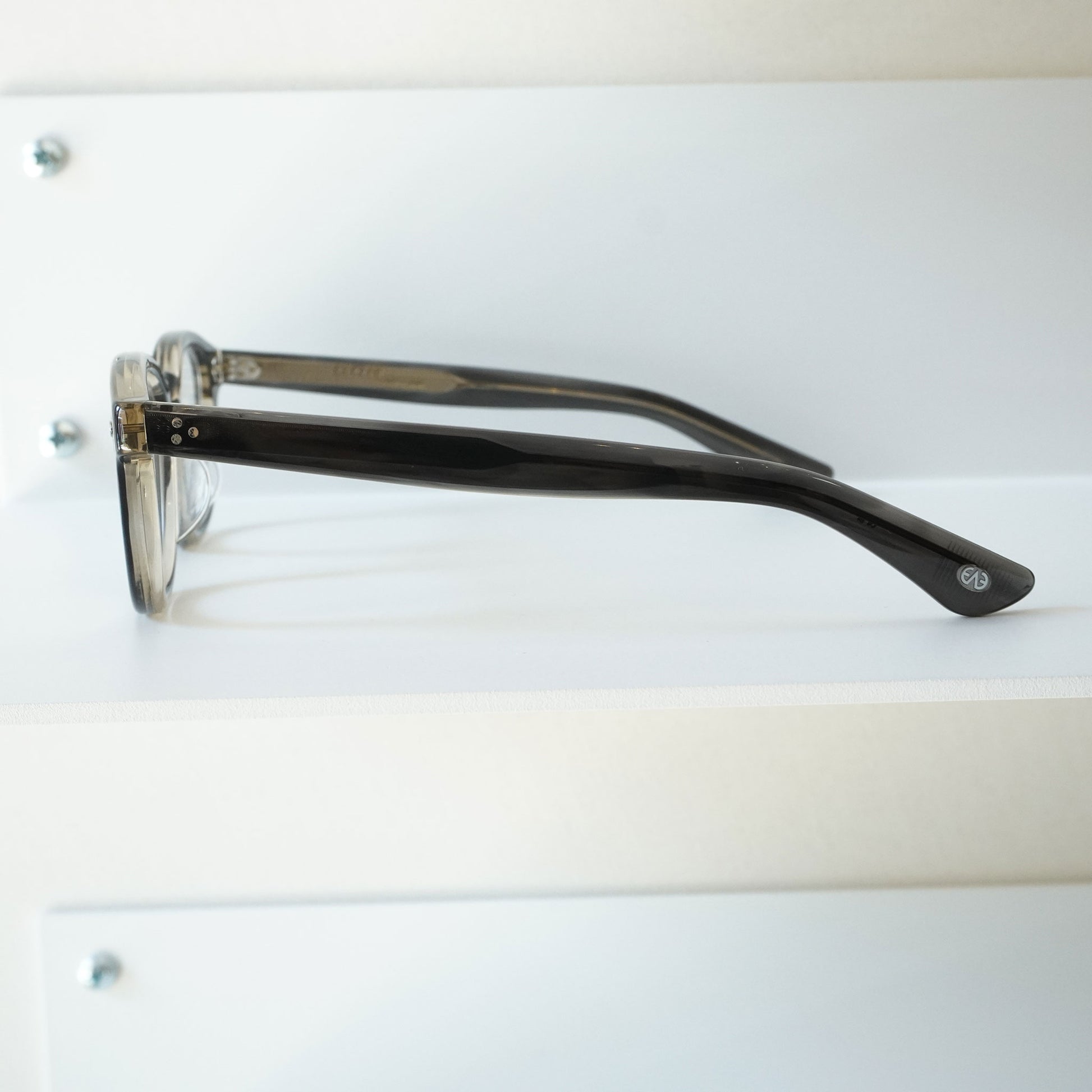 ジェームス・ディーンのミドルネームから名付けられたこのモデルは、彼が映画のオフショットでデニス・ホッパーと共に写る写真の中で掛けていたフレームからインスパイアされたモデル。その伝説的なフレームに、90年代のフレームが持つモードな雰囲気のテンプルデザインをインサイドに表現し組みあわせた。ヨロイにはオリジナルのダイヤ飾りを合わせ、アウトサイドとインサイドで60年代と90年代の異なる時代のデザインが表現されるというEYEVANらしいタイムレスなMIXスタイルを完成させたモデル。