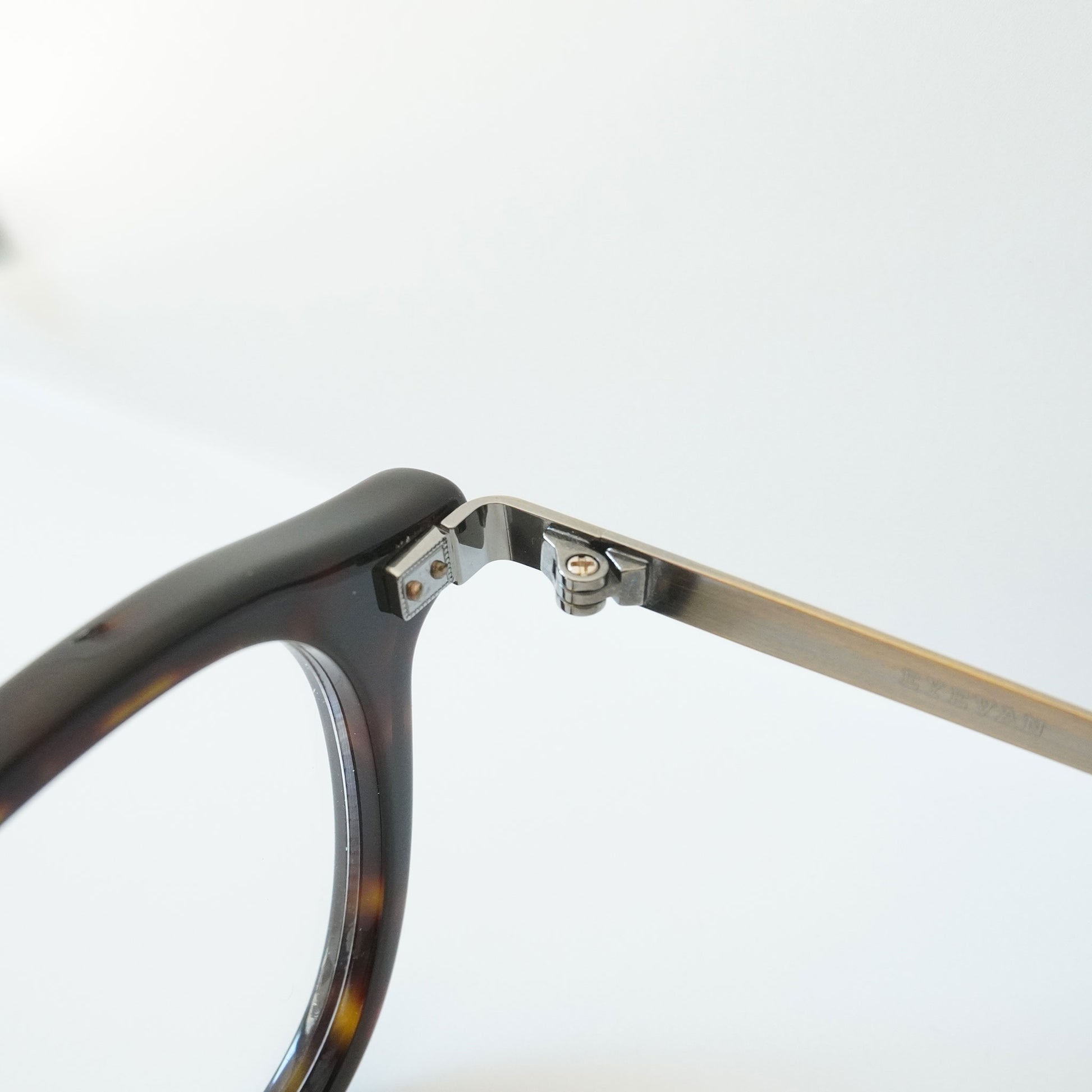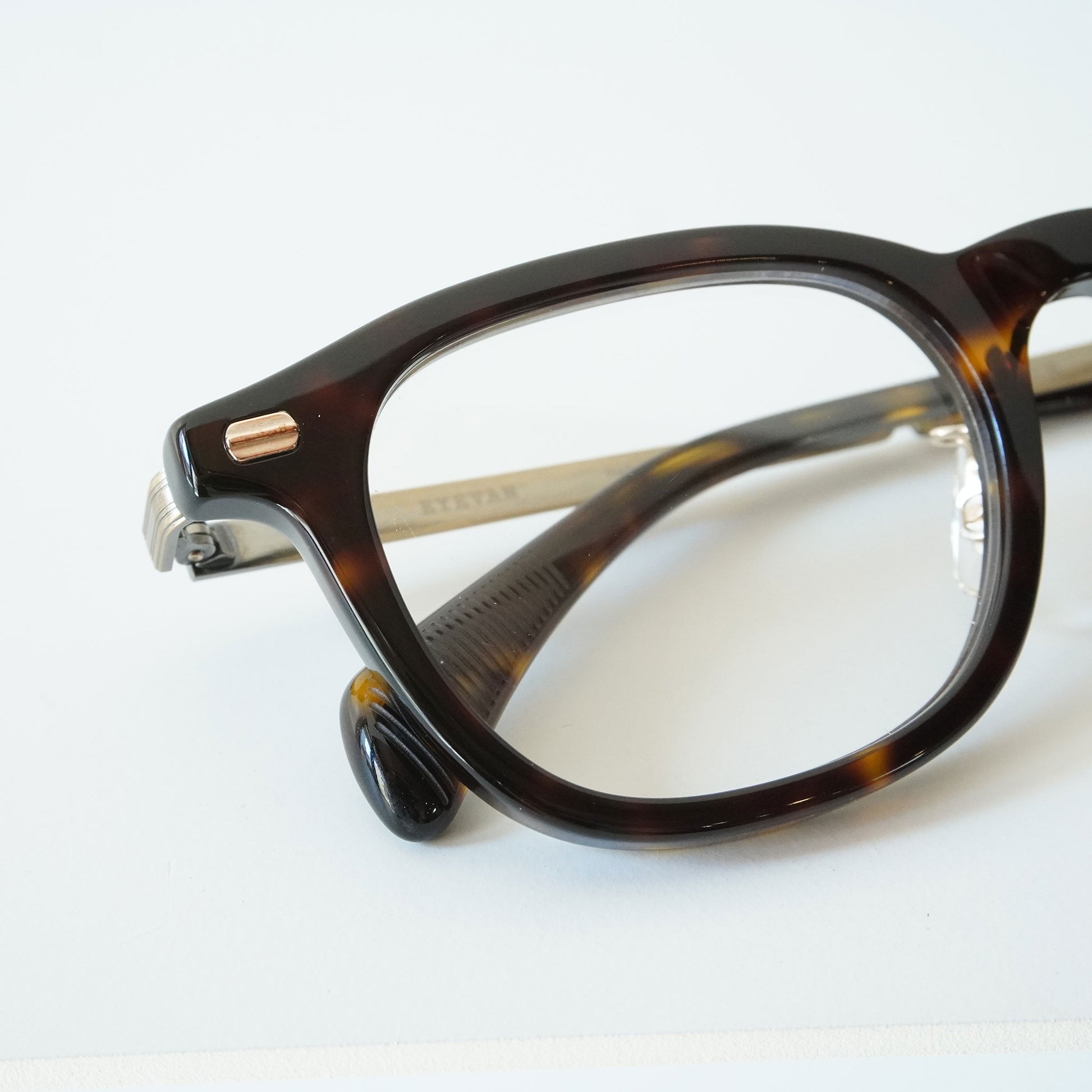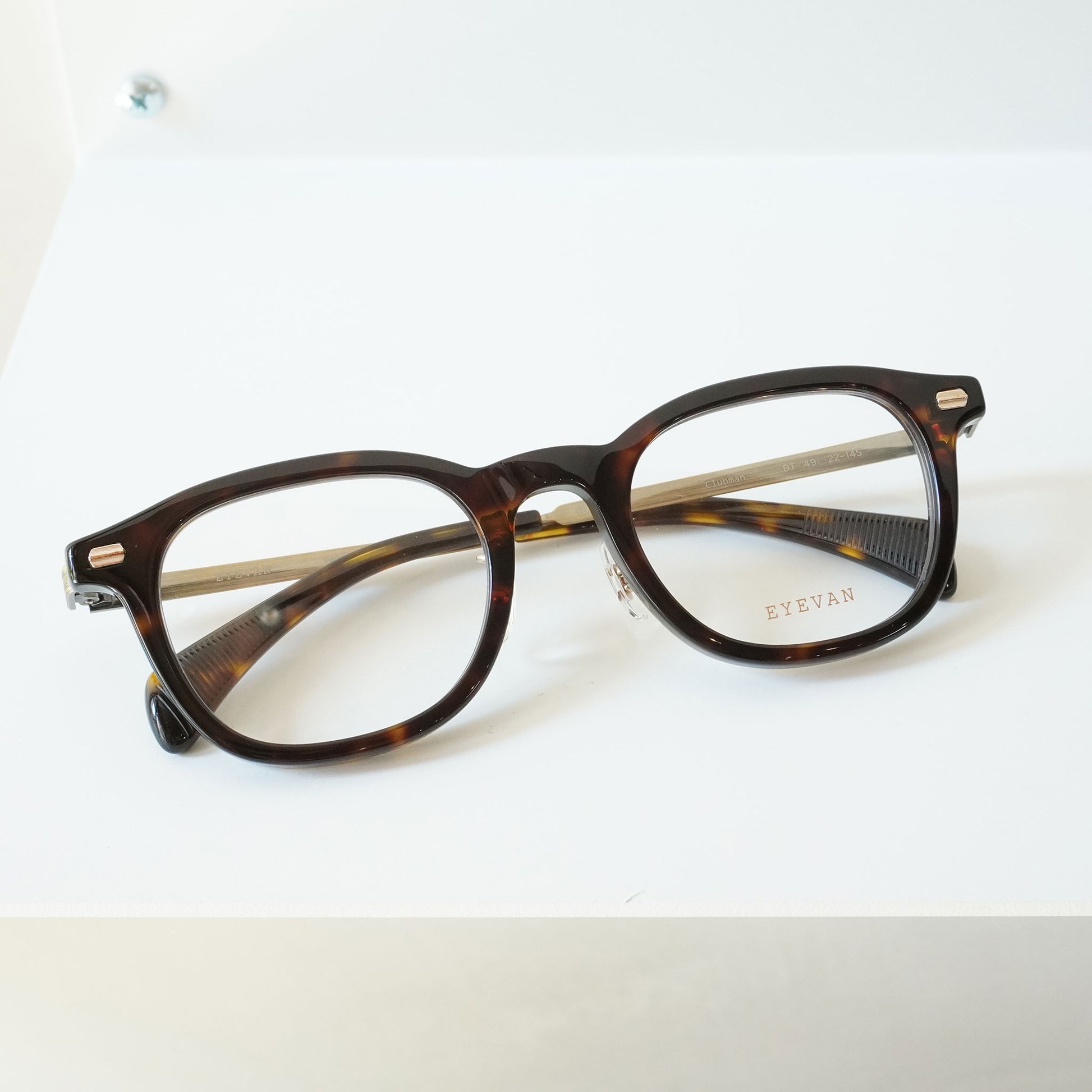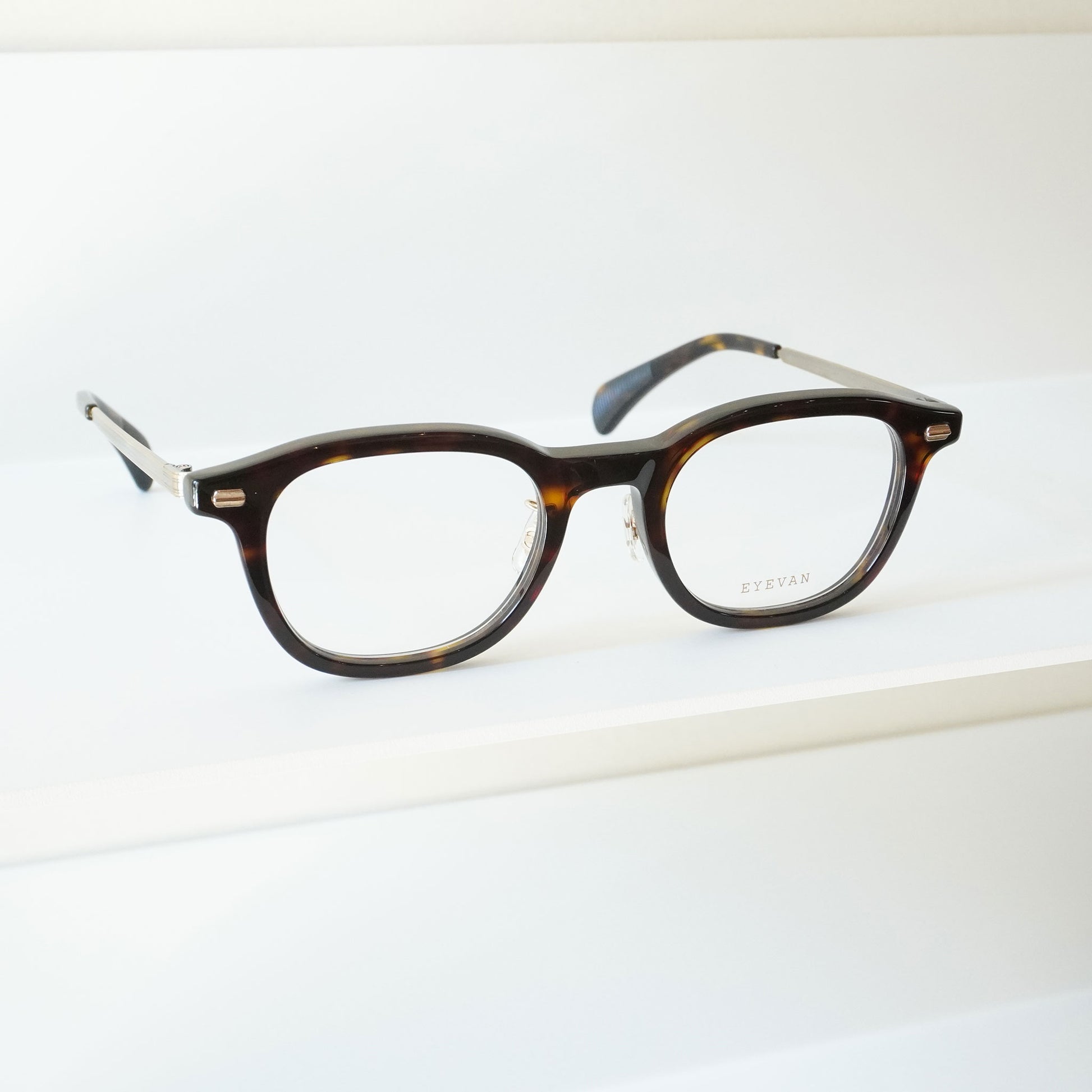 初代EYEVANデザインチームから受け継いだ1972年のカタログに掲載されていたイタリアンヴィンテージが着想源。そのフレームからからメタル曲智を採用し、テンプル形状は立体的なデザインにアップデートした。フロントには現デザインチームのアイデアストックにあったウェリントンシェイプを合わせた。ヨロイにはFrank Lloyd Wrightの積み木から着想を得てデザインされた新しい飾りパーツを配し、シンプルな要素から構築的なデザインヘ昇華されたモデルとなった。