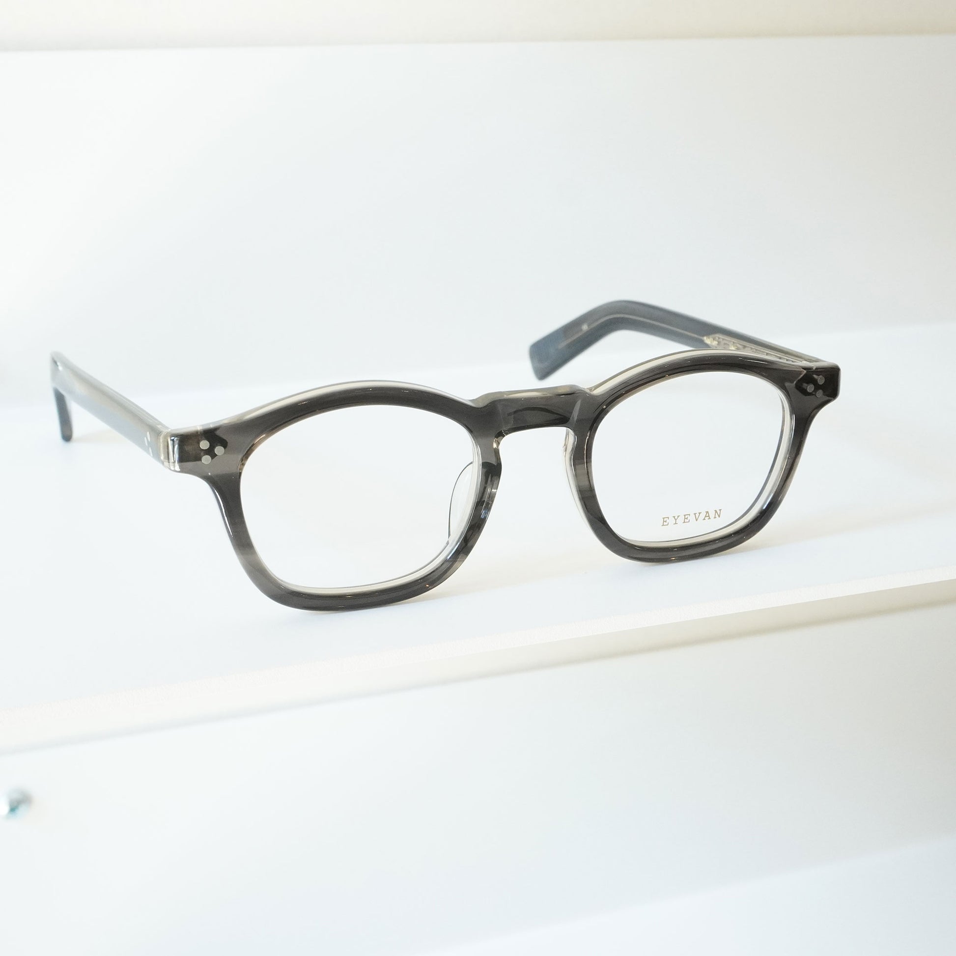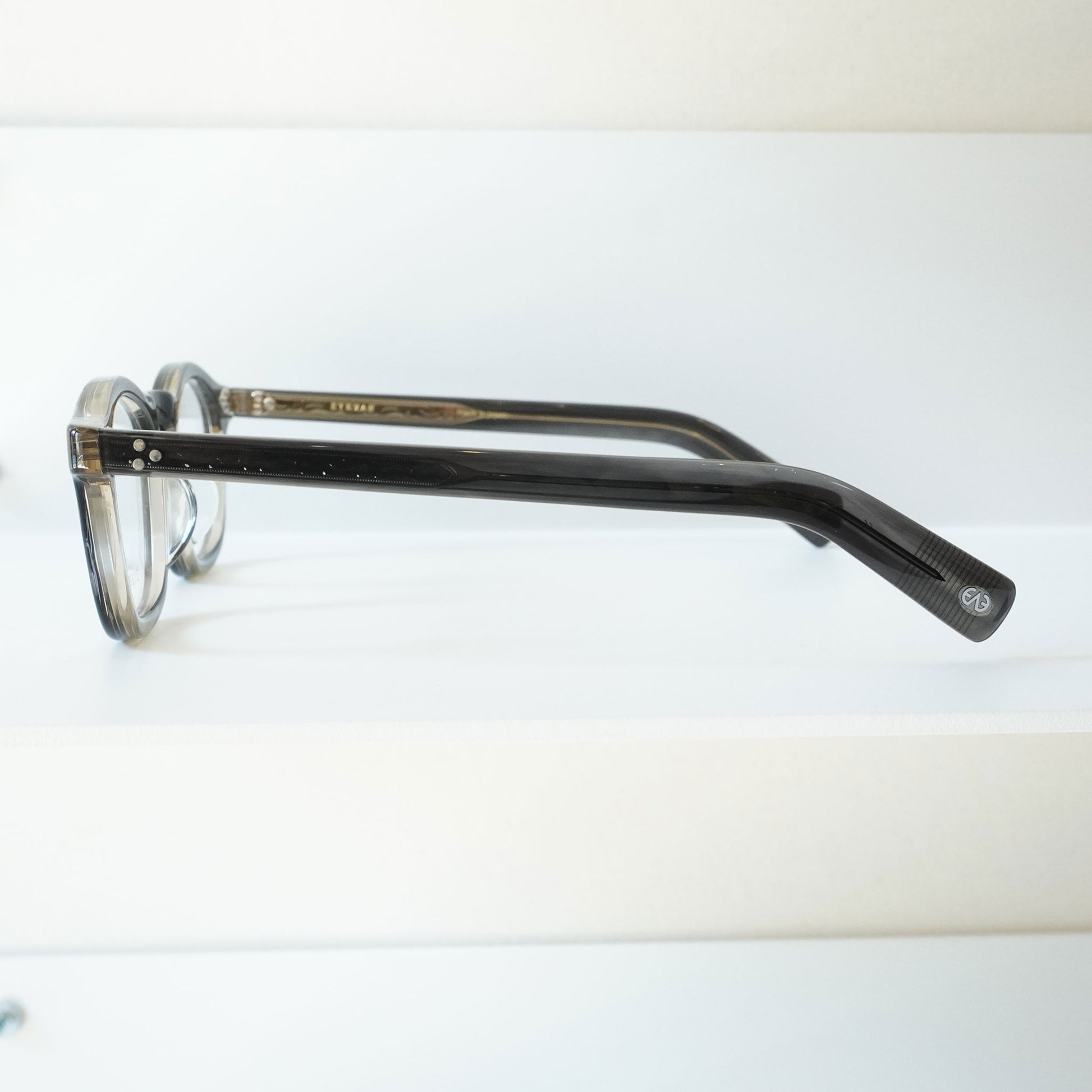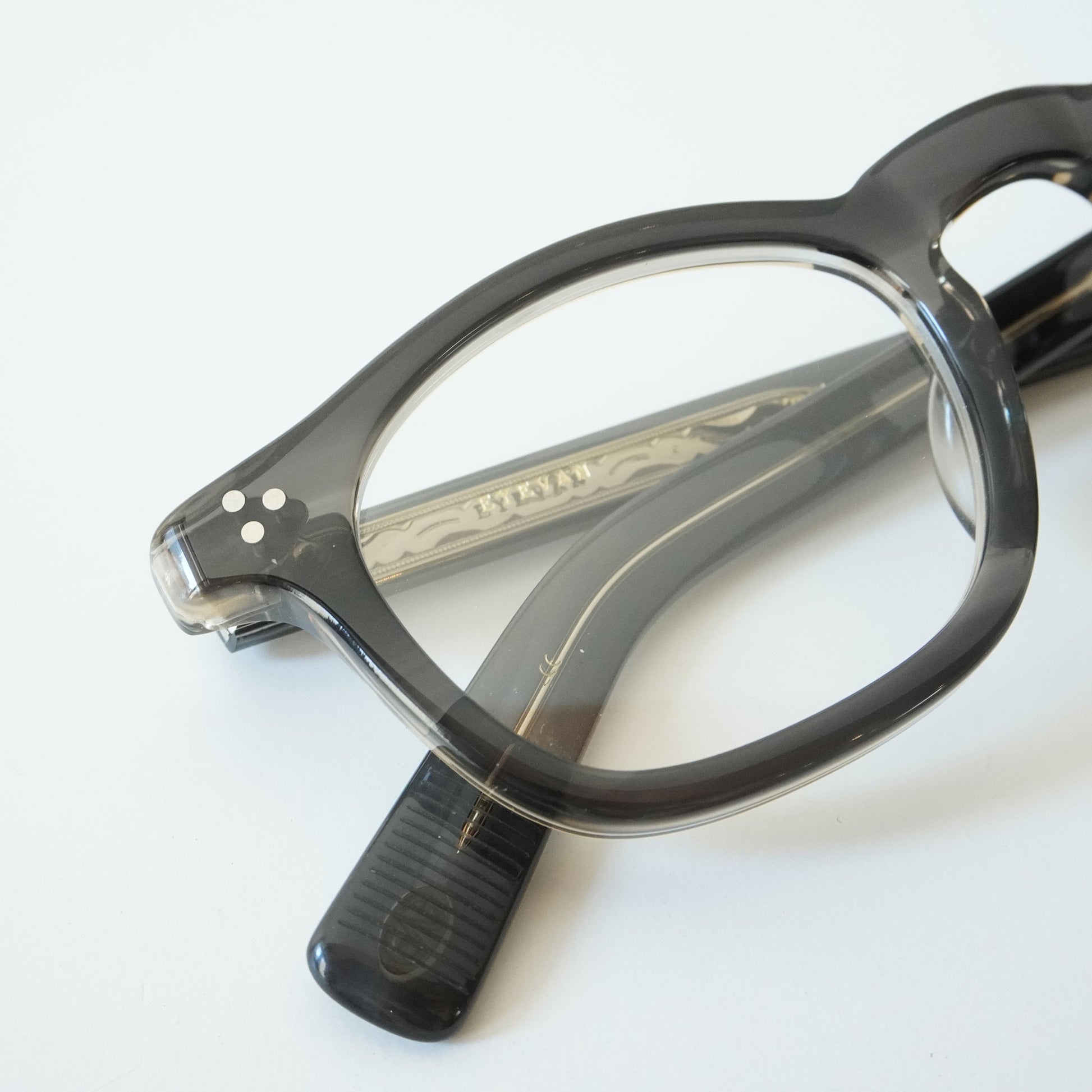 フレンチヴィンテージから着想を得た、エッヂのある肉厚なフロントと極太なワイドテンプルをEYEVAN流にデザインしています。