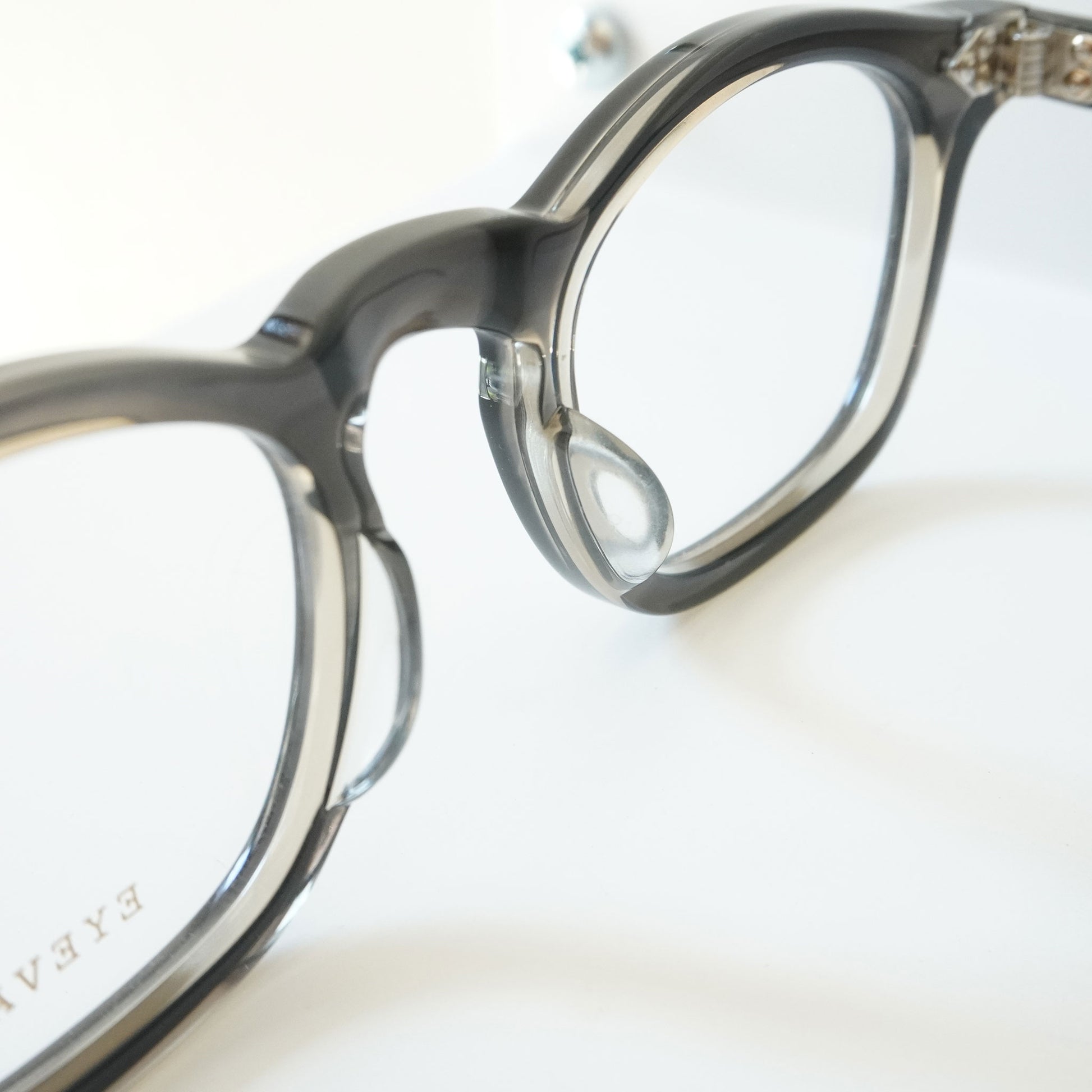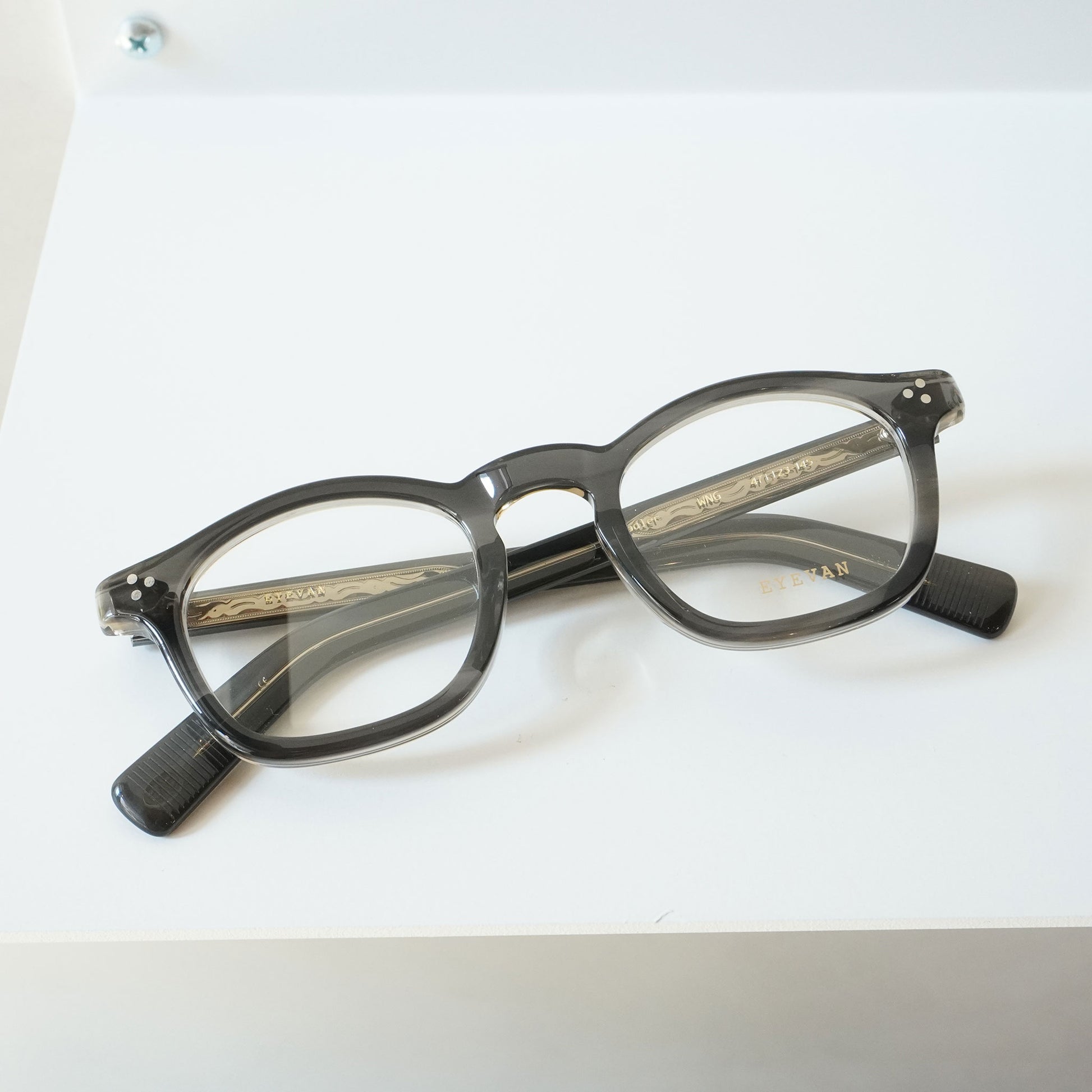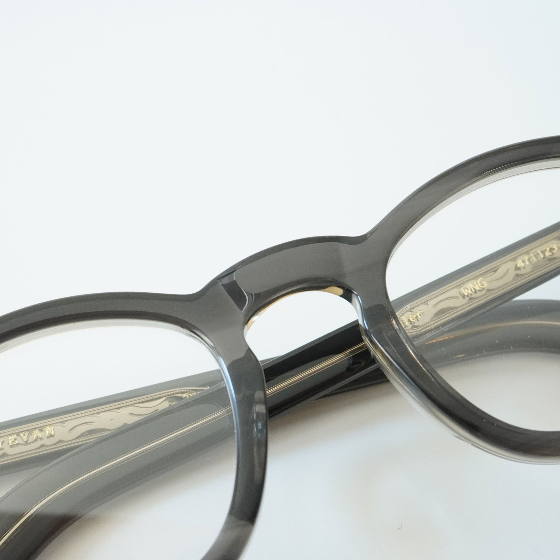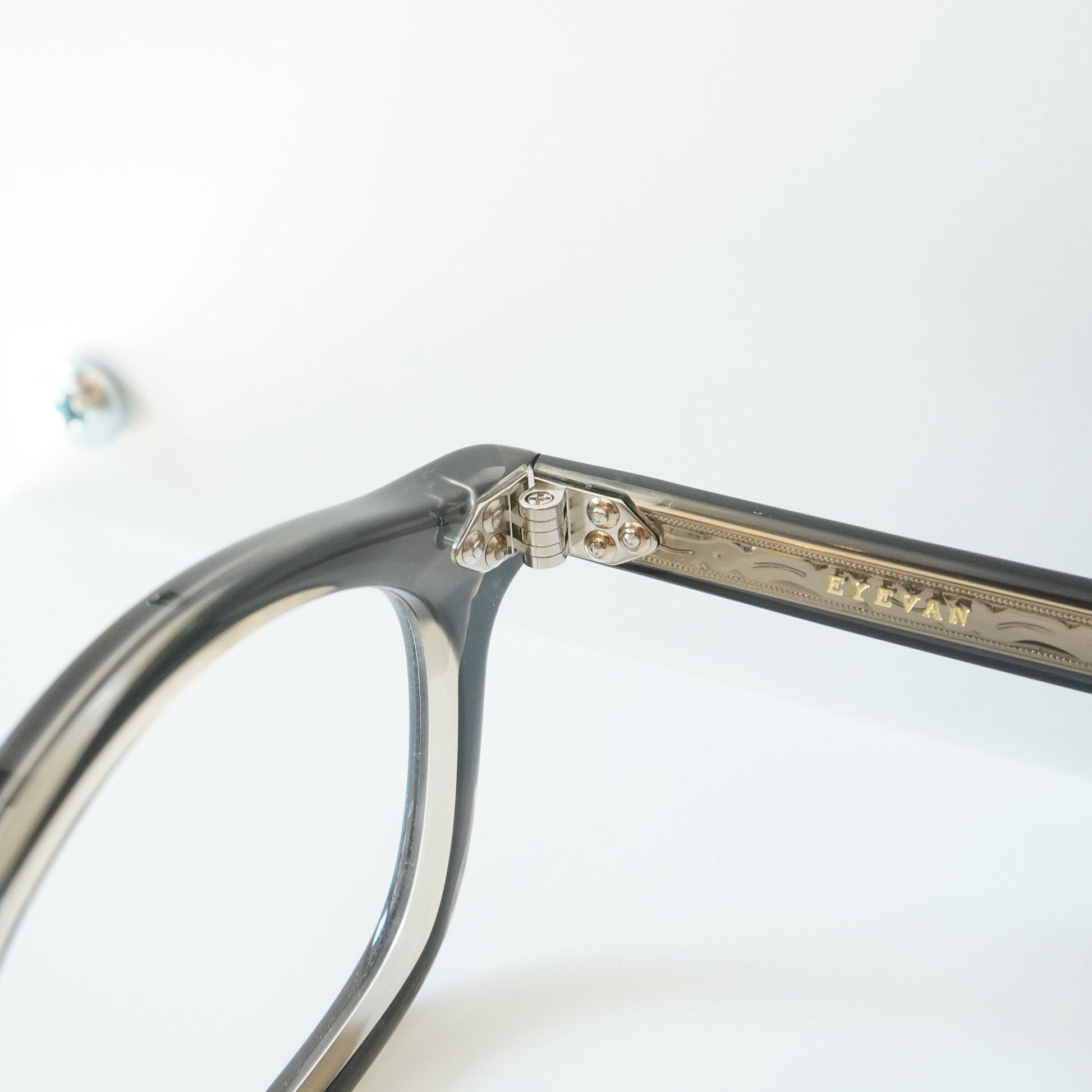 フレンチヴィンテージから着想を得た、エッヂのある肉厚なフロントと極太なワイドテンプルをEYEVAN流にデザインしています。